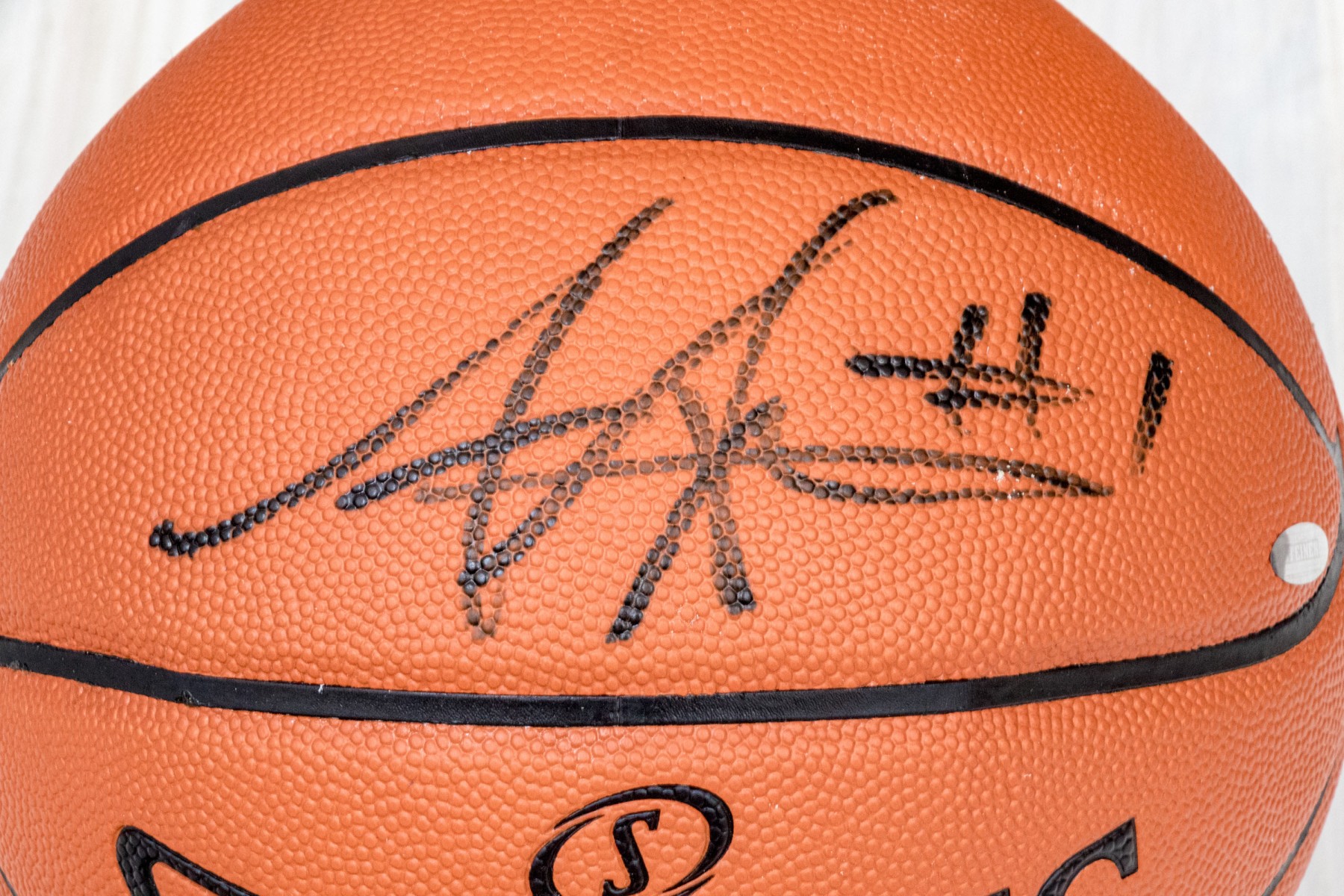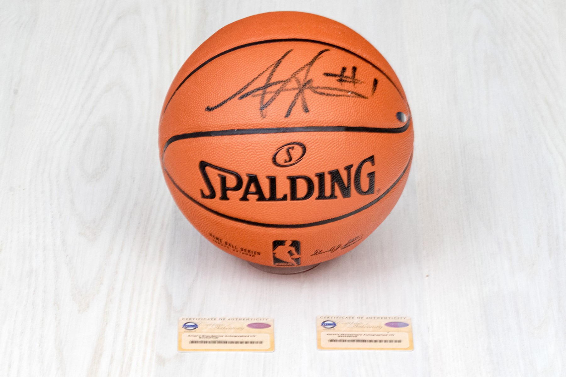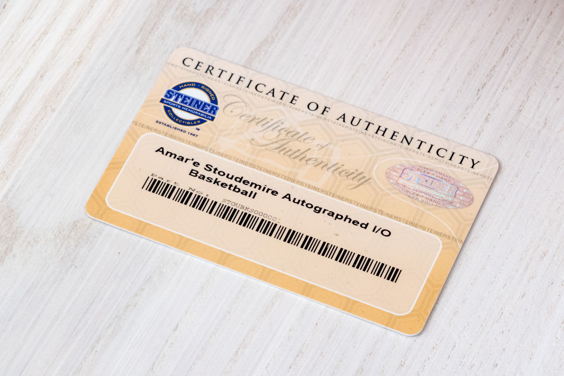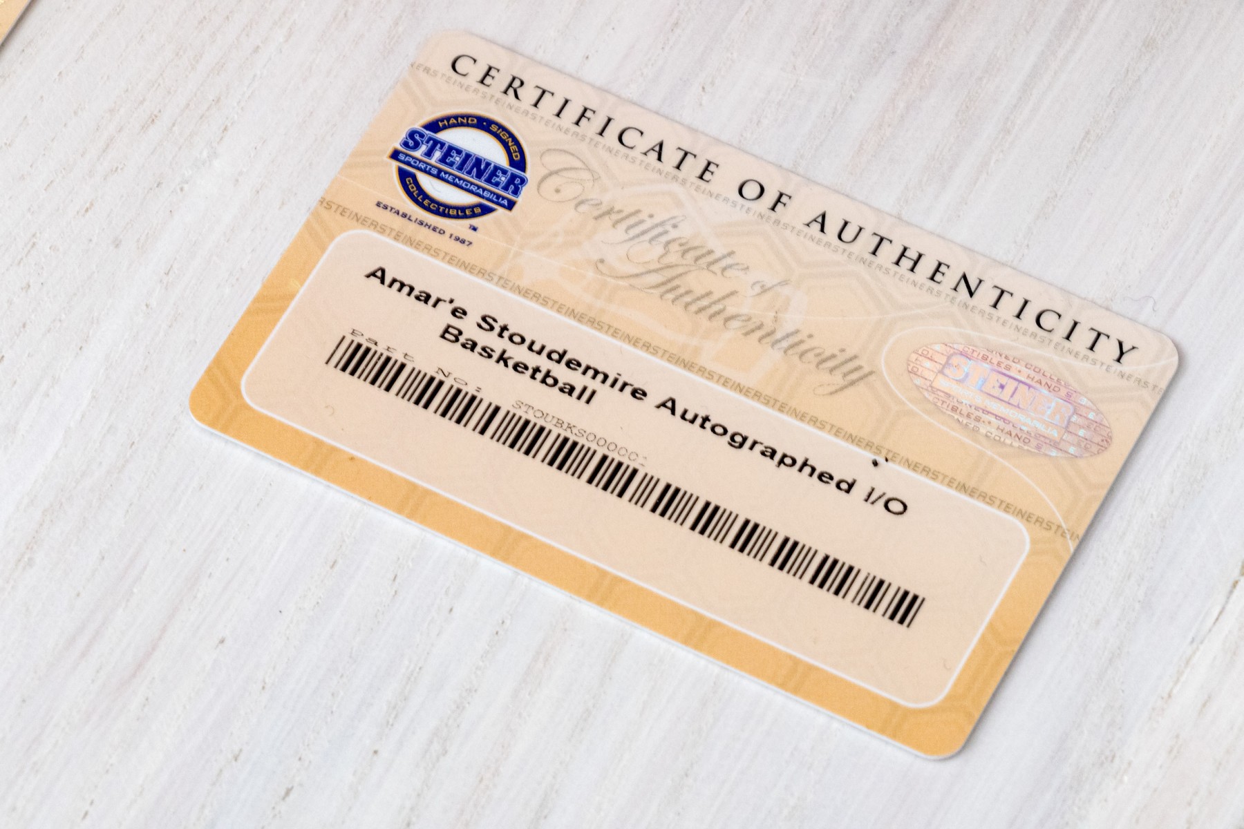 #1 Amar'e Stoudemire, Center for NY Nicks and Phoenix Suns, autographed basketball in glass and wood display case.