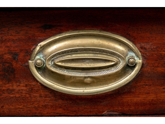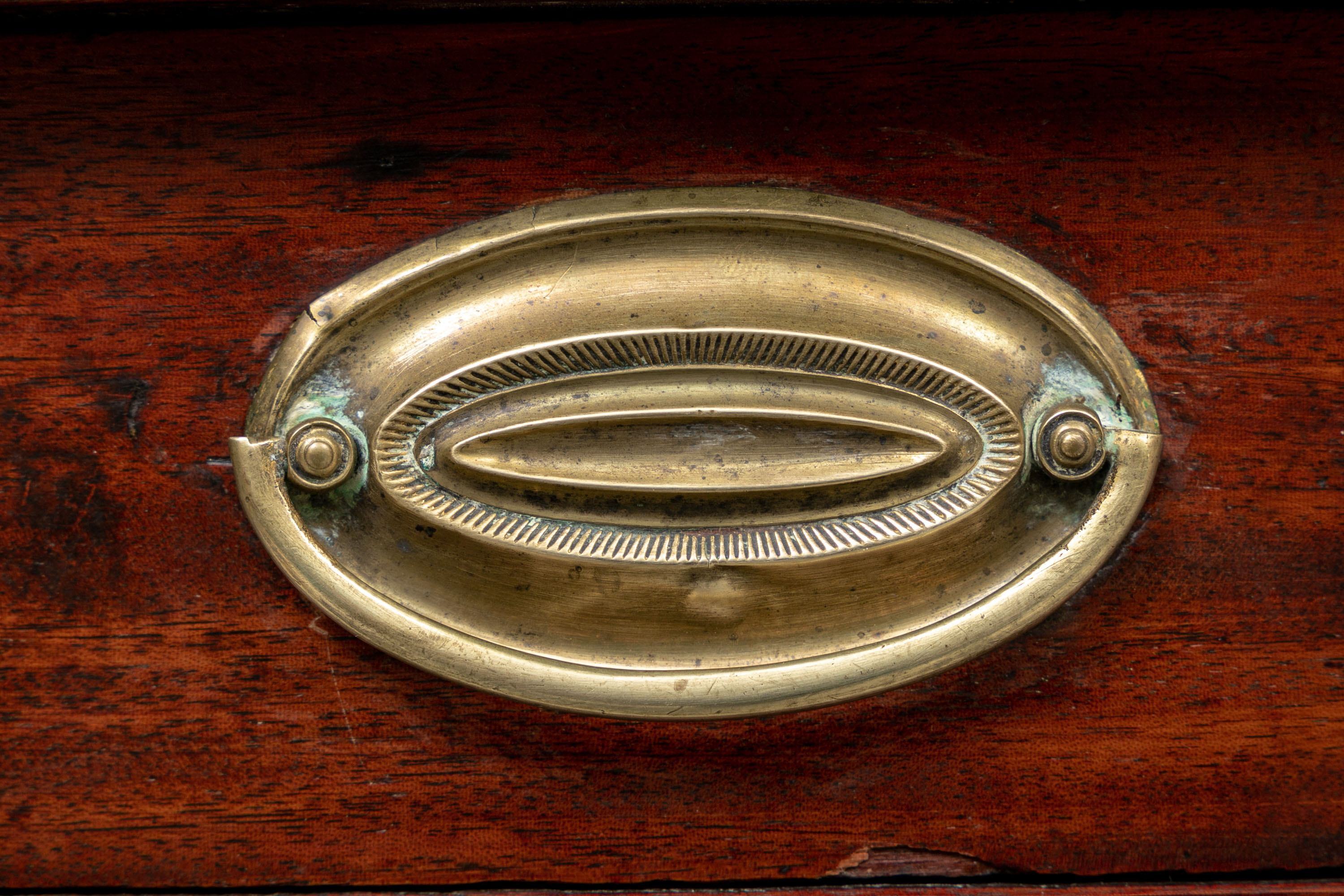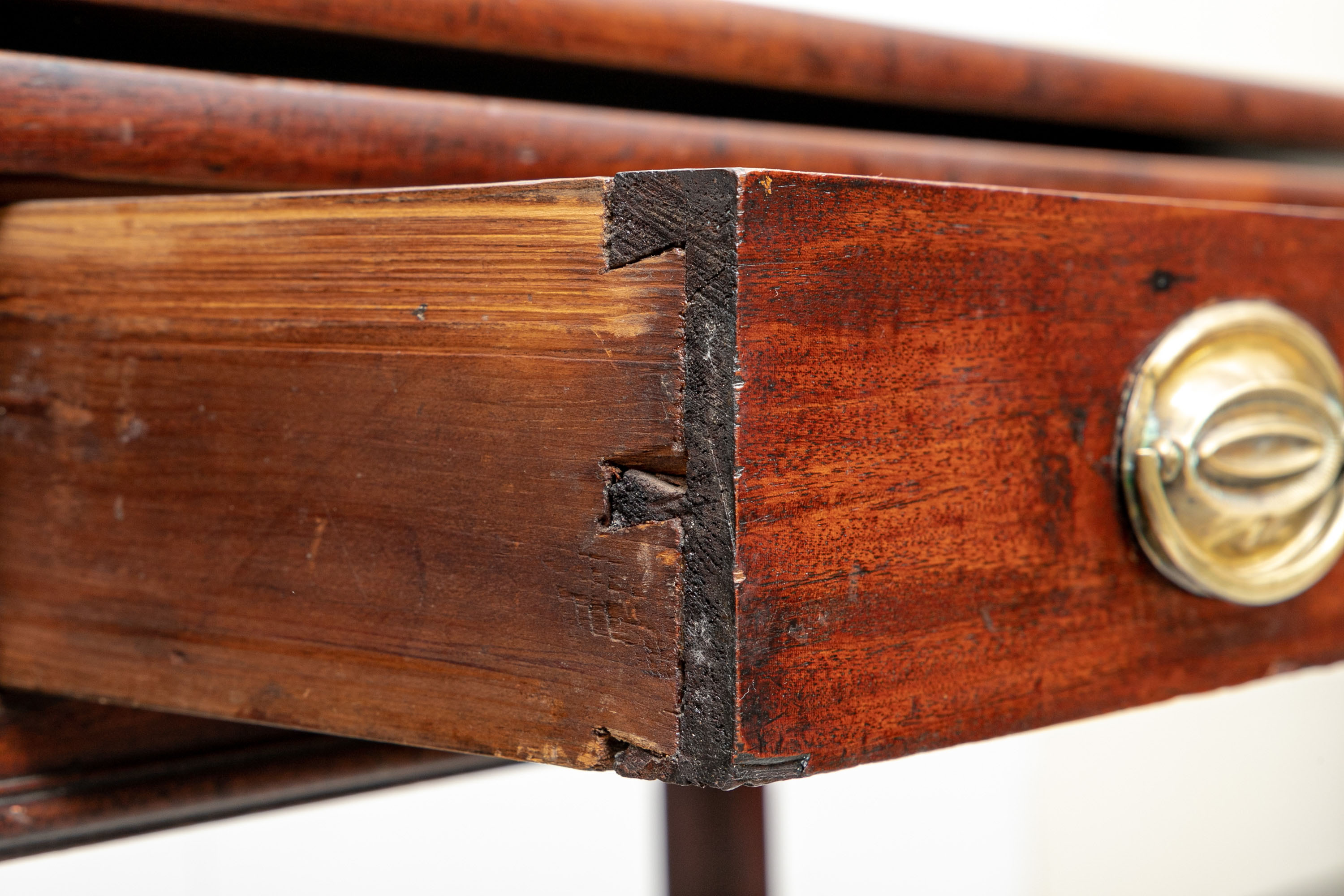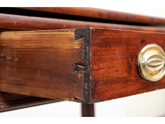 Classic lines in a fine finish with quality brass bales for the frieze drawer. Raised on carved square legs.