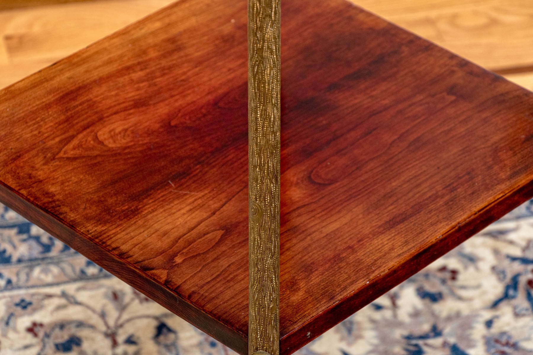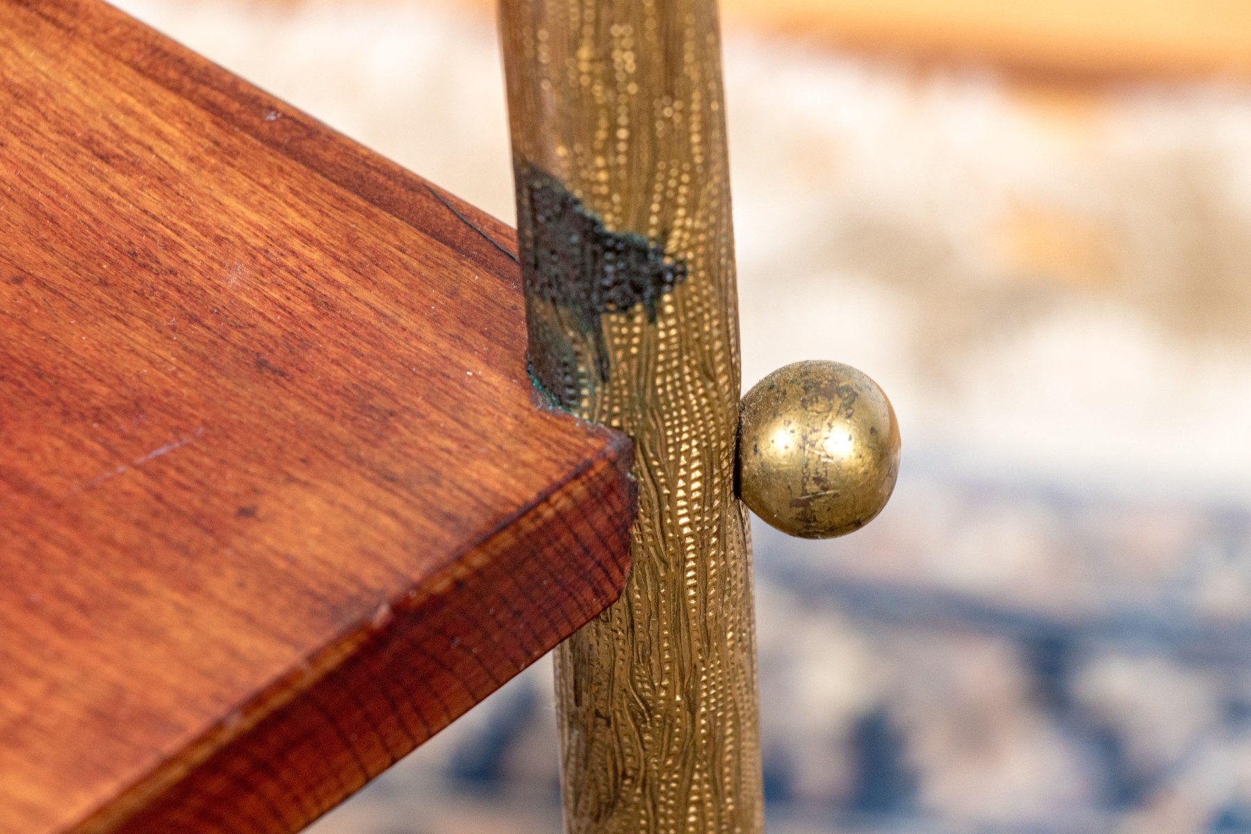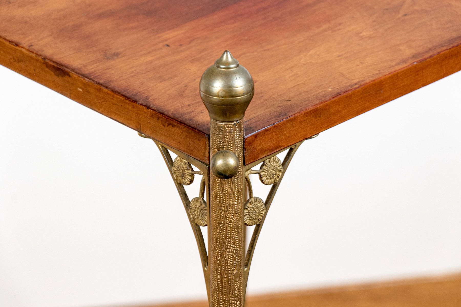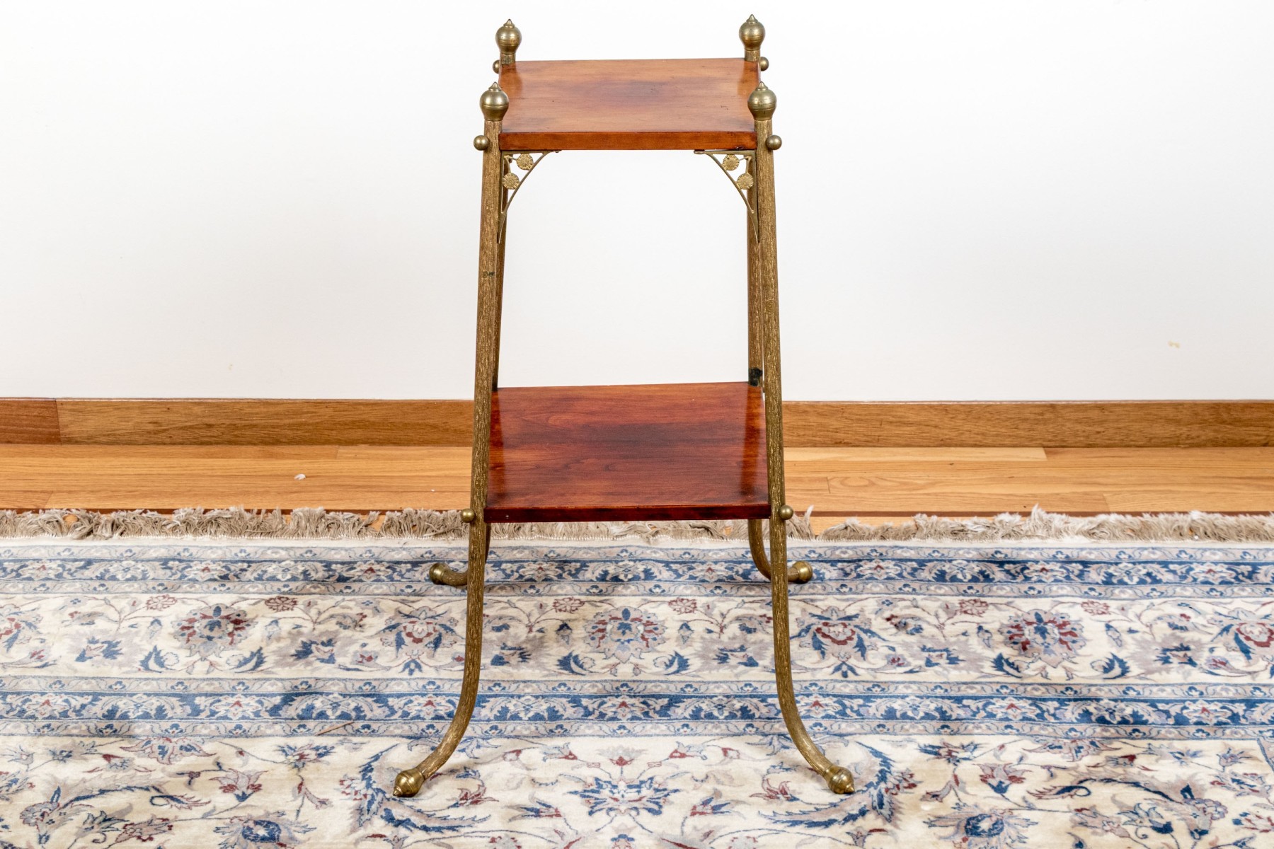 A beautiful American Aesthetic end table ca. 1870-1880 raised on four brass etched tree trunk motif legs with flared feet with ball form finials with two tiers. Detailed with a rosewood lower shelf.