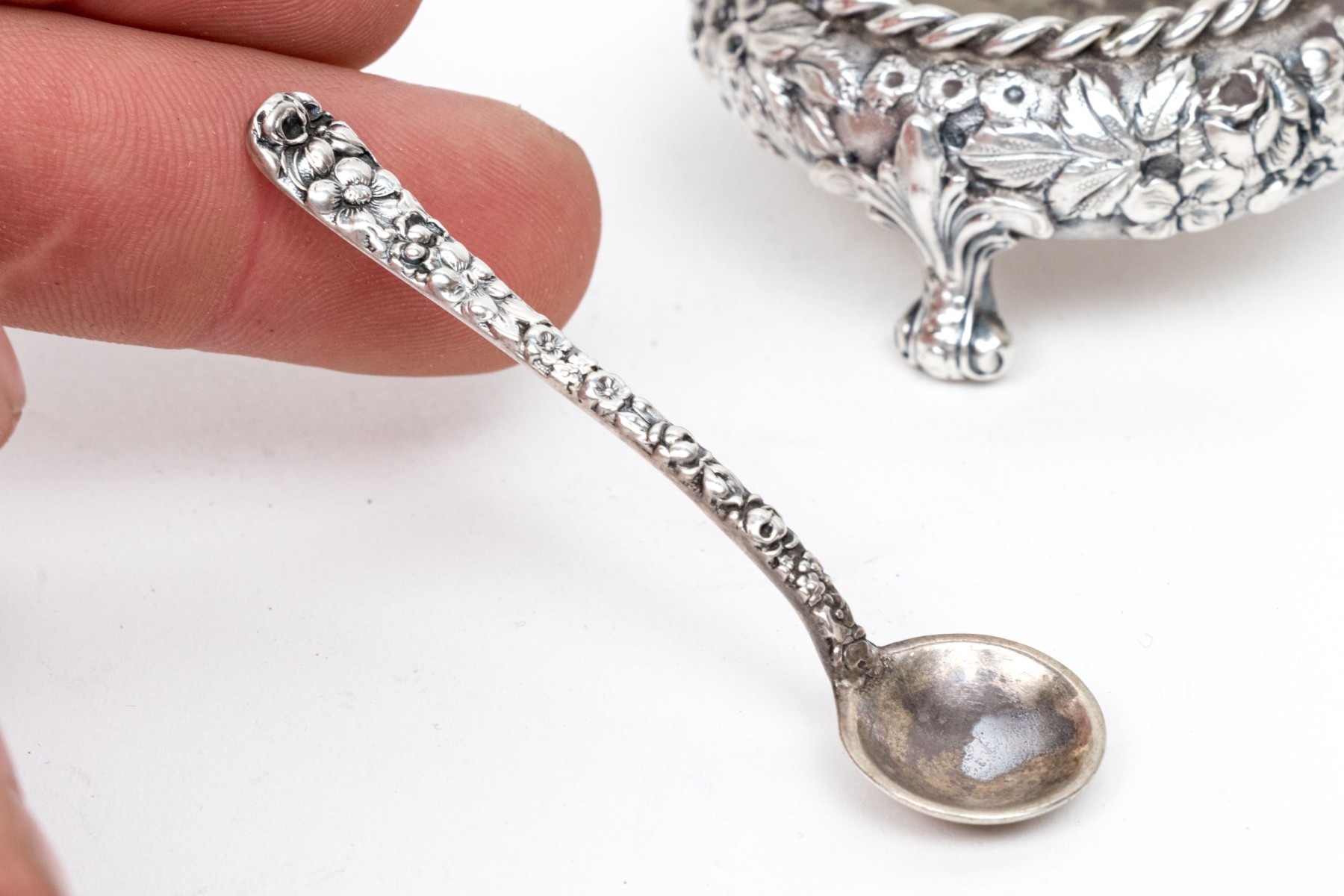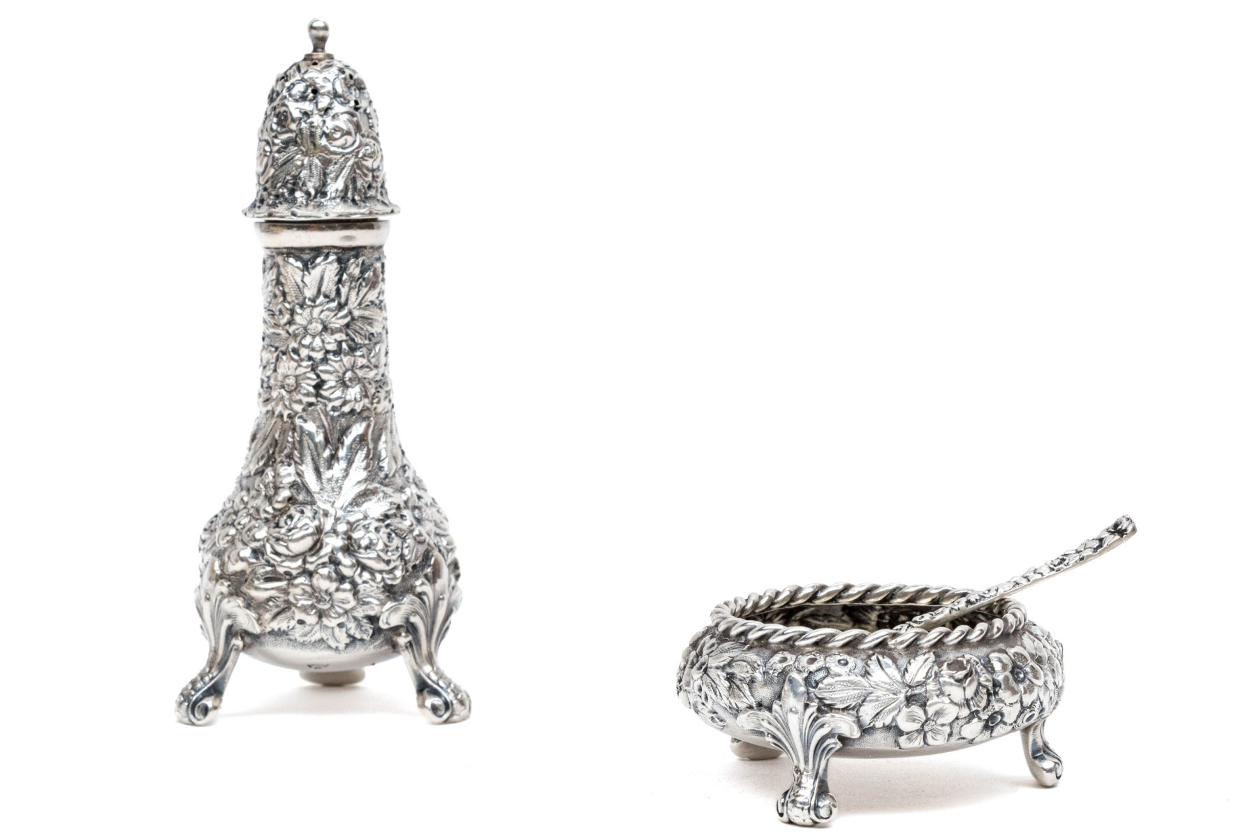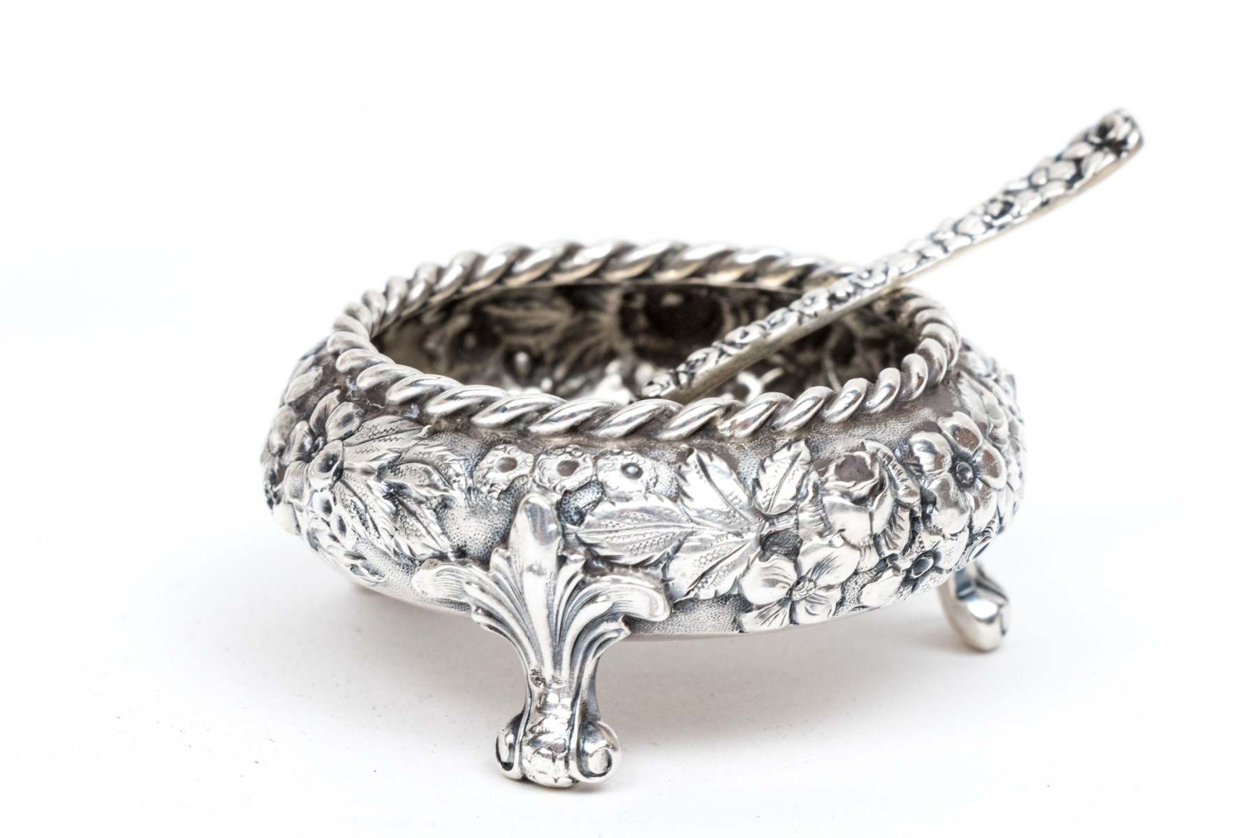 American High Relief Sterling Silver Salt With Spoon And Caster, 3.16 Ozt. #450622. Black Rock Galleries provides high end estate liquidation services through online estate auctions and a 50,000 sq ft designer showroom. estate liquidator, estate sale, online auction, antiques, fine art, liquidation, clean outs, auction, consignment, interior design, fine jewelry, collectibles, appraisals, estate appraisals, estate services, decor, furniture, furniture consignment, antique center, consignment shop. We offer appraisal services and specialize in fine art, jewelry, antiques and decorative arts. Sell with us. Black Rock Galleries is the tri-state's largest estate liquidator serving New England and the greater New York City area. We are the trusted source for expert appraisals, auction services, estate sales, and consignments. Black Rock Galleries is the east coast's largest and most trusted estate liquidator, with locations in Connecticut, greater Boston, MA and Raleigh, NC, Fairfield, Southport, Apex, TX. We are the best source for expert appraisals, auction services, estate sales and consignments. We have served thousands of families and estates with compassion, professionalism and expertise. BRG works with attorneys, executors, realtors and families to bring the greatest return on personal and estate property in the current market. Our unique combination of services make us the easy choice to get the job done in a timely and stress-free manner. We are with you from the initial consultation to the final clean out. Our house-built online auction software platform offers clients a dynamic approach to liquidating their personal property. This venue is most successful in bringing the best return with the least amount of disruption for our clients. See our services page for a complete description of this offering. American High Relief Sterling Silver Salt With Spoon And Caster, 3.16 Ozt. #450622