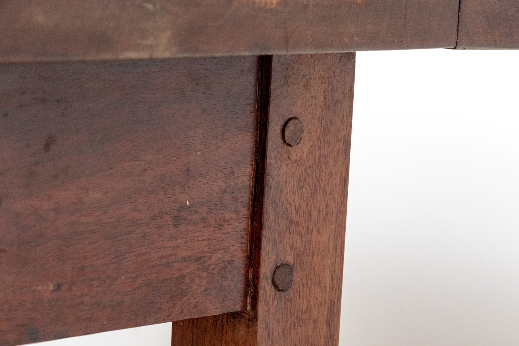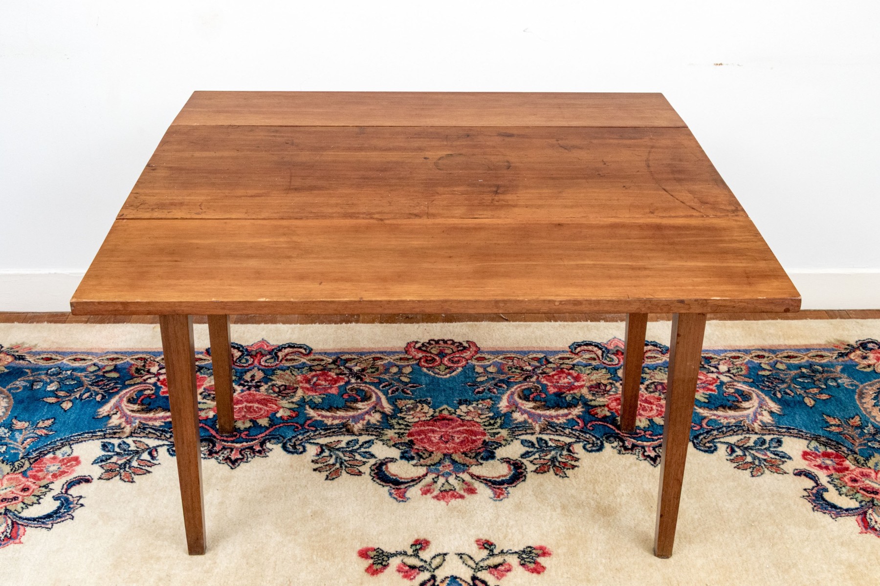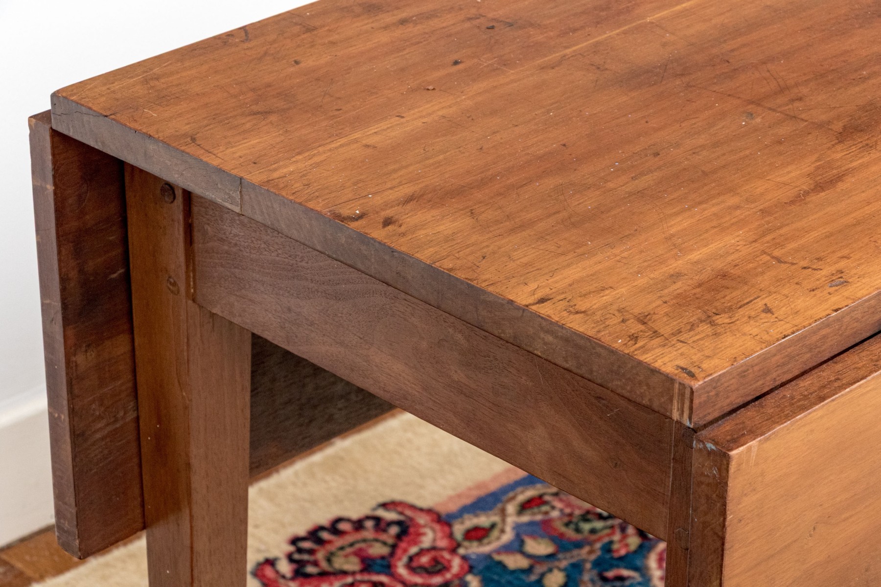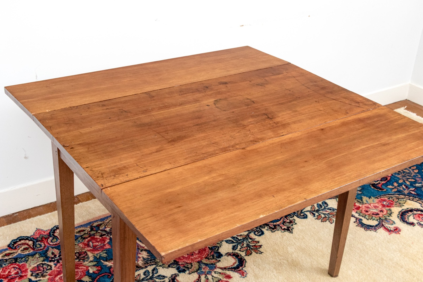 A sleek antique pembroke table in honeyed medium brown, showcasing straight leaves over straight tapered legs for a clean, minimalist appearance.