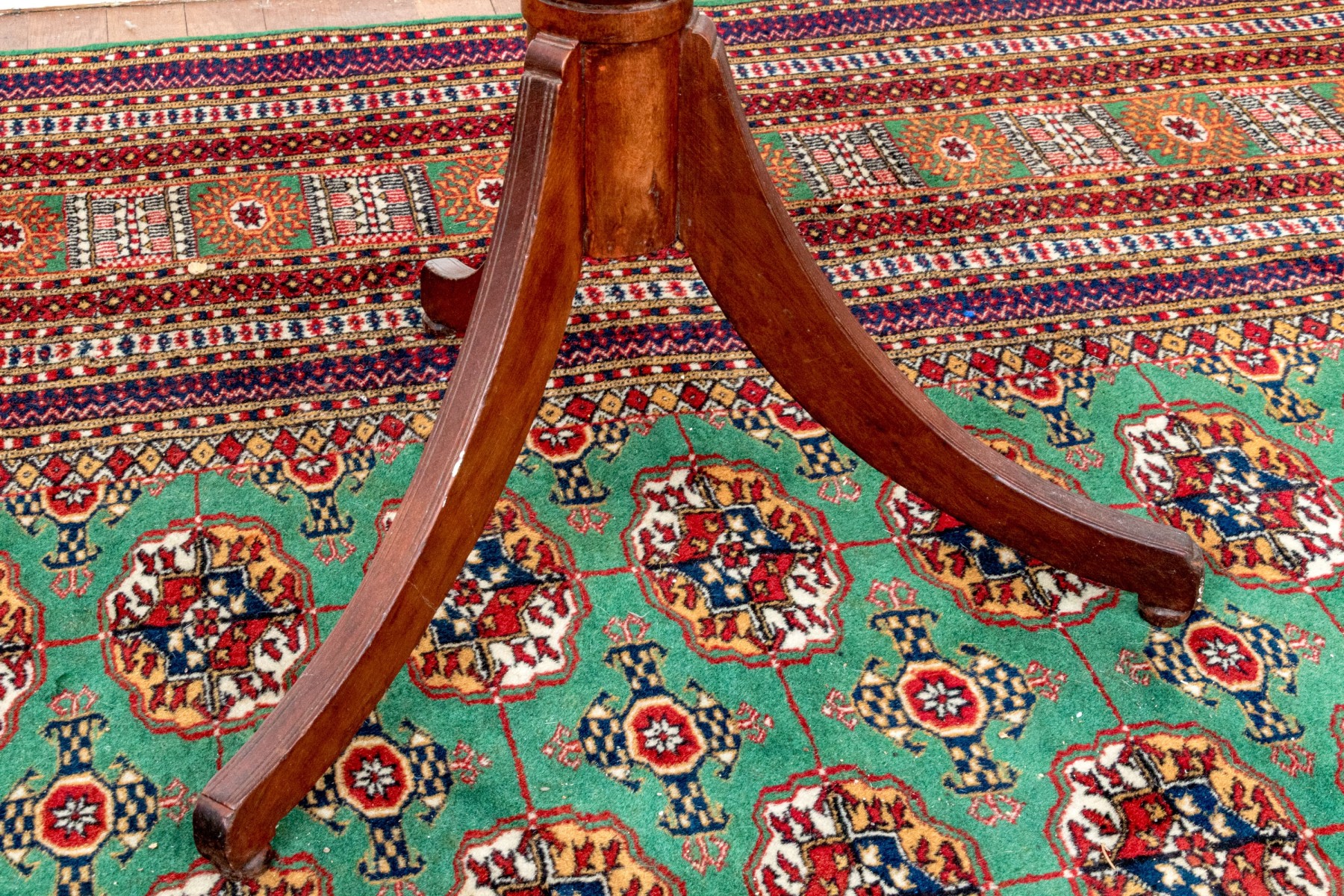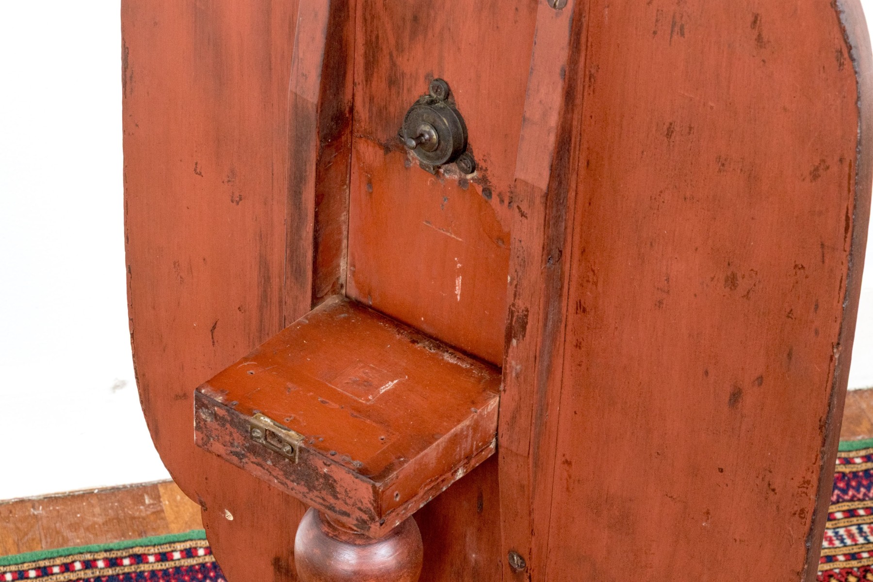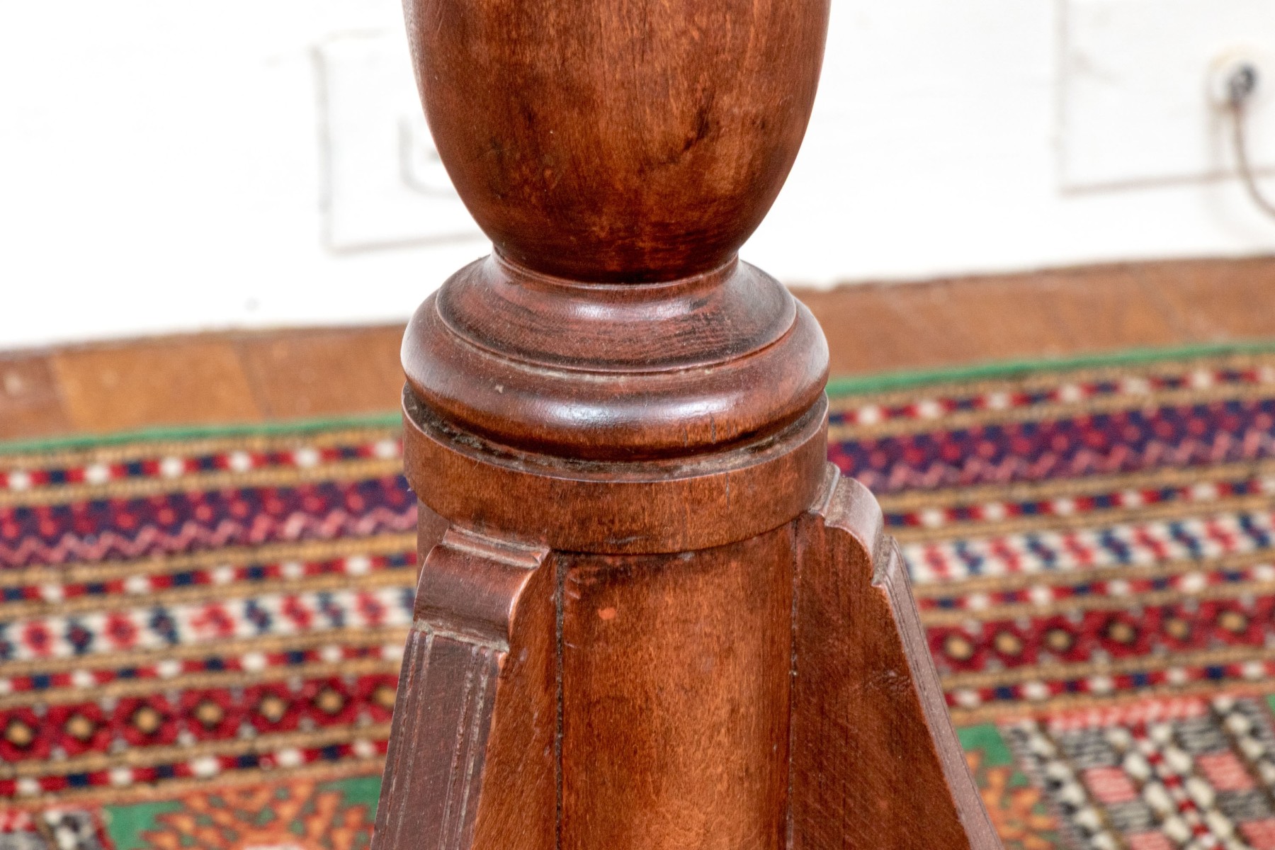 A delightful American Federal occasional table crafted in warm-toned medium brown cherry. The table sports an oval quatrefoil tilt top supported by a baluster column leading to a tripod of elegantly curved legs on bun feet.