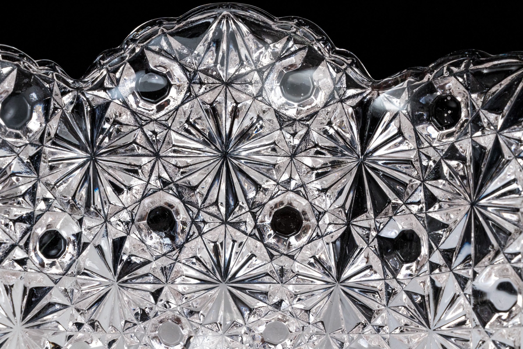 Including a large bowl and seven smaller bowls, all with scalloped rims and in a starburst pattern. The large bowl with flat round feet.