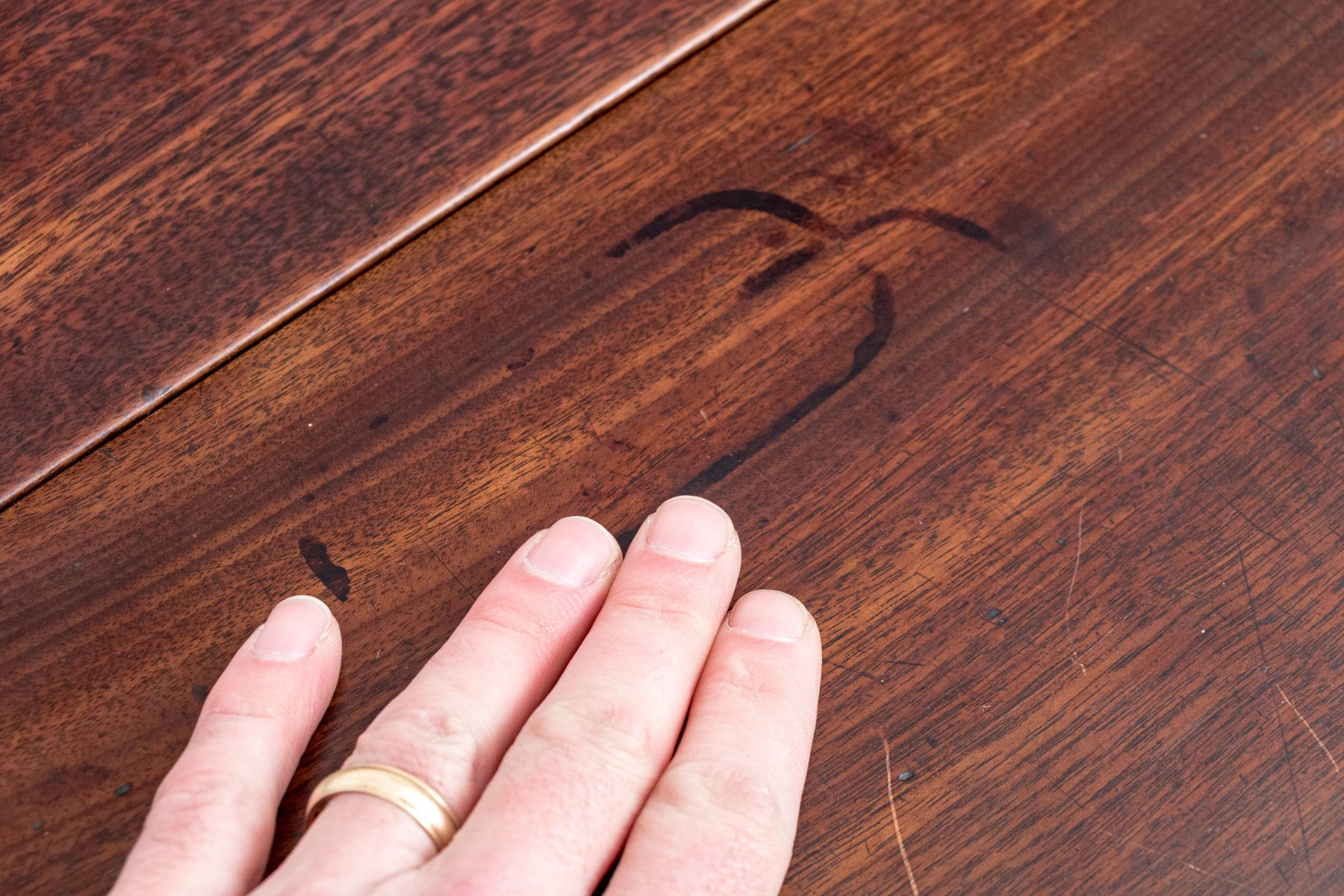Surface scuffing and scratches and some stained spots commensurate with age and use. Despite wear the table presents well.