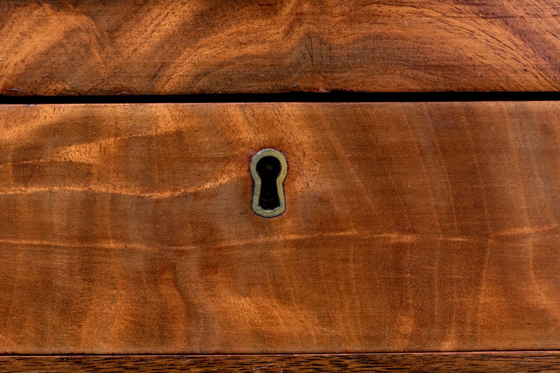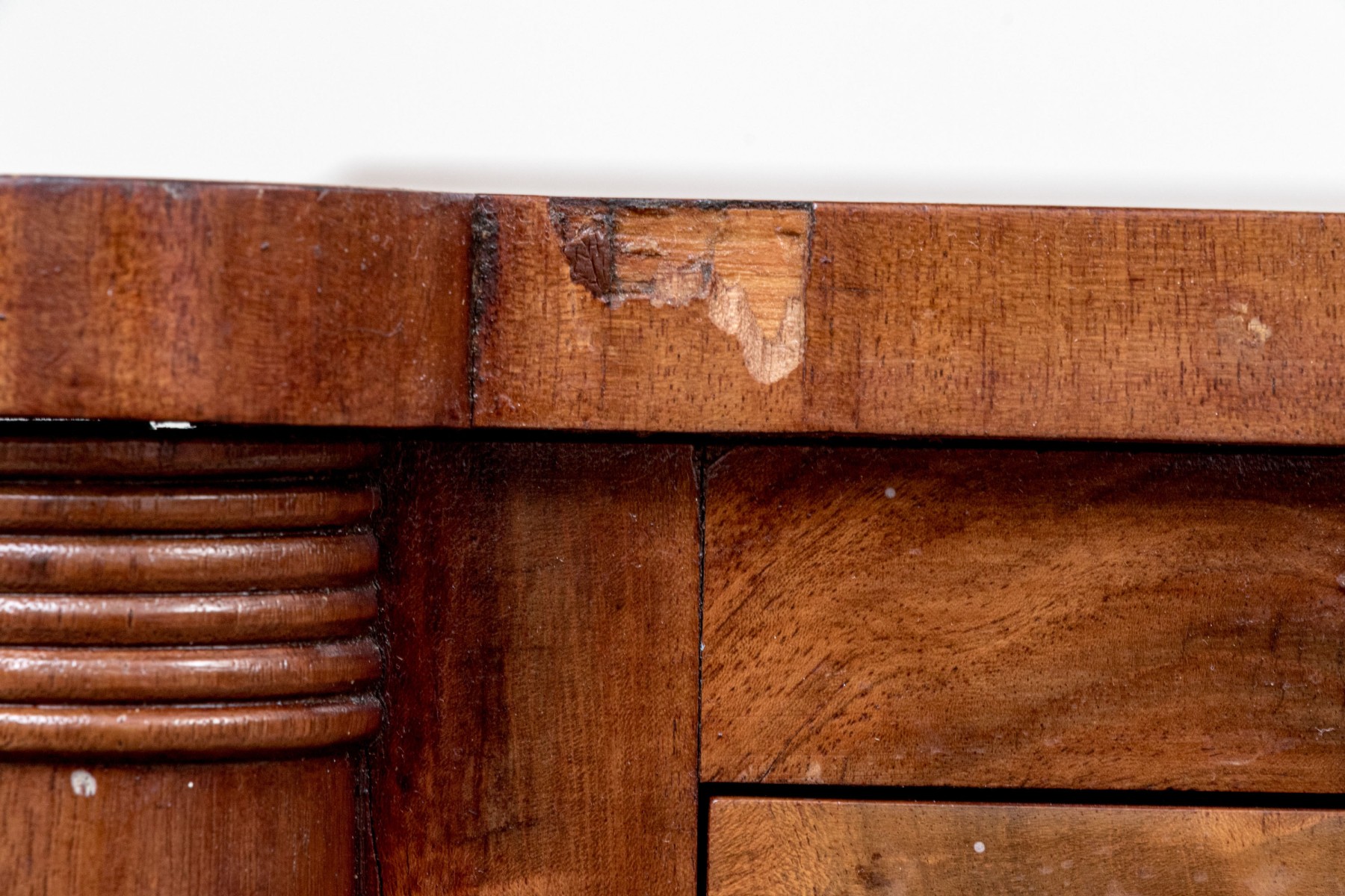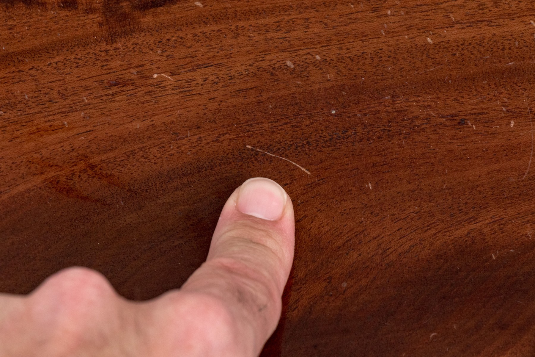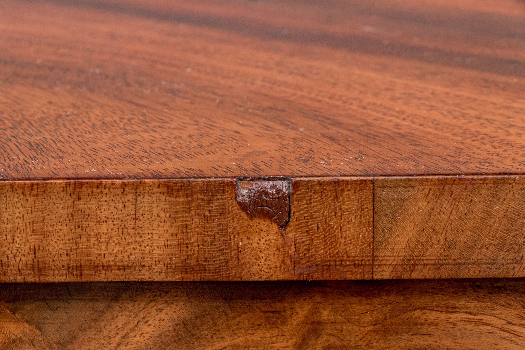 Mahogany with cookie corners and acanthus hand carved leaves. Three graduated drawers with lower shelf.