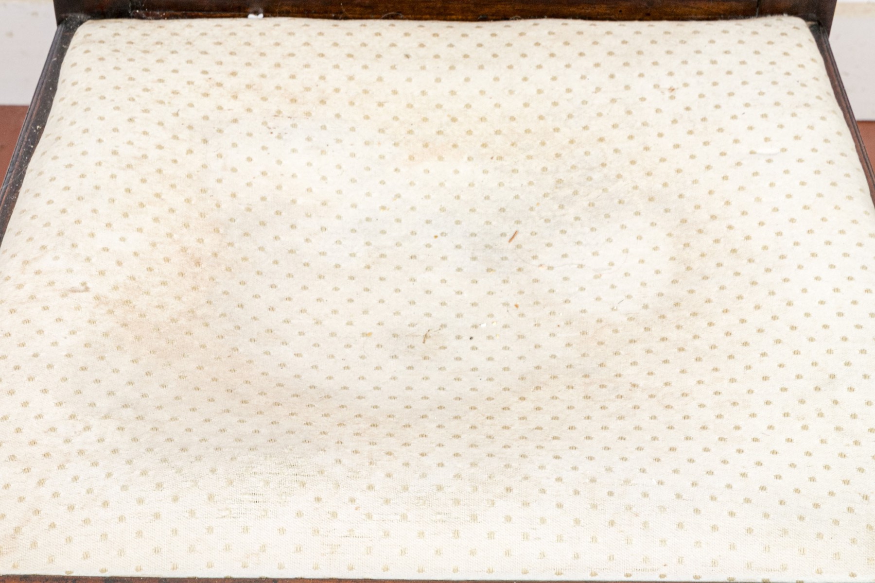 Condition: Old repair with visible glue to stretcher support. Stained and worn seat cushion. Fractured splits to top rail, but presents beautifully overall. See images as they are part of the condition report.