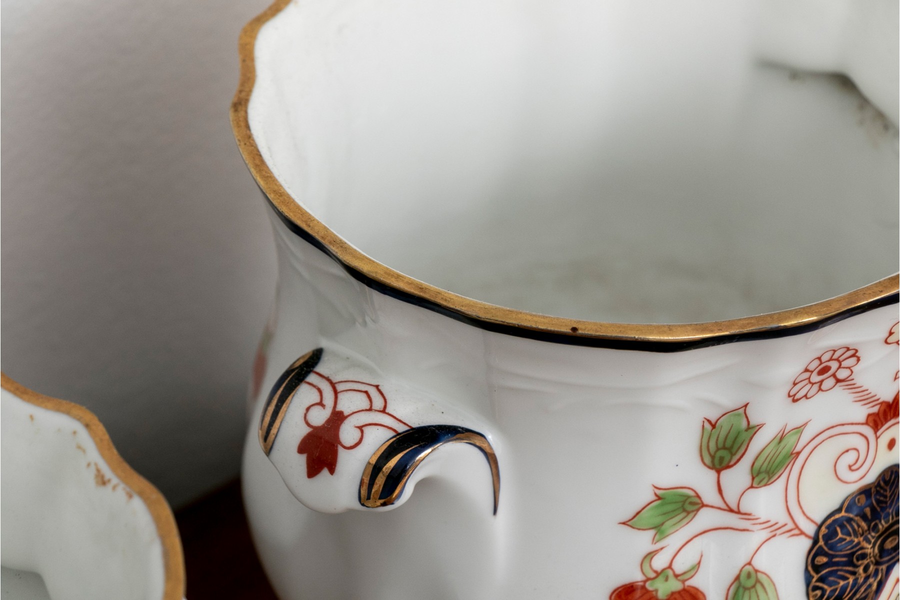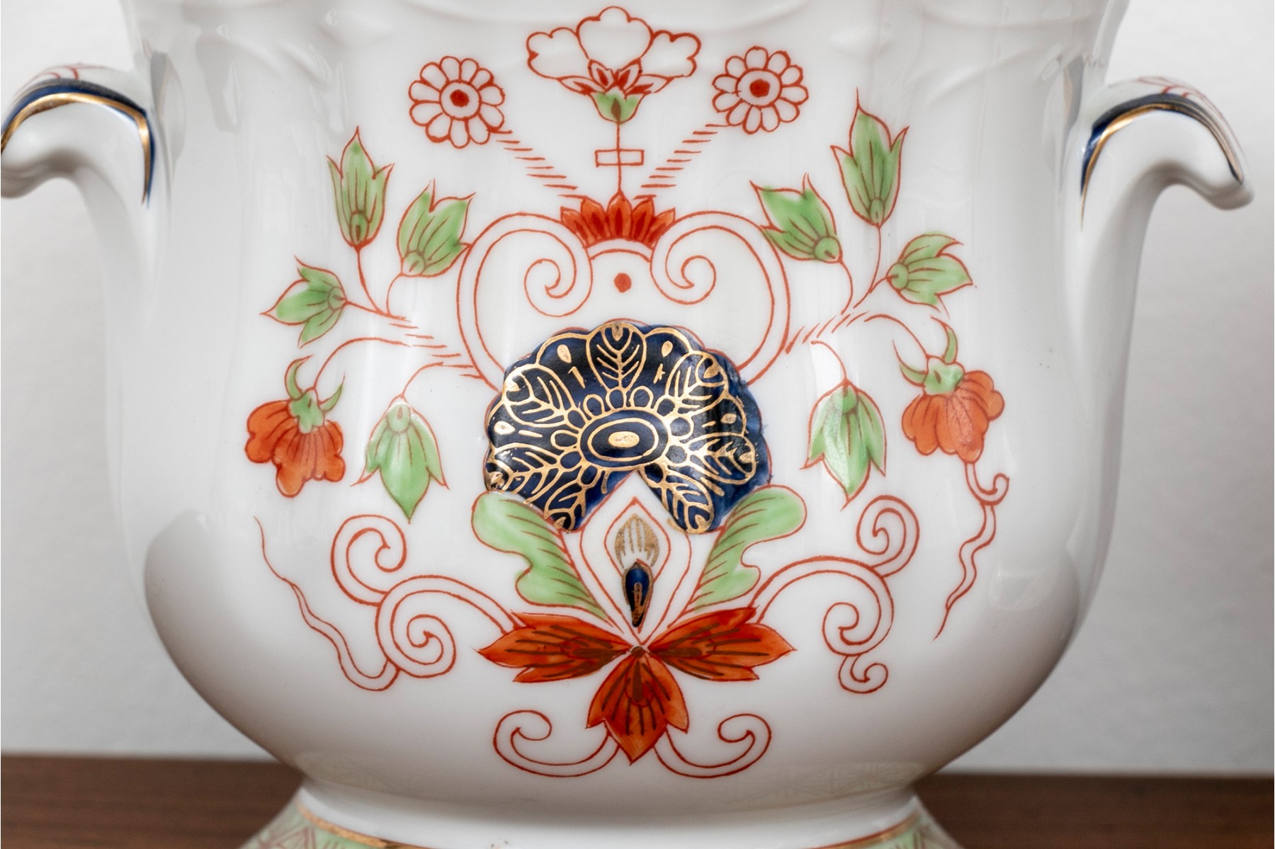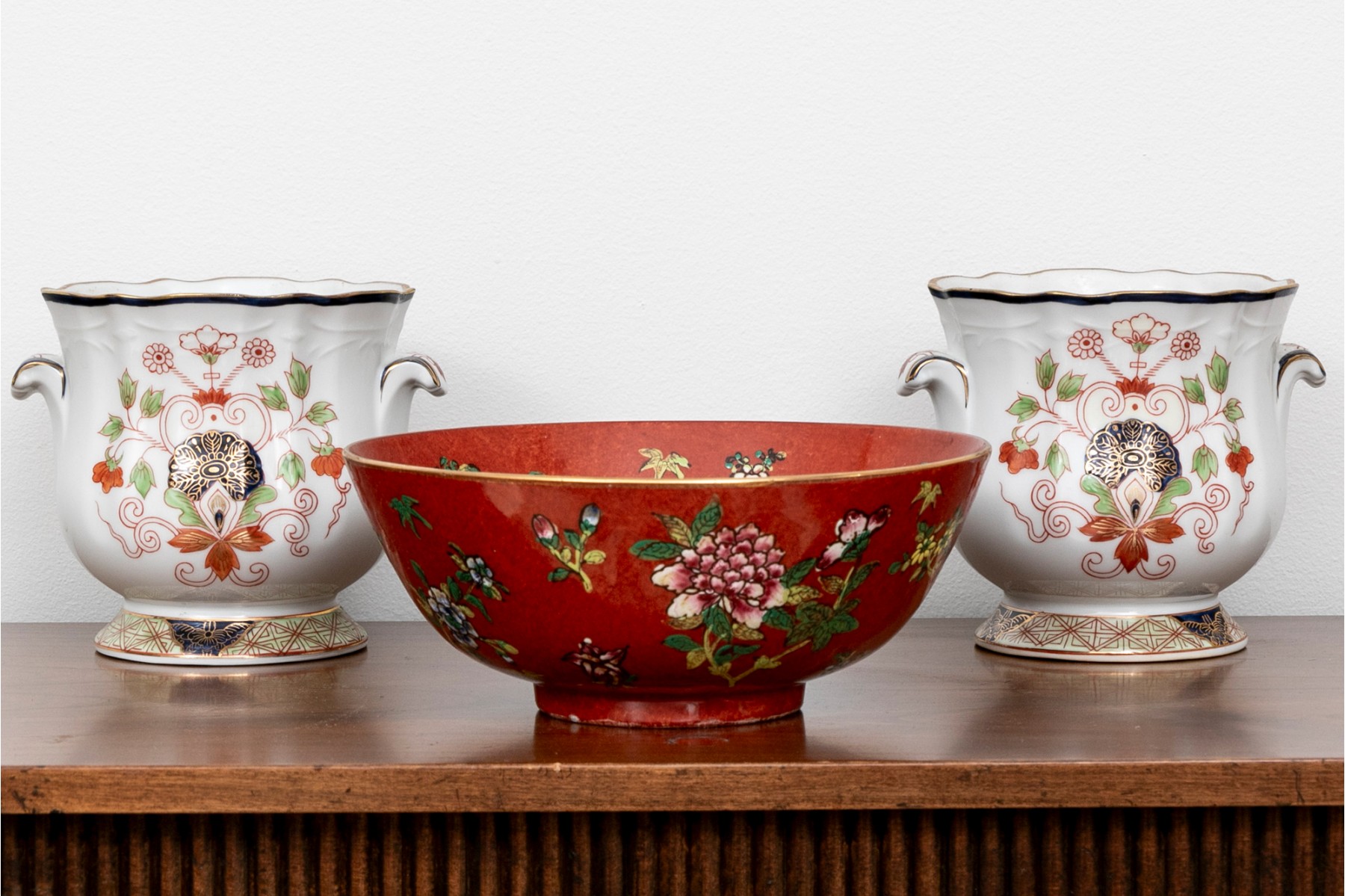 Including a lovely pair of export style twin handled porcelain vases / coolers with scalloped mouth trim, standing on circular feet and marked underfoot "HAND PAINTED / ORIENTAL GARDEN / amm / FOF / TASTESETTER COLLECTION".