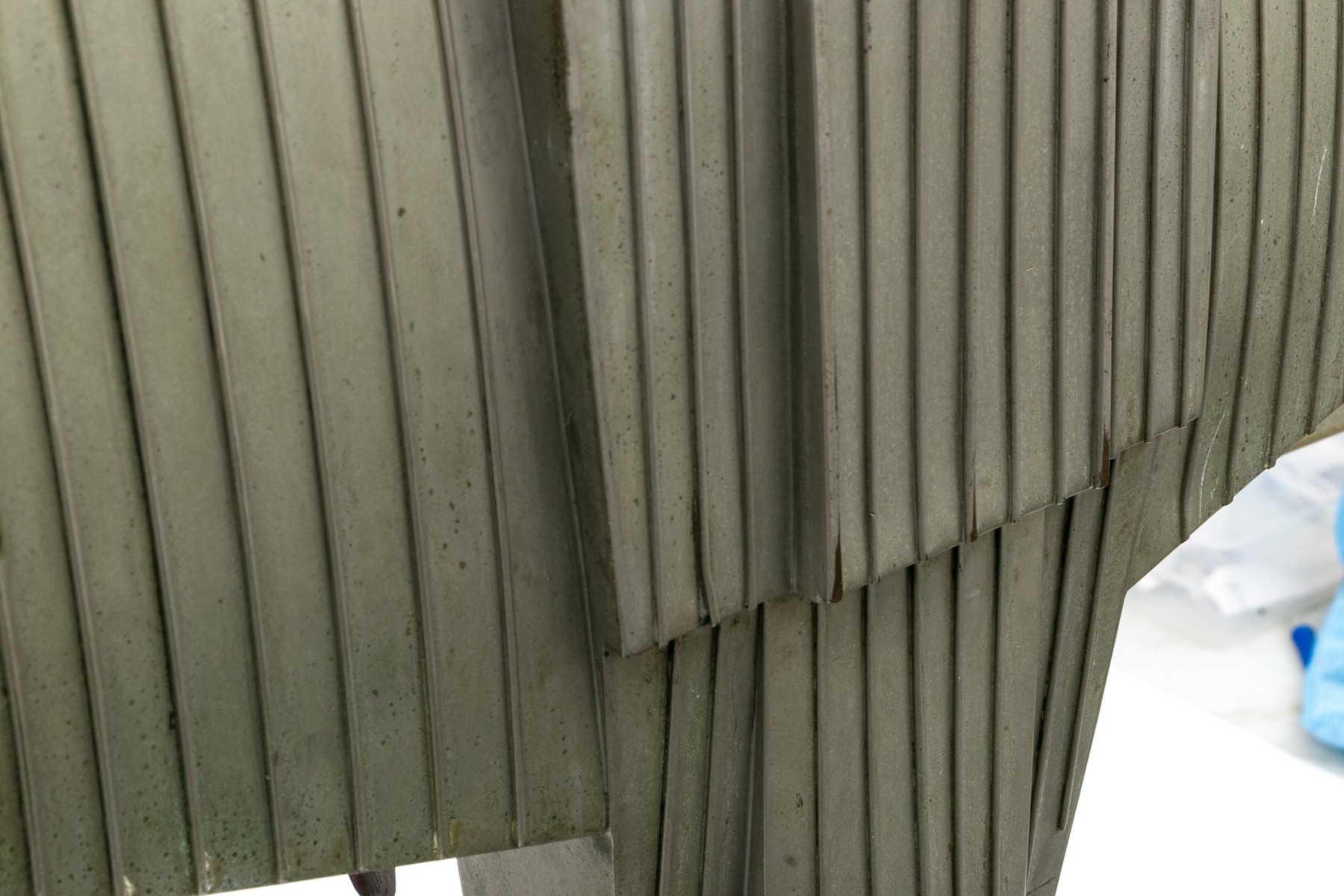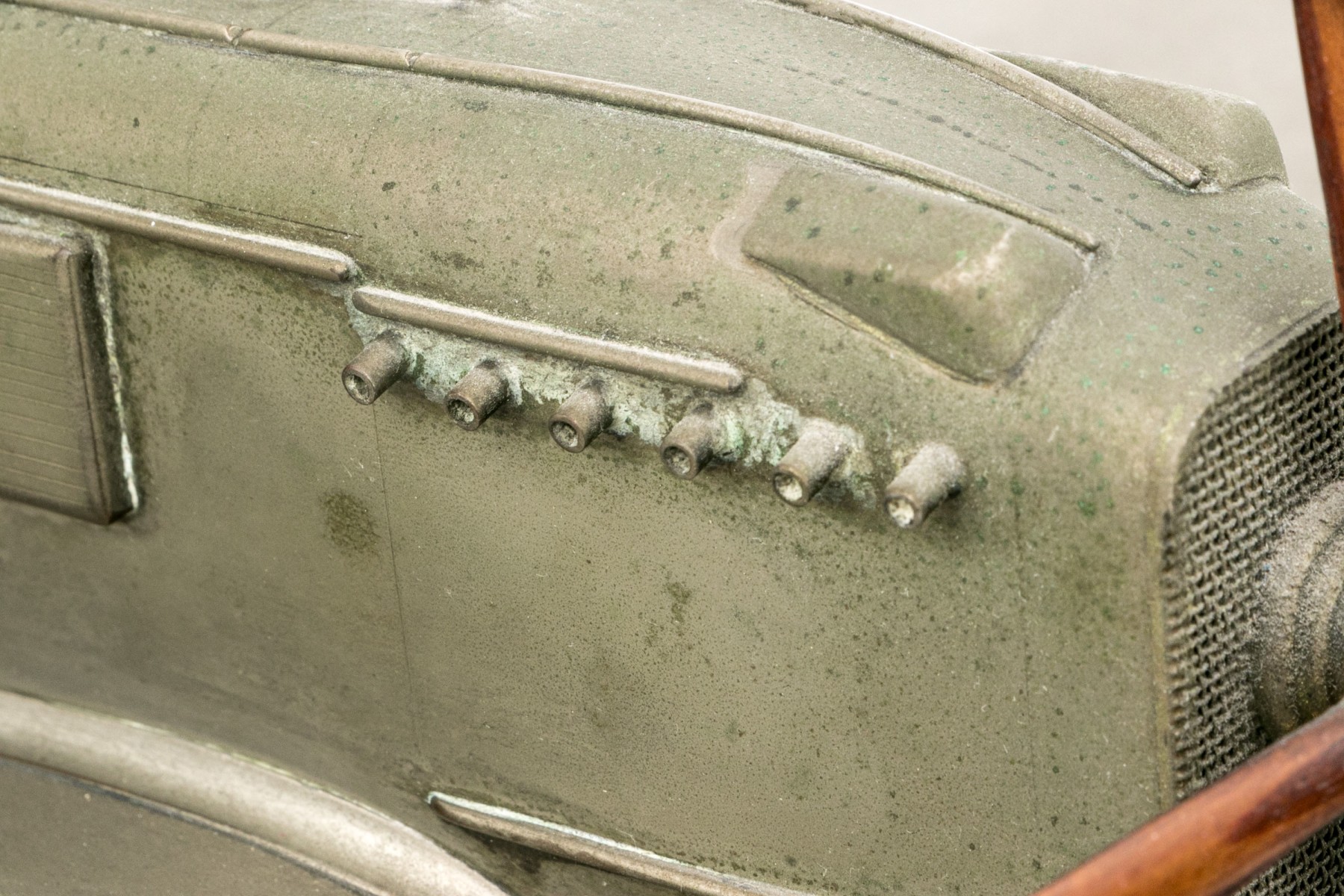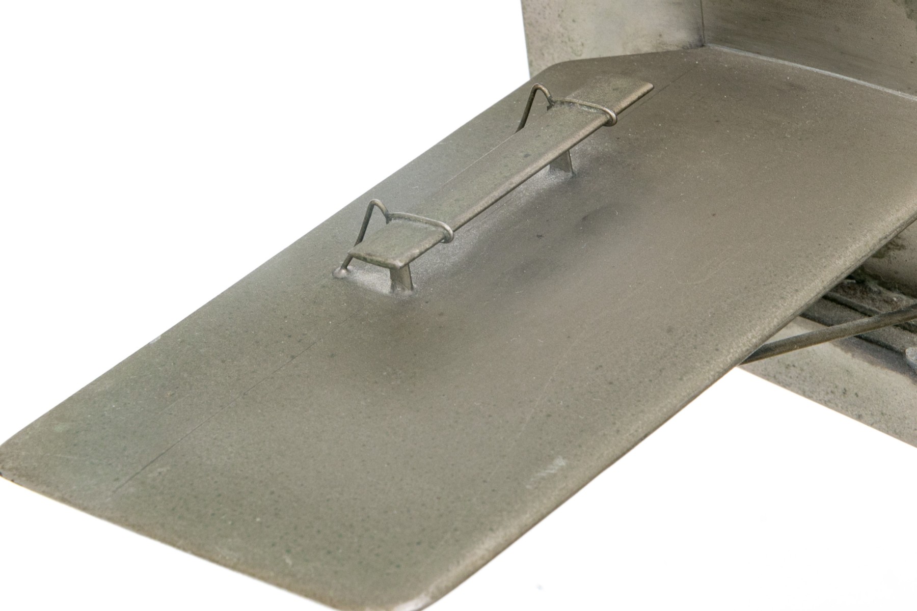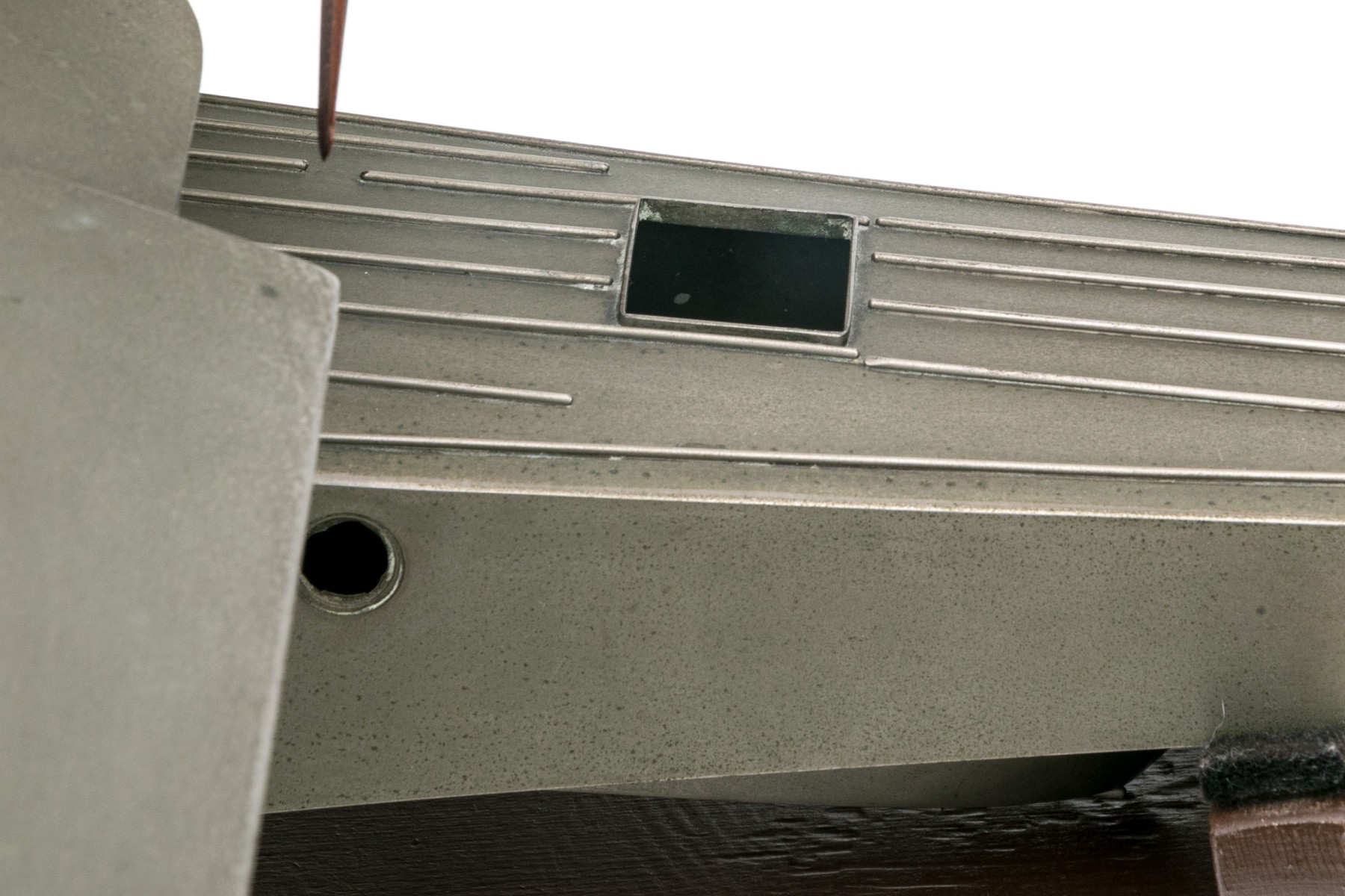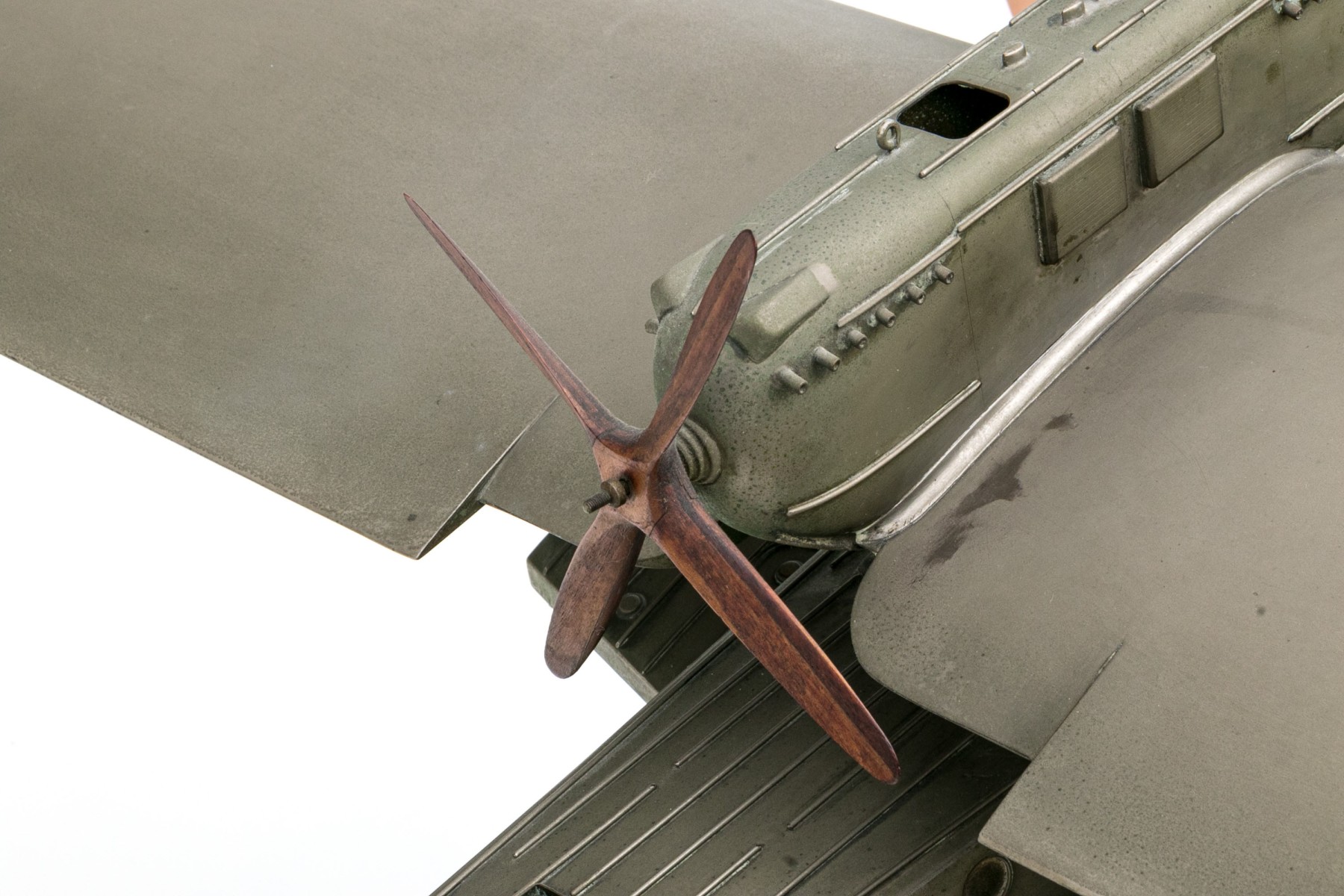 A 1930s nonferrous (probably white brass) engineering model of a “Dornier-Wal.” Handmade scale replica and most likely a journeyman's or machinist project. Examples are incredibly rare with all known examples either in the Smithsonian or Dornier-Wal Museum (Germany). The model is heavy and well constructed with great detail and beautiful welded or soldered joints, two hand carved wooden propellers are mounted on the top. It mounts on a custom wooden stand.