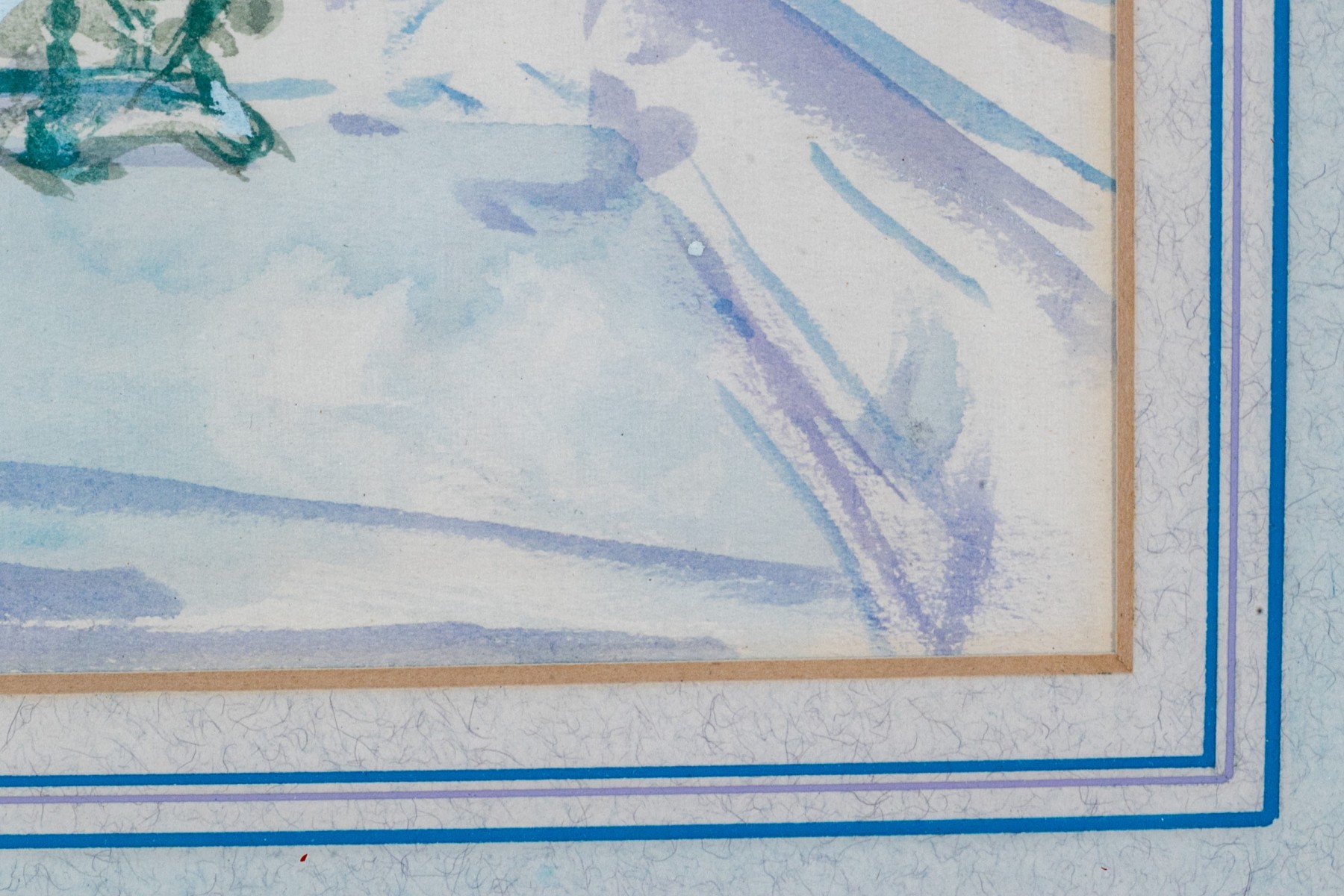 Light toning to the paper and gentle wear to the watercolors which are slightly sun struck. Addition gentle wear to the frame.