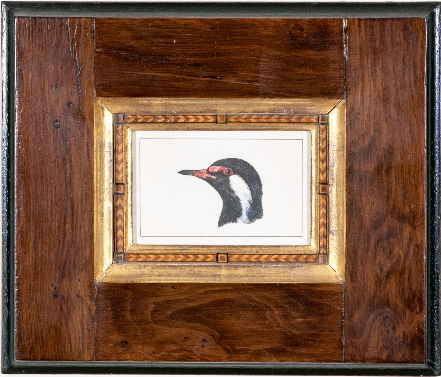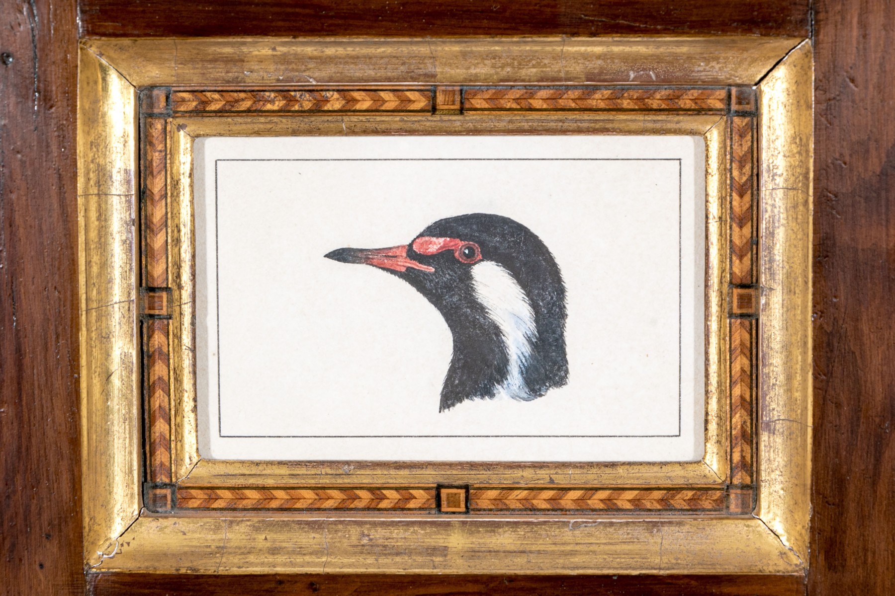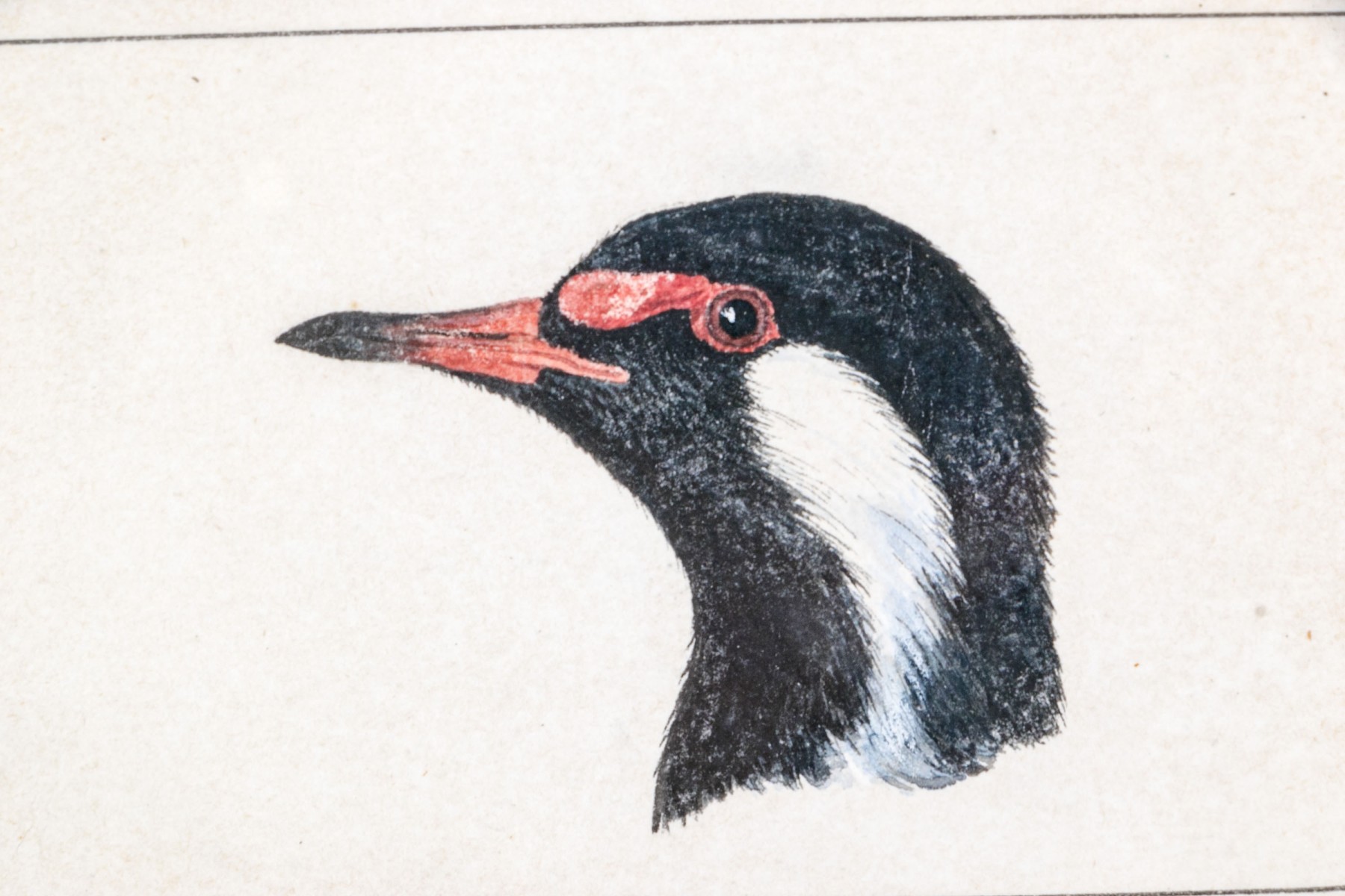 An Anglo-Indian school watercolor on paper depicting the head of a bird in profile, likely a red-wattled lapwing.