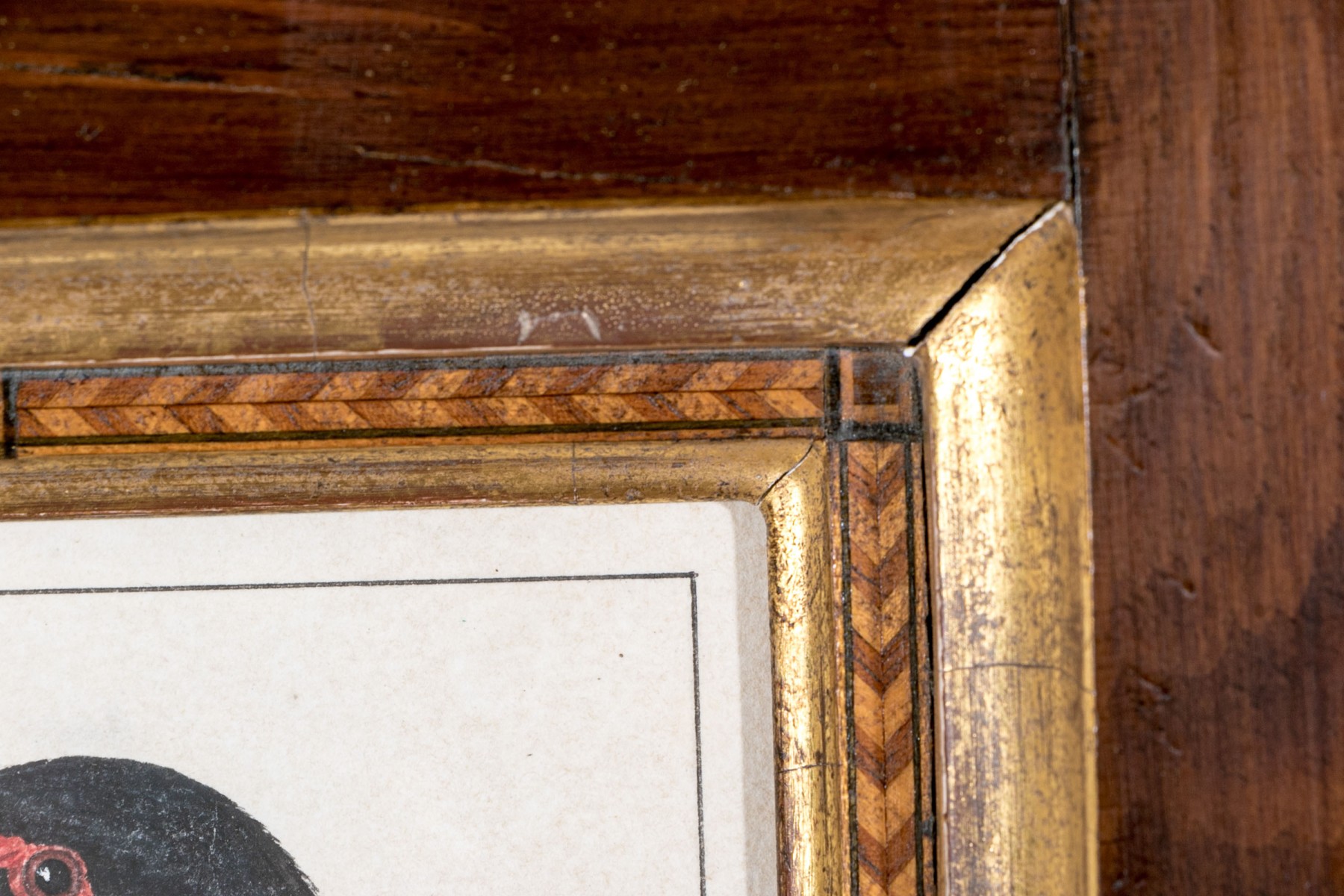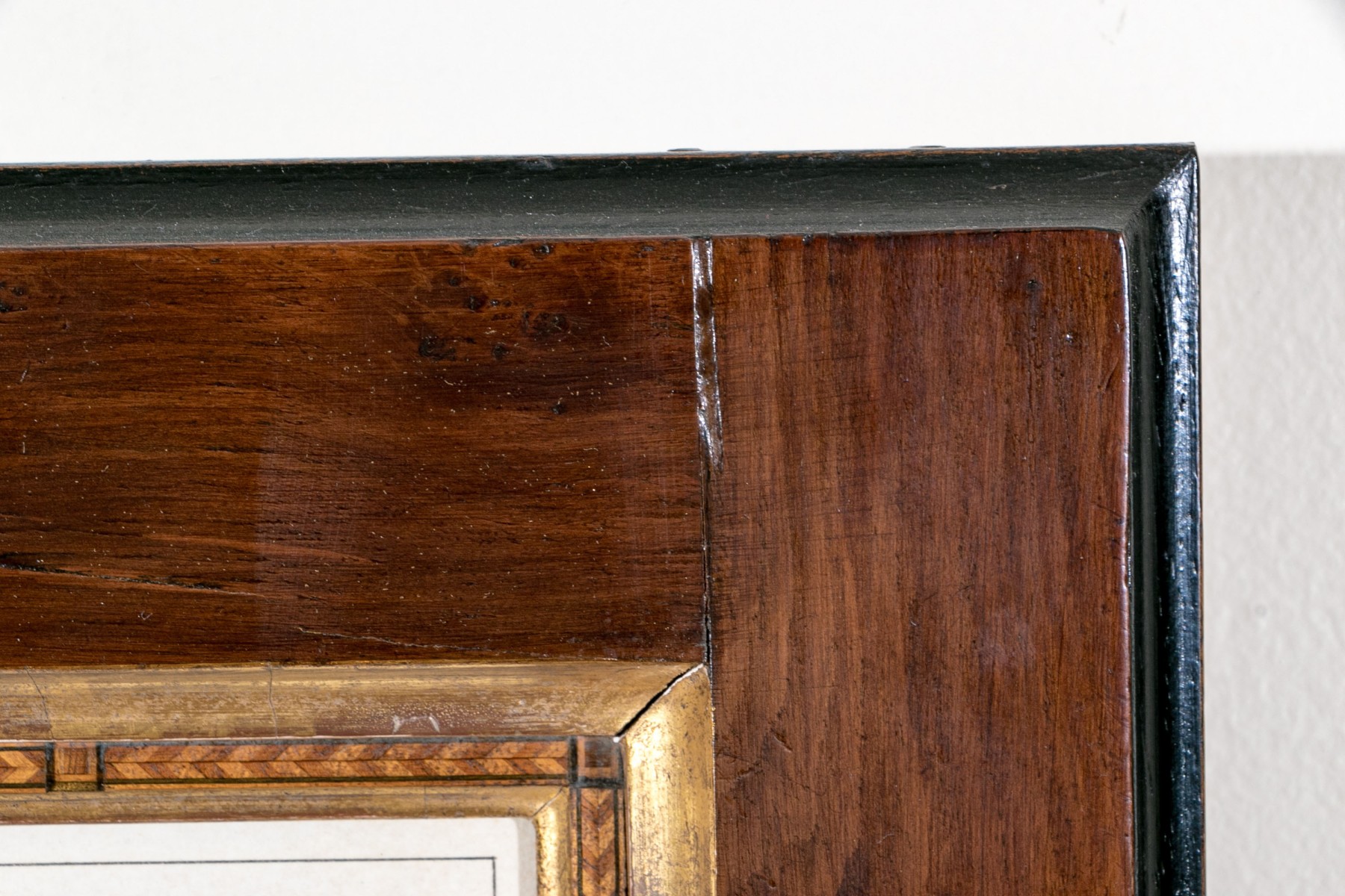 Presented in a modern handmade veneer and gold leaf frame and glazed.