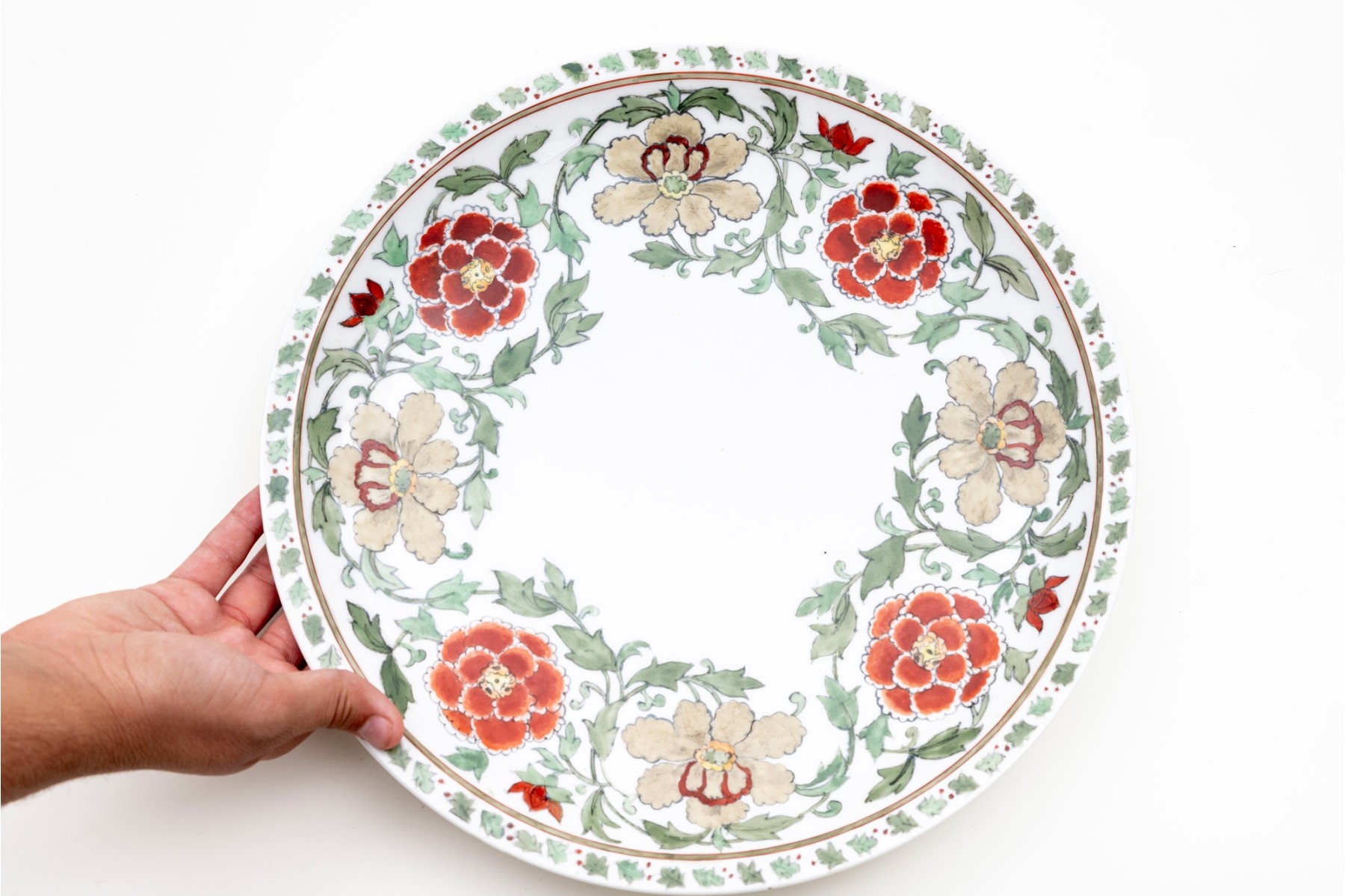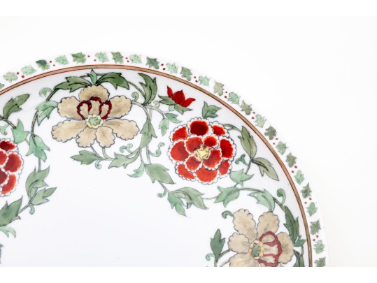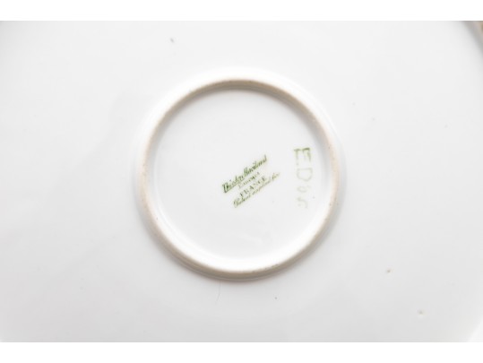 A decorative 12" porcelain plate by Theodore Haviland, beautifully adorned with delicate floral motifs encircling its rim.