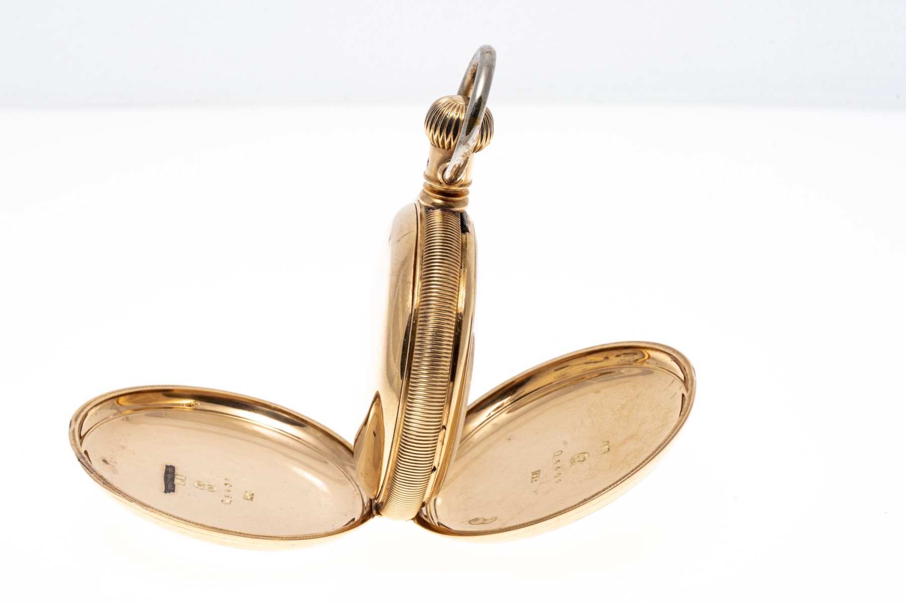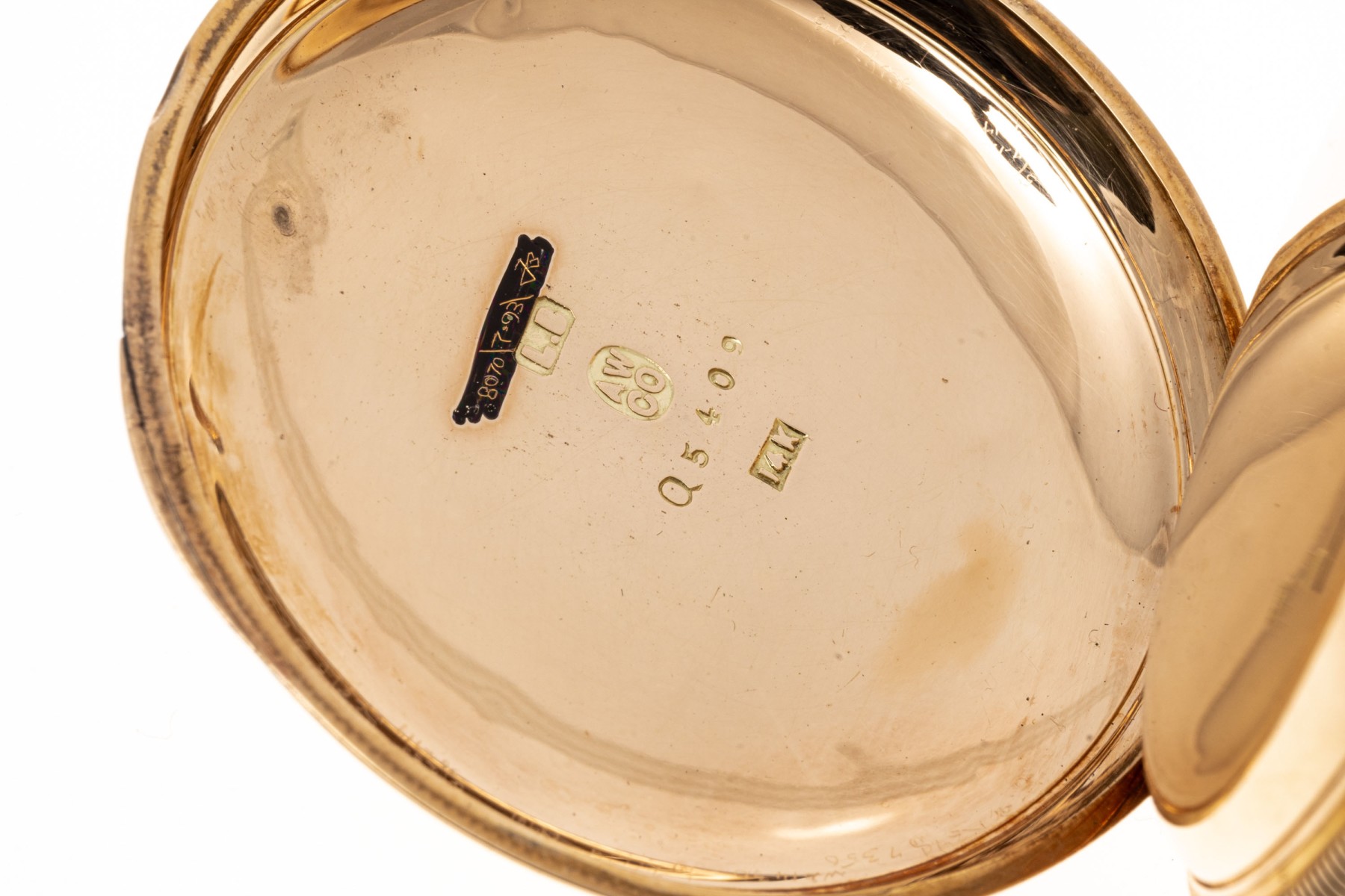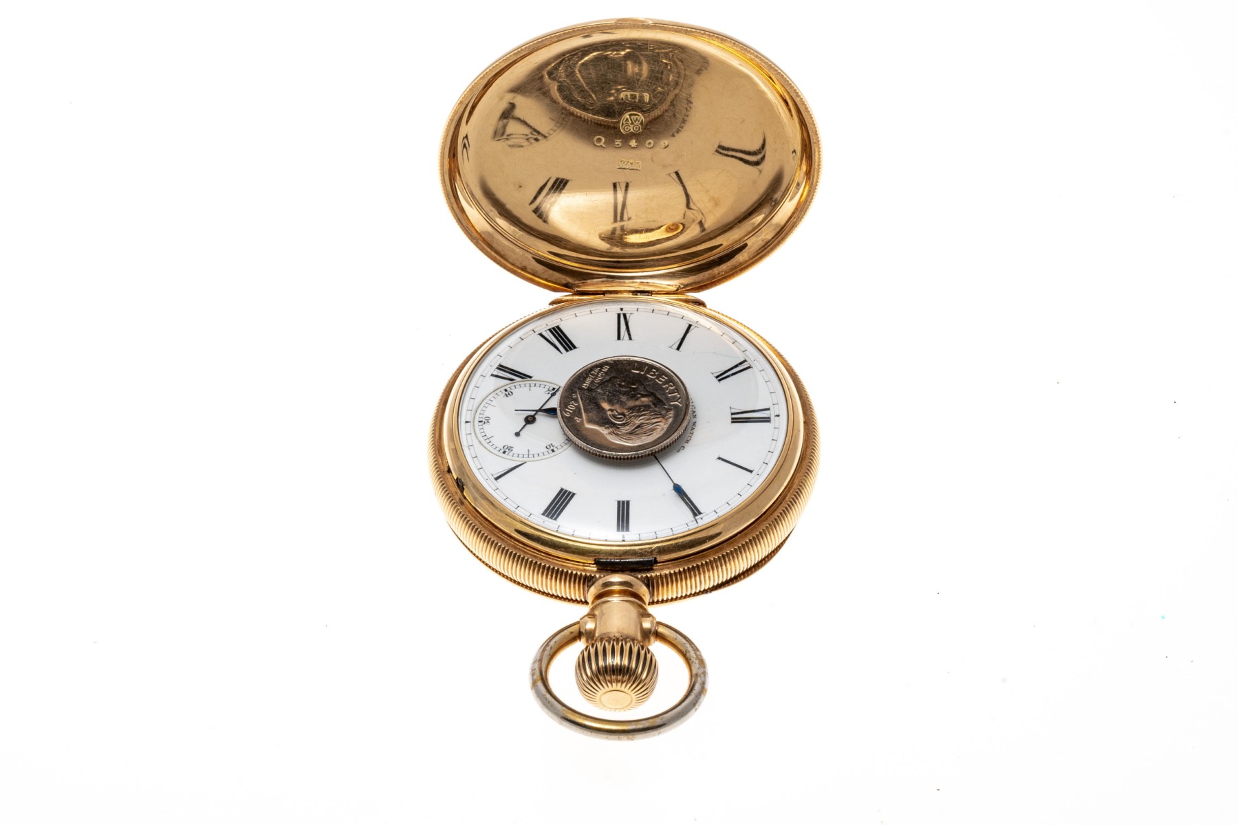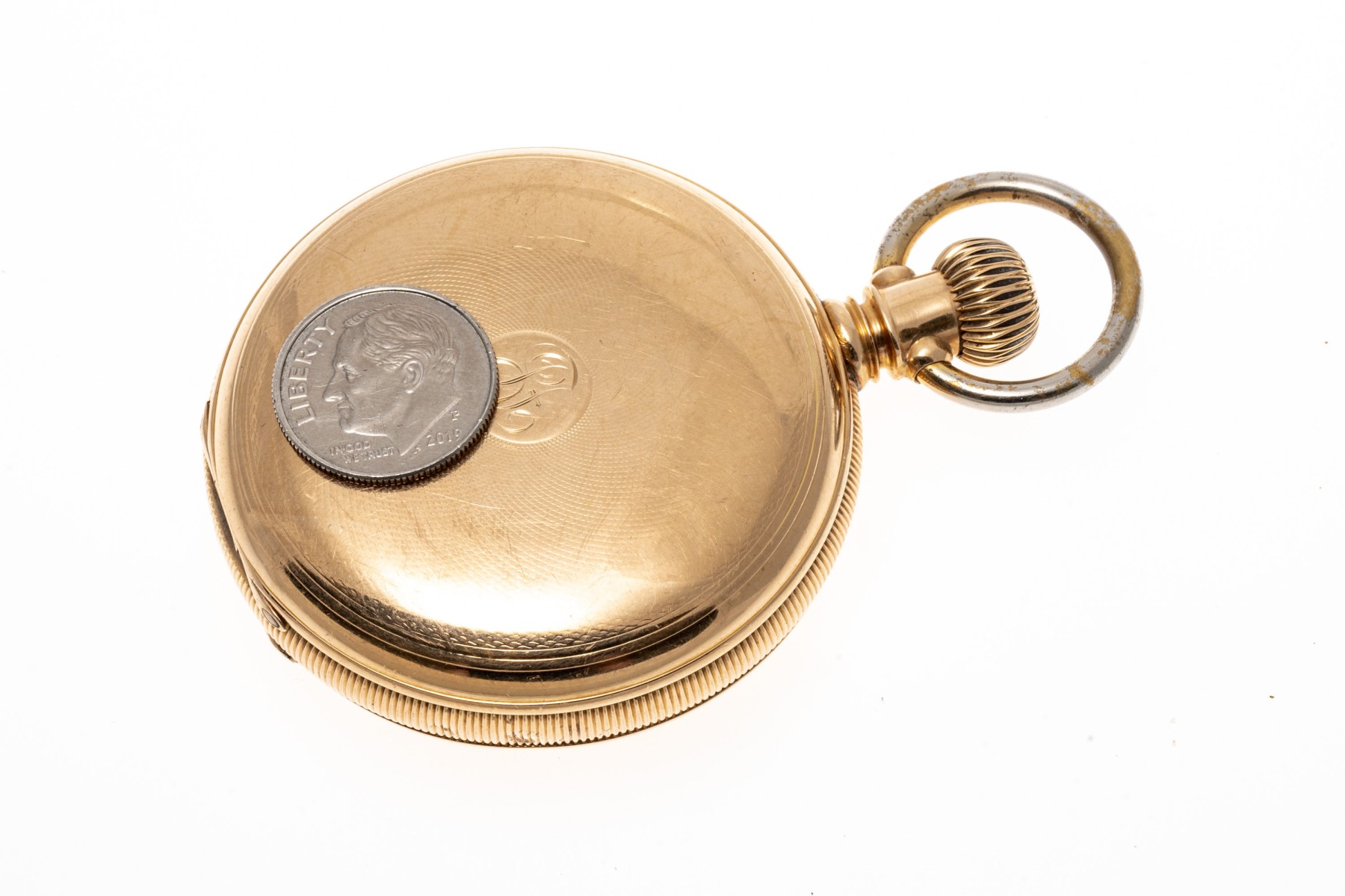 Antique 14K Waltham mechanical pocket watch. The watch as an engine tool case and a dial with Roman numeral indices, sub second dial at the 6:00 position. Circa 1883.