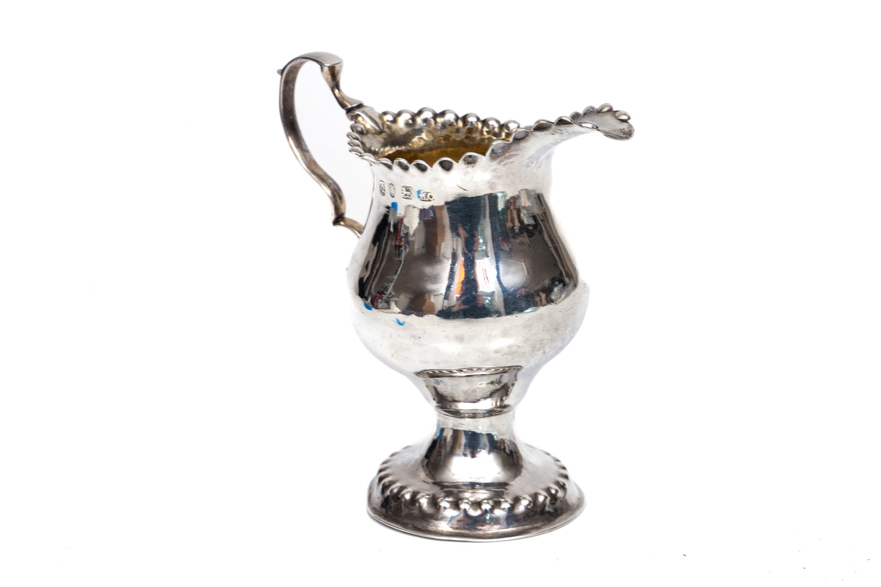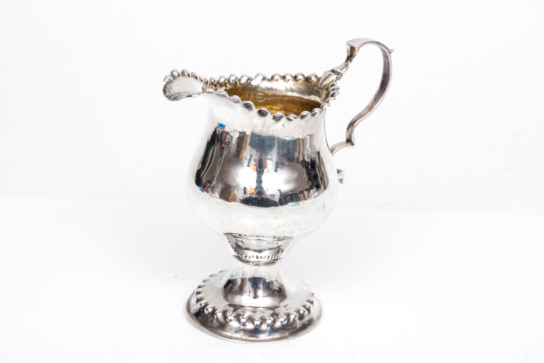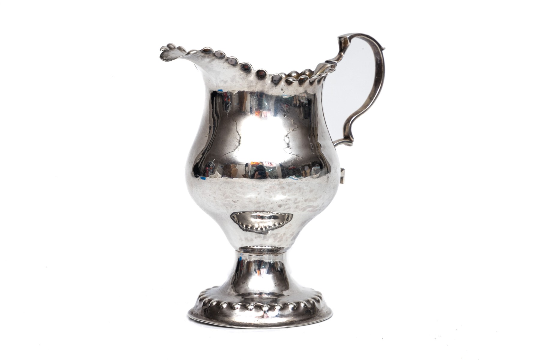 Antique 18th century English sterling pedestal creamer, beaded edge, circa 1775, London