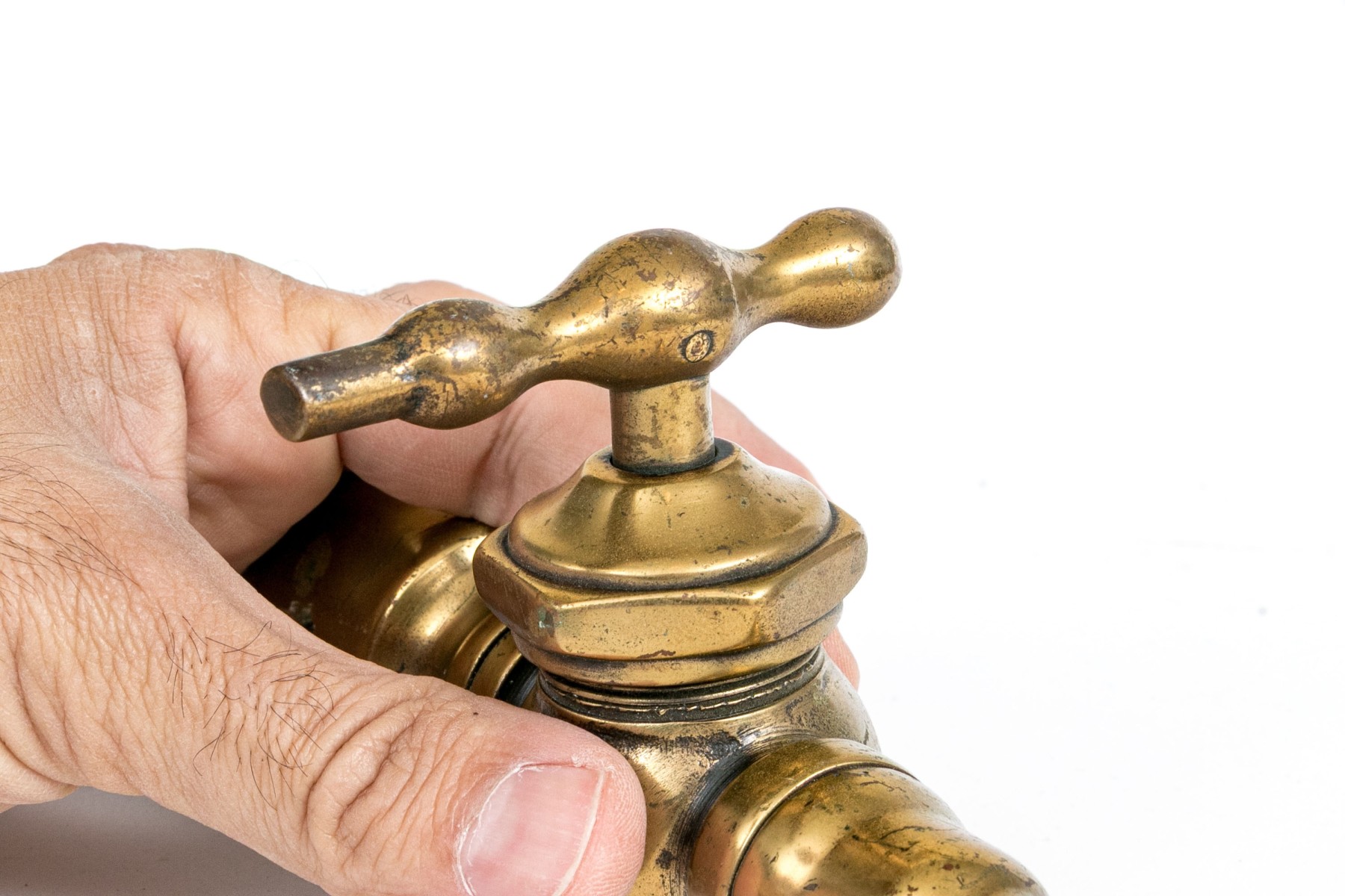 A wonderful 19th century barrel tap in high quality brass, detailed with a spherical center topped with the handle.