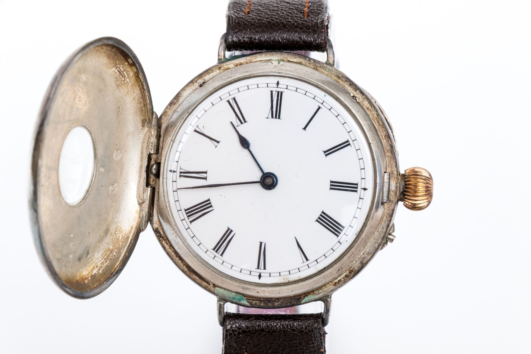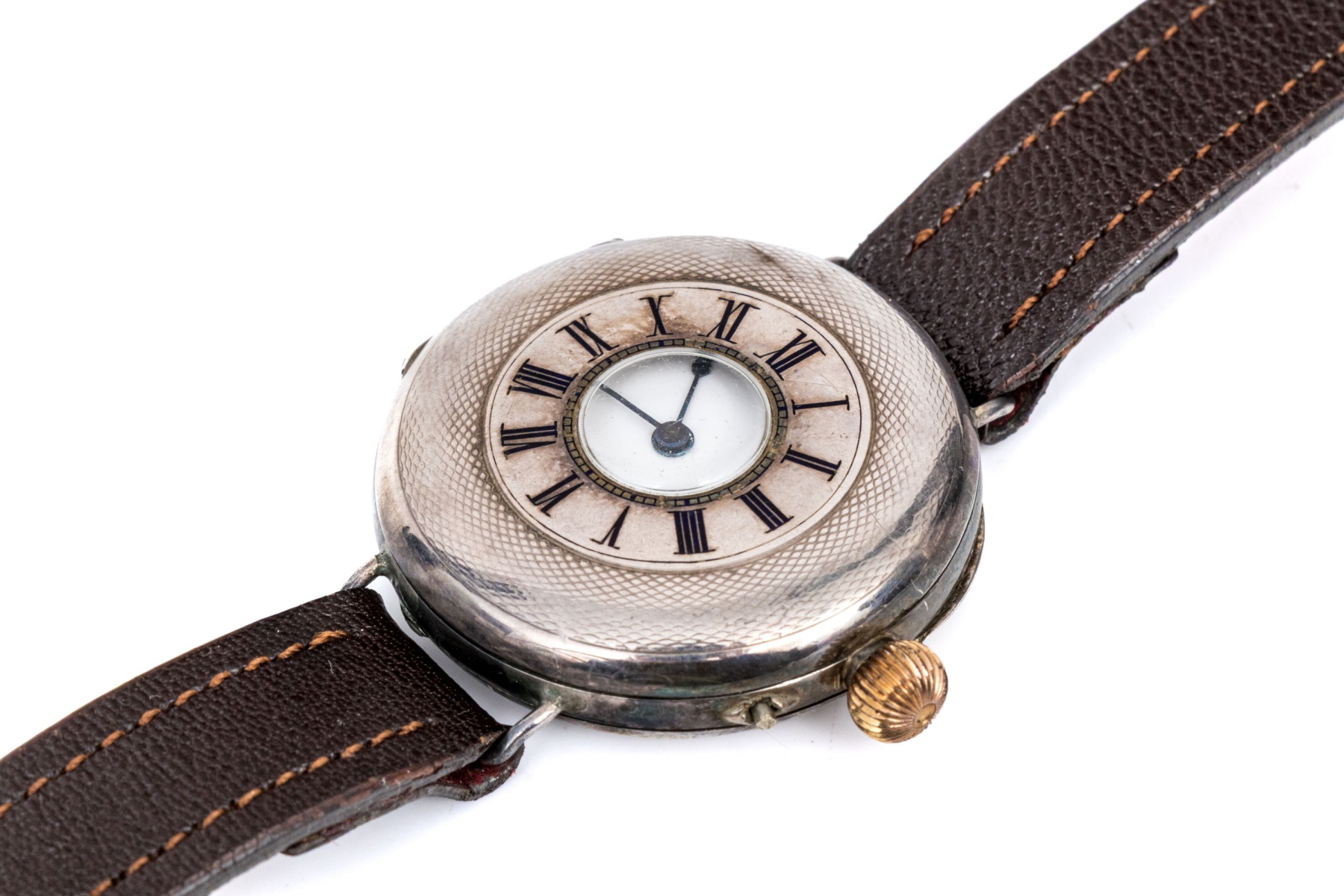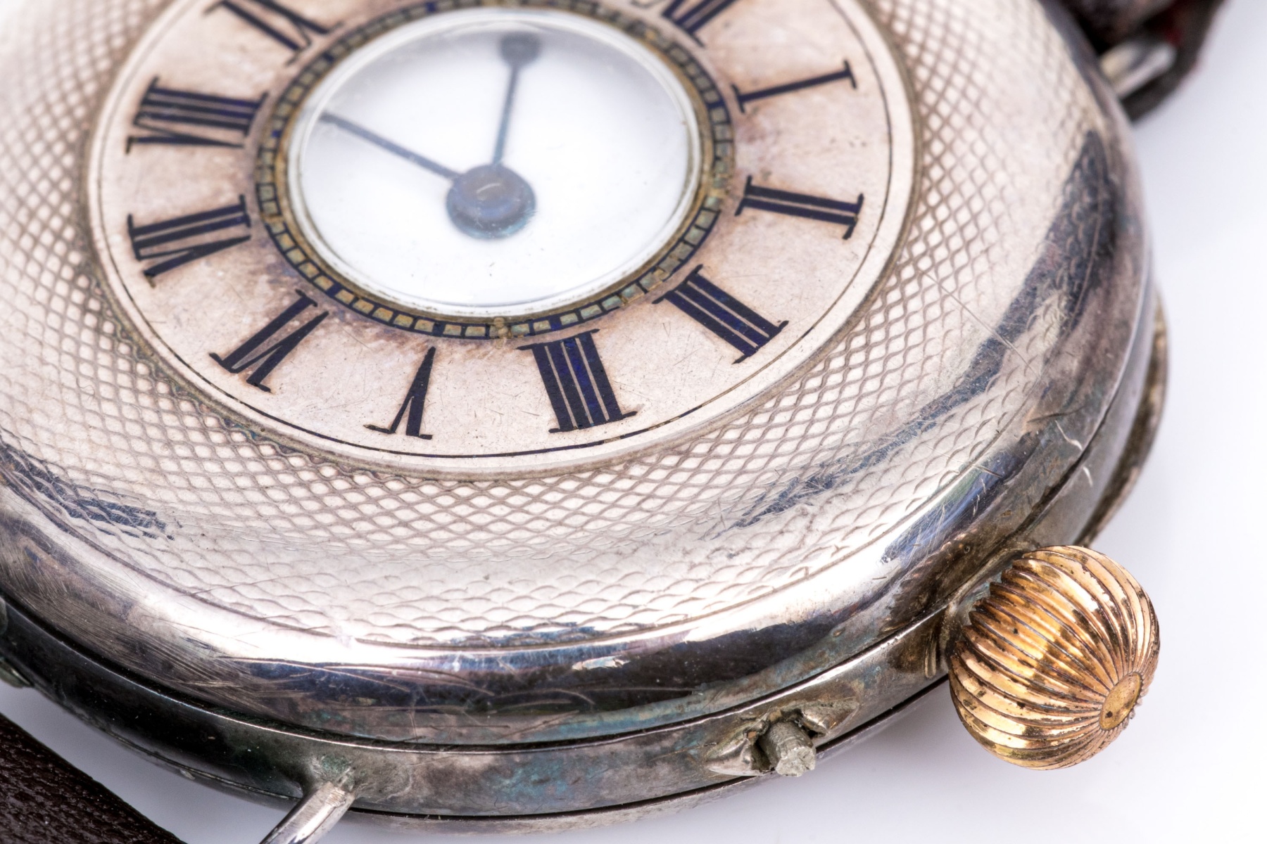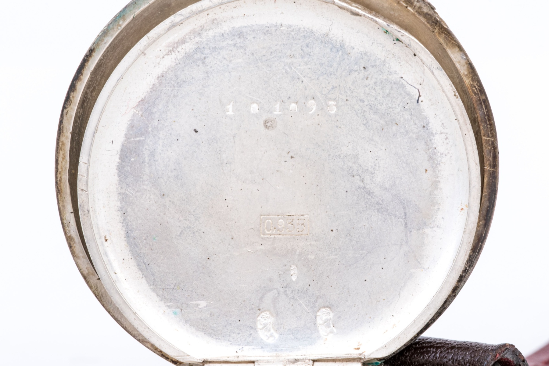 Antique 935 silver handsome demi-hunter converted lever set pocket to wristwatch, strap worn