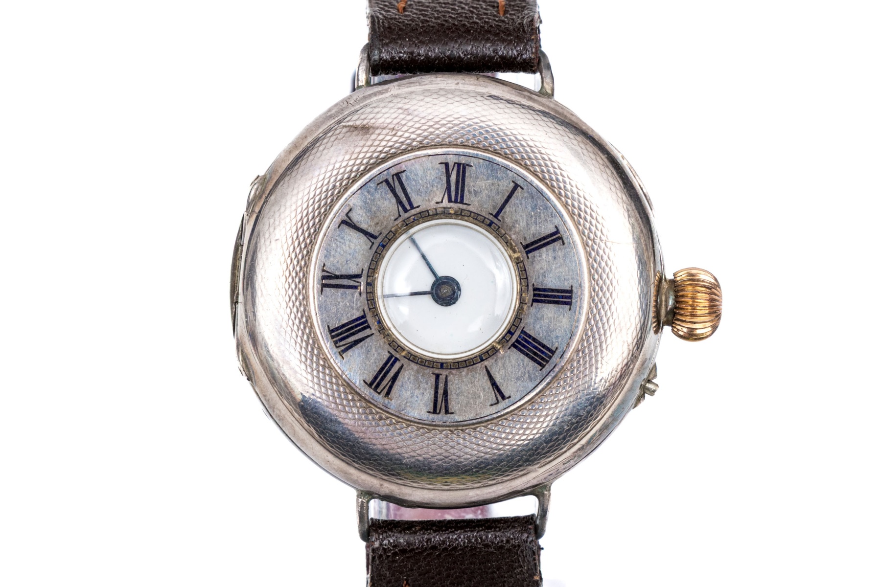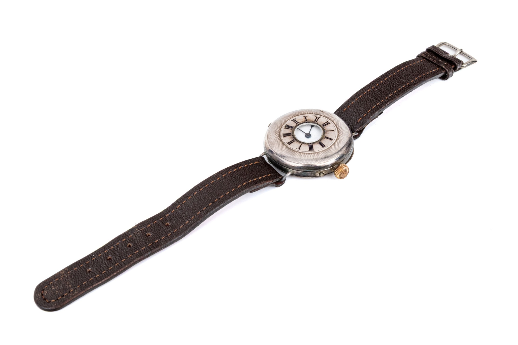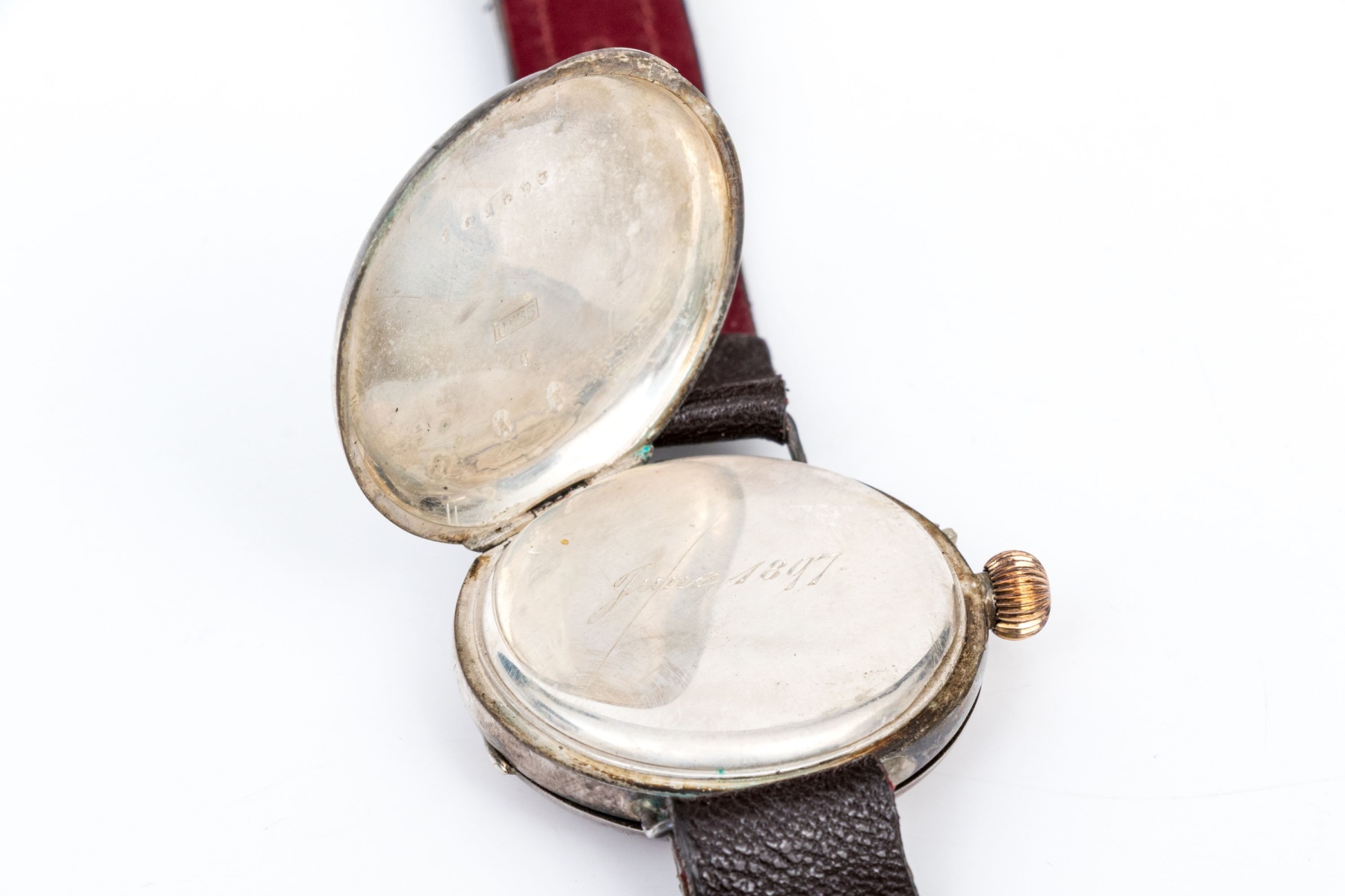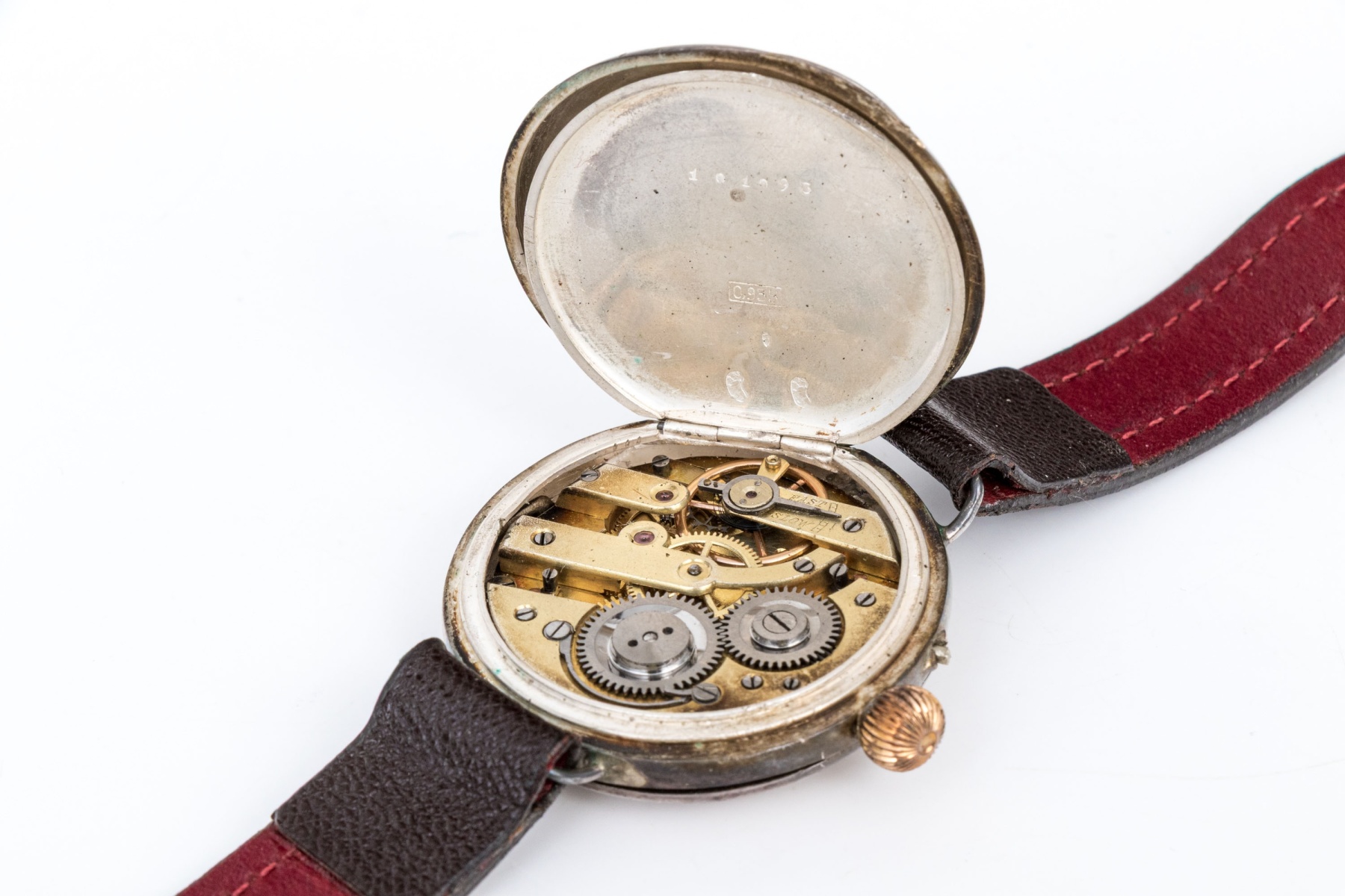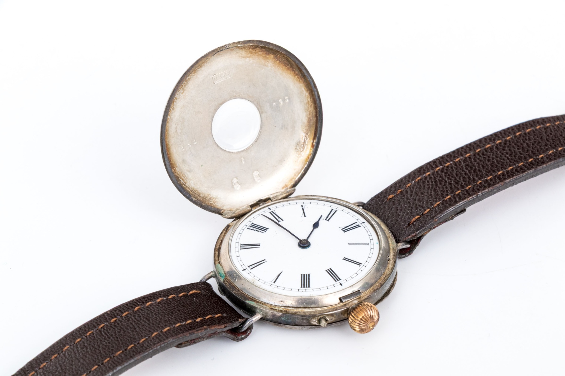 Antique 935 silver handsome demi-hunter converted lever set pocket to wristwatch, strap worn