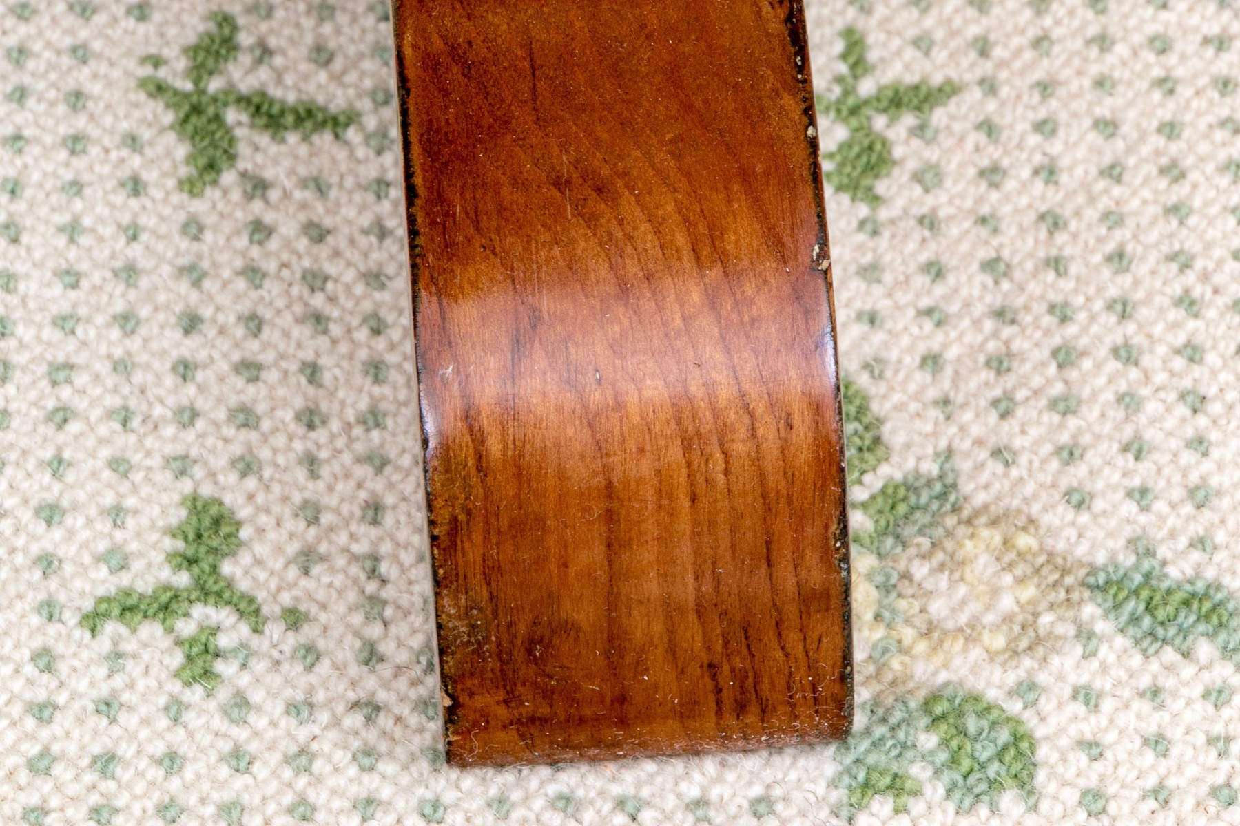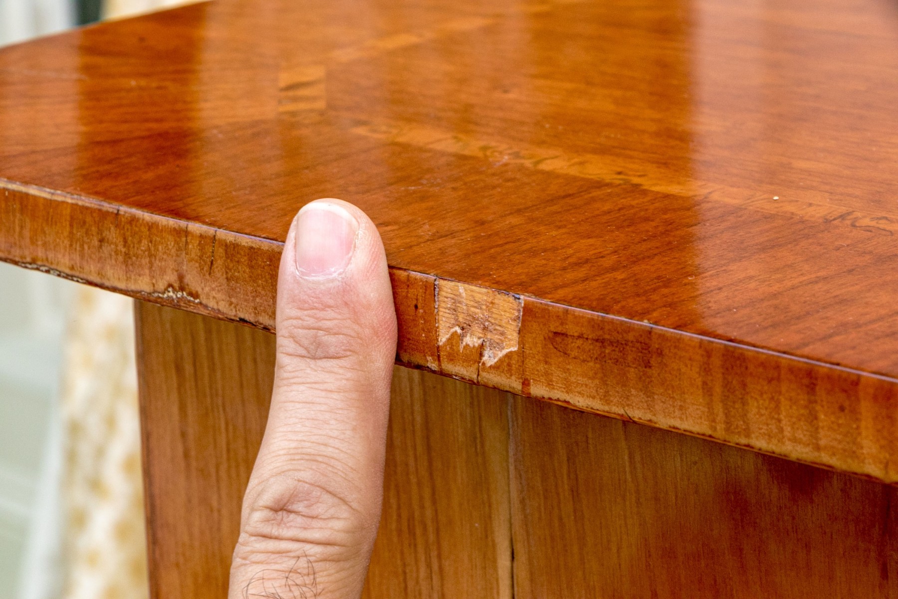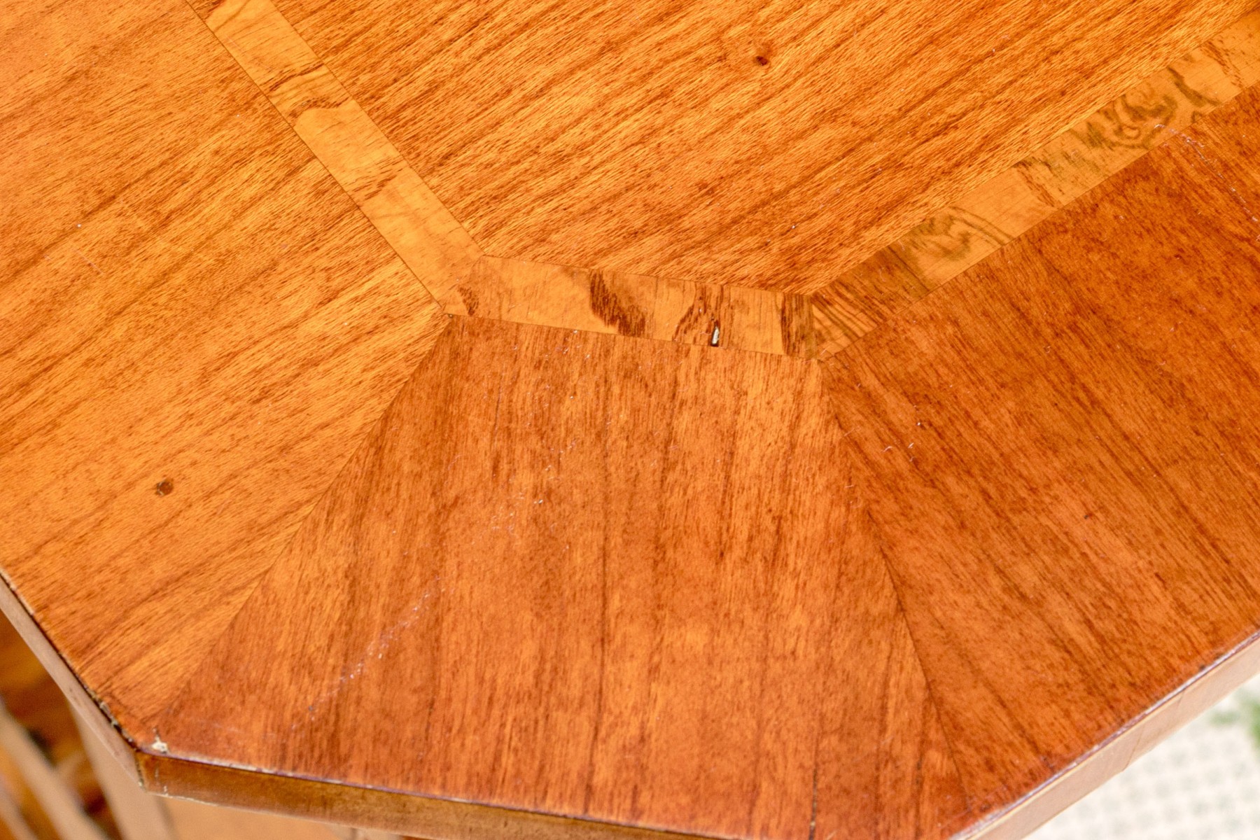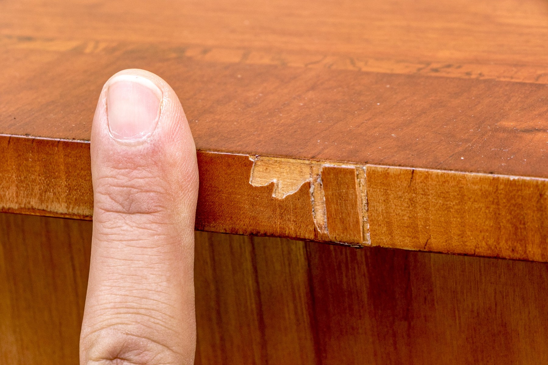 Loses to veneer in several places around the edging of table commensurate with age and use but overall still presents very handsomely.