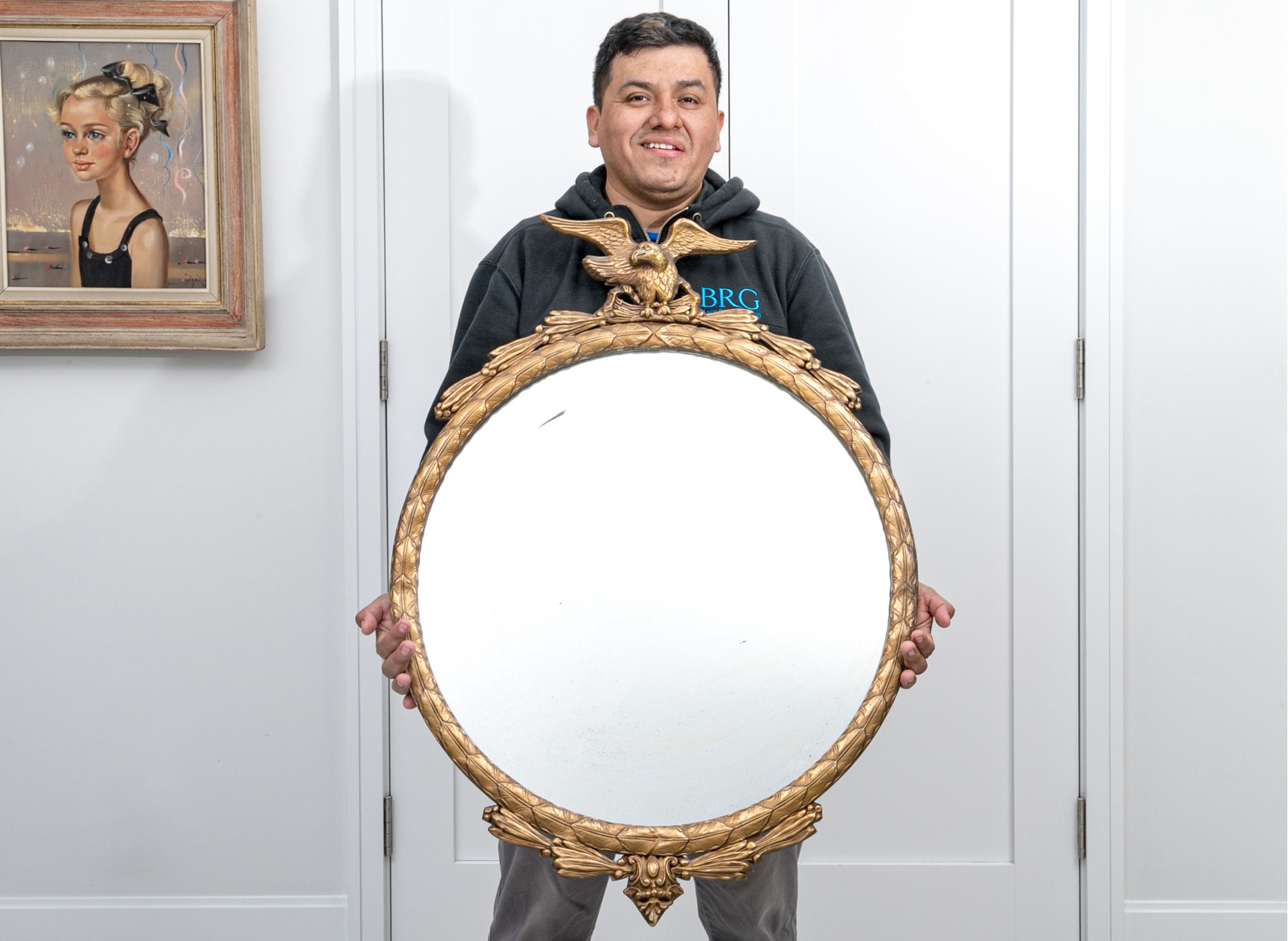 Antique Carved And Gilt Mirror With Eagle Crest #306119. Black Rock Galleries provides high end estate liquidation services through online estate auctions and a 50,000 sq ft designer showroom. estate liquidator, estate sale, online auction, antiques, fine art, liquidation, clean outs, auction, consignment, interior design, fine jewelry, collectibles, appraisals, estate appraisals, estate services, decor, furniture, furniture consignment, antique center, consignment shop. We offer appraisal services and specialize in fine art, jewelry, antiques and decorative arts. Sell with us. Black Rock Galleries is the tri-state's largest estate liquidator serving New England and the greater New York City area. We are the trusted source for expert appraisals, auction services, estate sales, and consignments. Black Rock Galleries is the east coast's largest and most trusted estate liquidator, with locations in Connecticut, greater Boston, MA and Raleigh, NC, Fairfield, Southport, Apex, TX. We are the best source for expert appraisals, auction services, estate sales and consignments. We have served thousands of families and estates with compassion, professionalism and expertise. BRG works with attorneys, executors, realtors and families to bring the greatest return on personal and estate property in the current market. Our unique combination of services make us the easy choice to get the job done in a timely and stress-free manner. We are with you from the initial consultation to the final clean out. Our house-built online auction software platform offers clients a dynamic approach to liquidating their personal property. This venue is most successful in bringing the best return with the least amount of disruption for our clients. See our services page for a complete description of this offering. Antique Carved And Gilt Mirror With Eagle Crest #306119