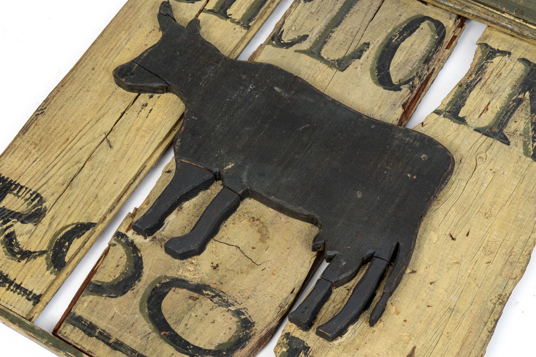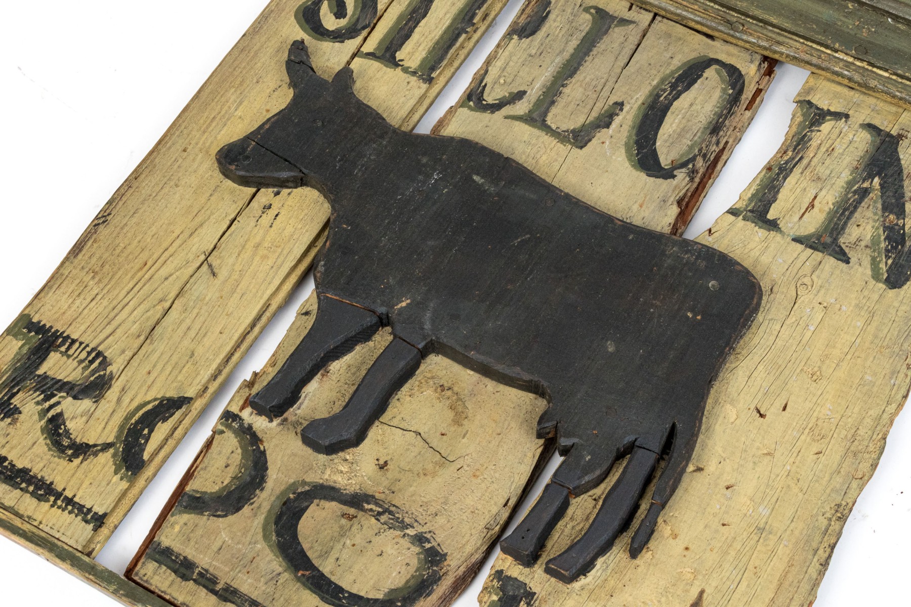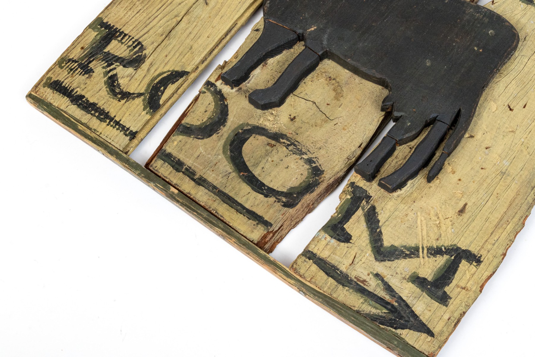 Condition: well worn with cracks, losses to letters and paint. Please review the photos as they are part of the condition report.