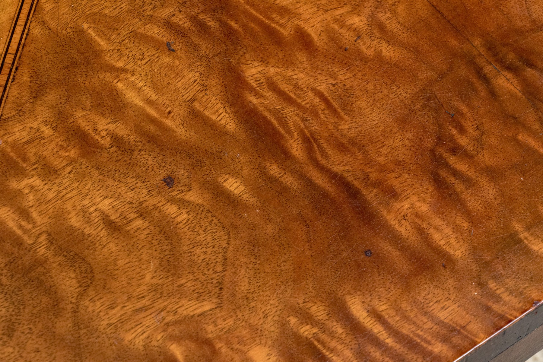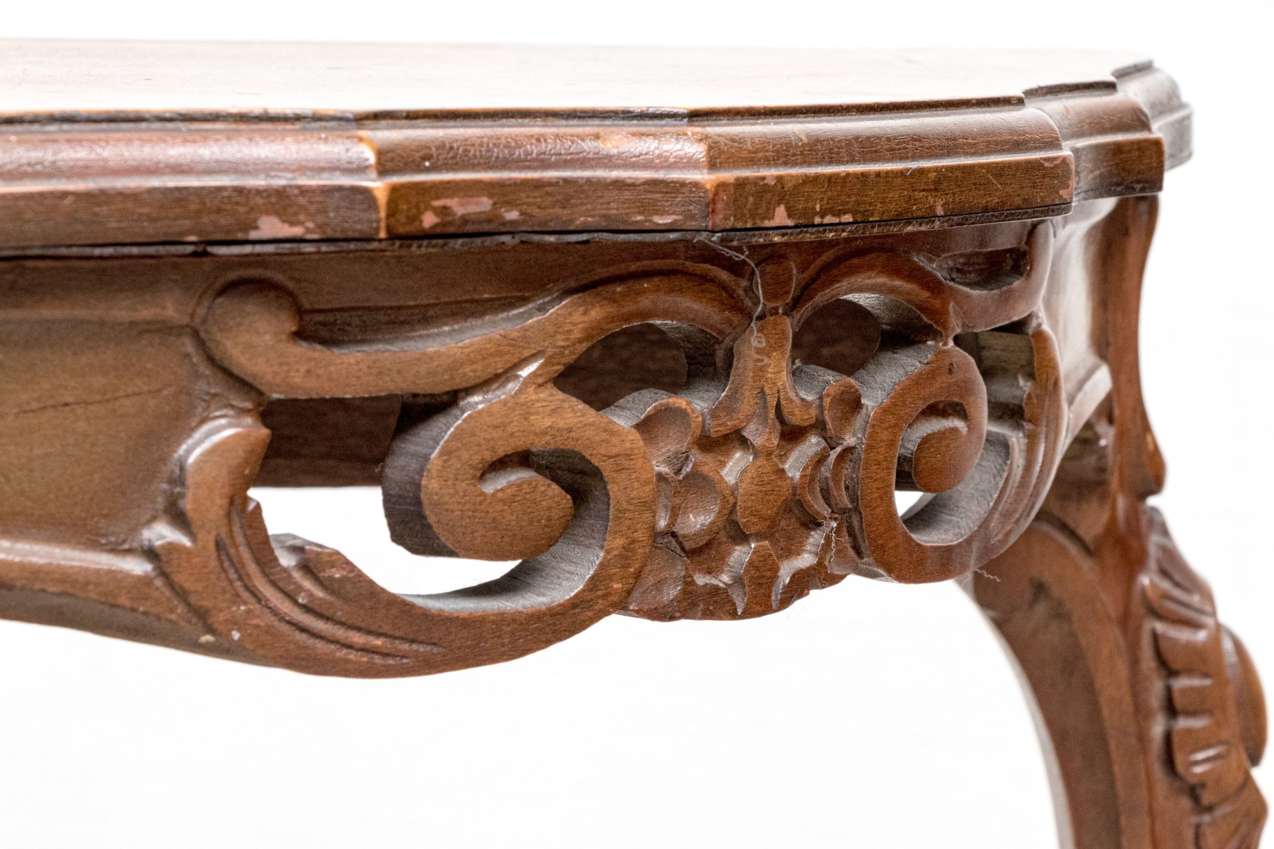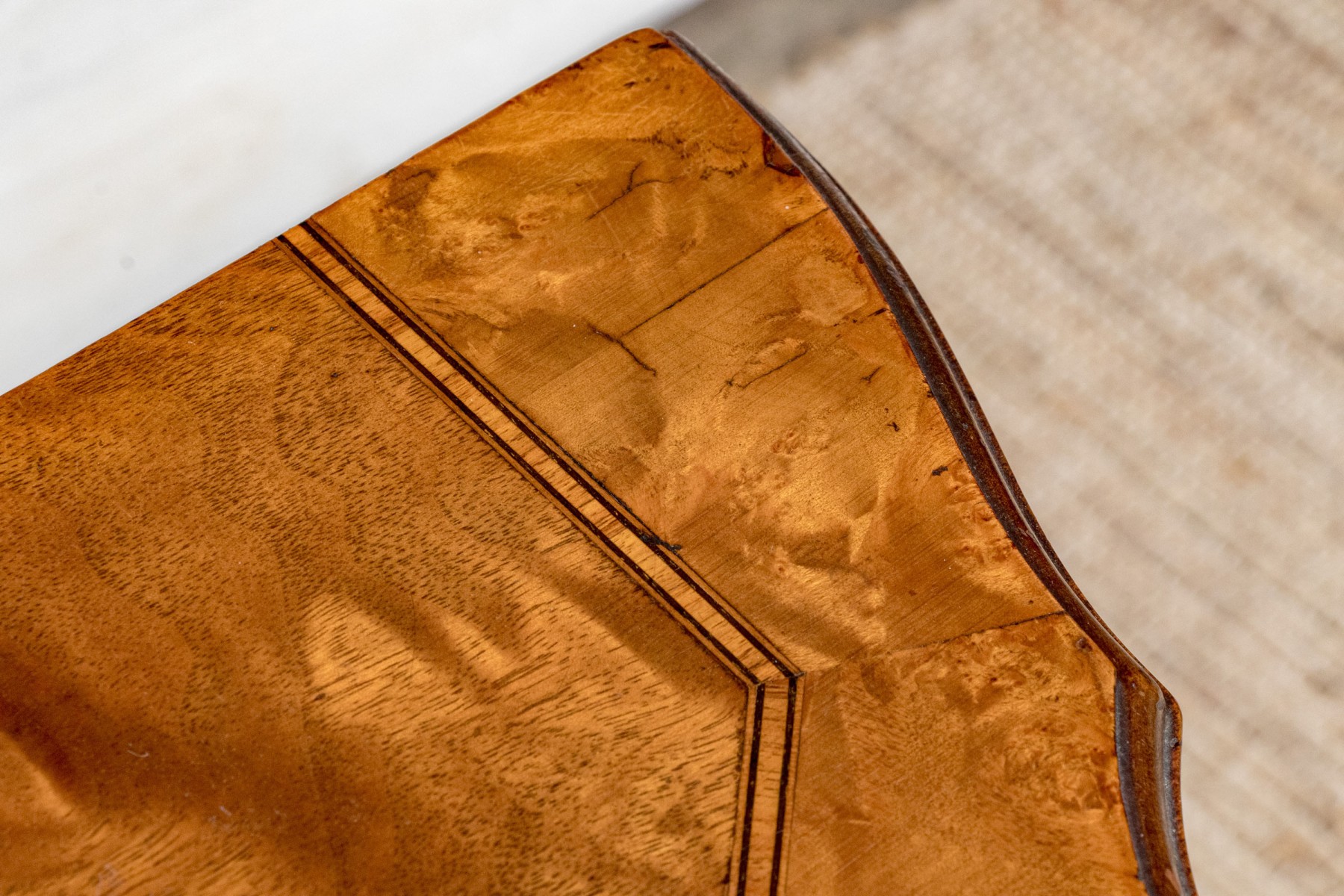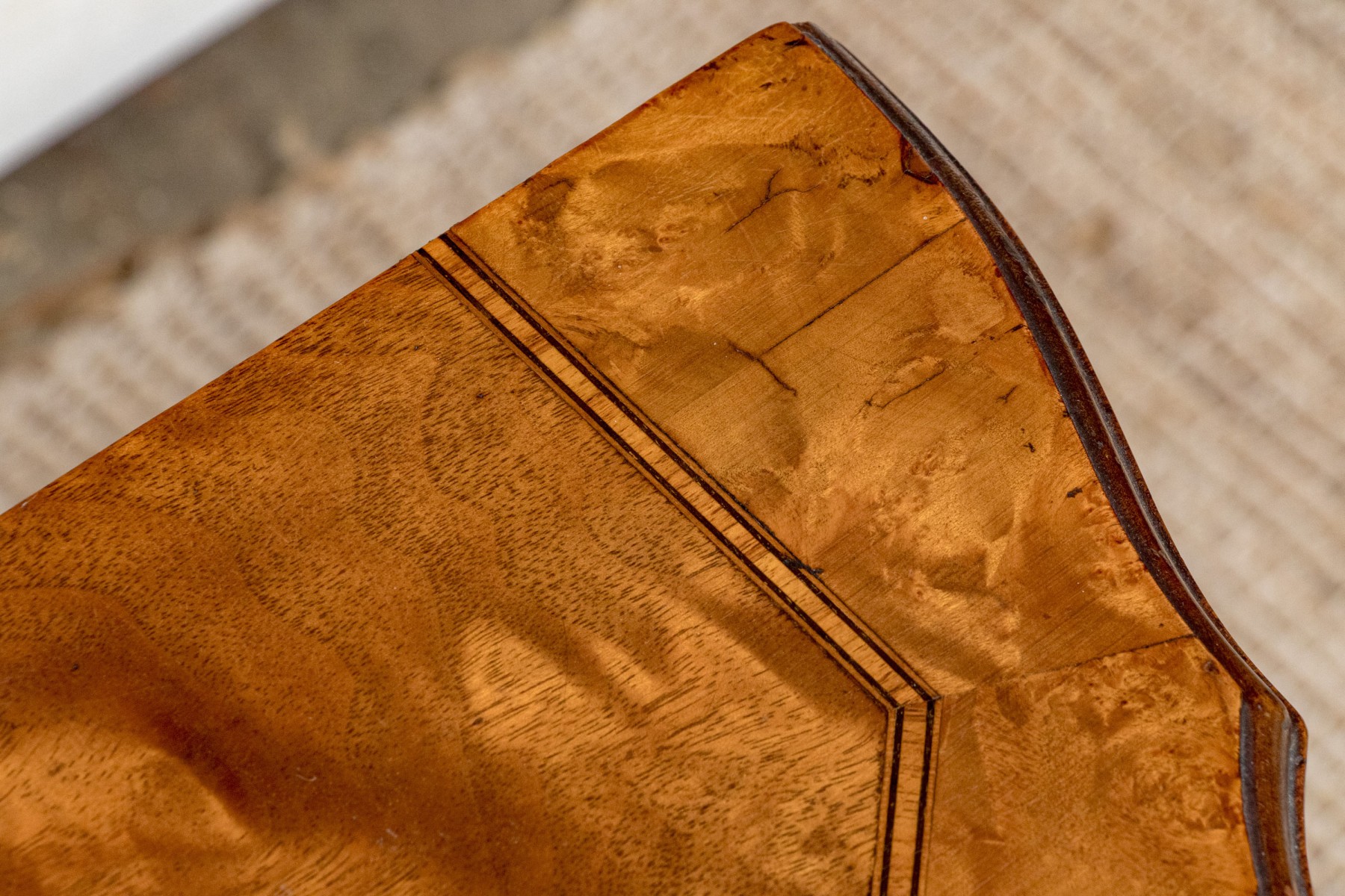 Carved walnut with satinwood inlay and hand carved legs.