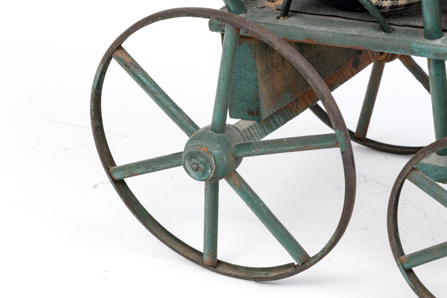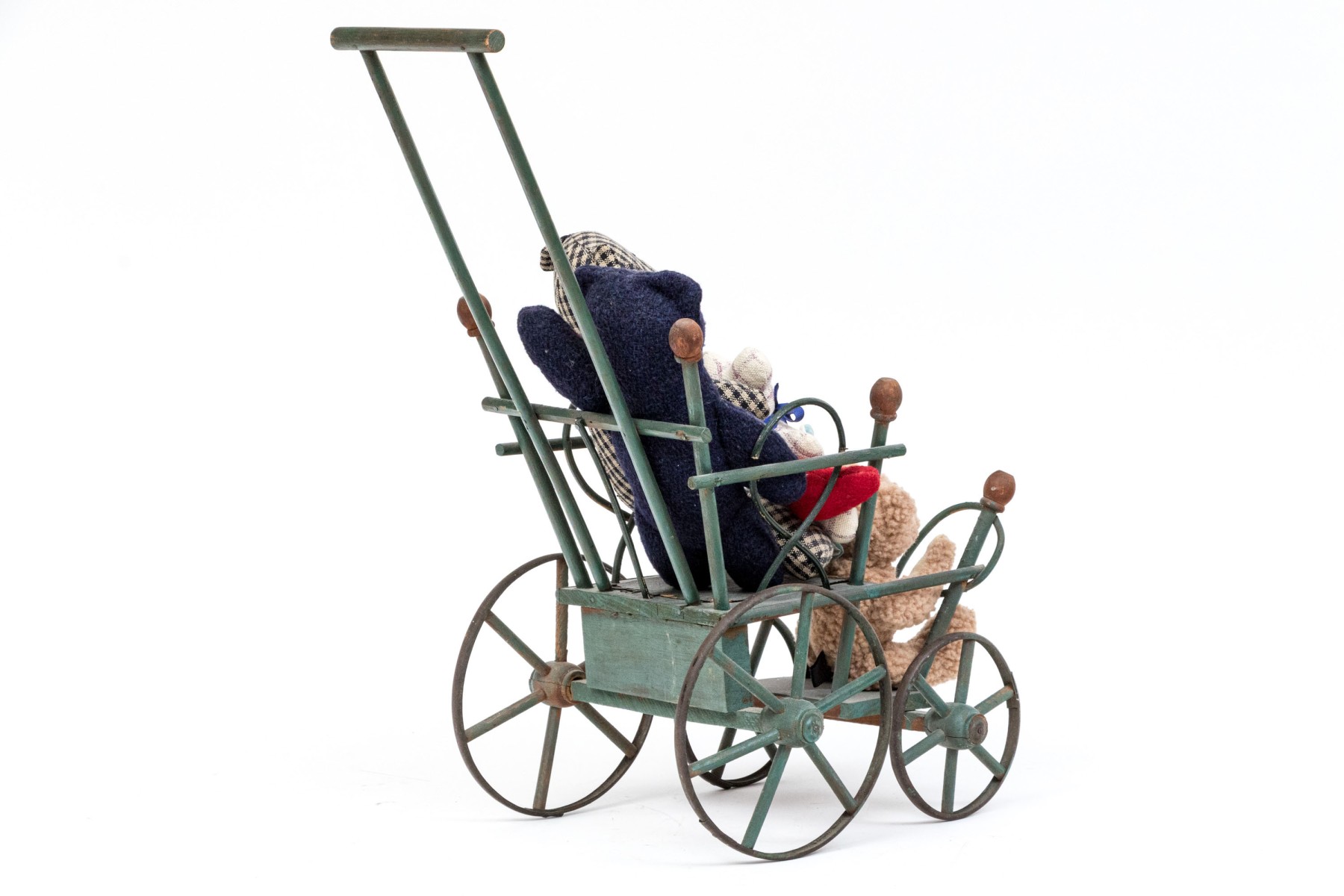 Condition: wear to the seat of the carriage, dusty, rust on the wheel rims, gently used toys, faded heart. Please review the photos as they are part of the condition report.