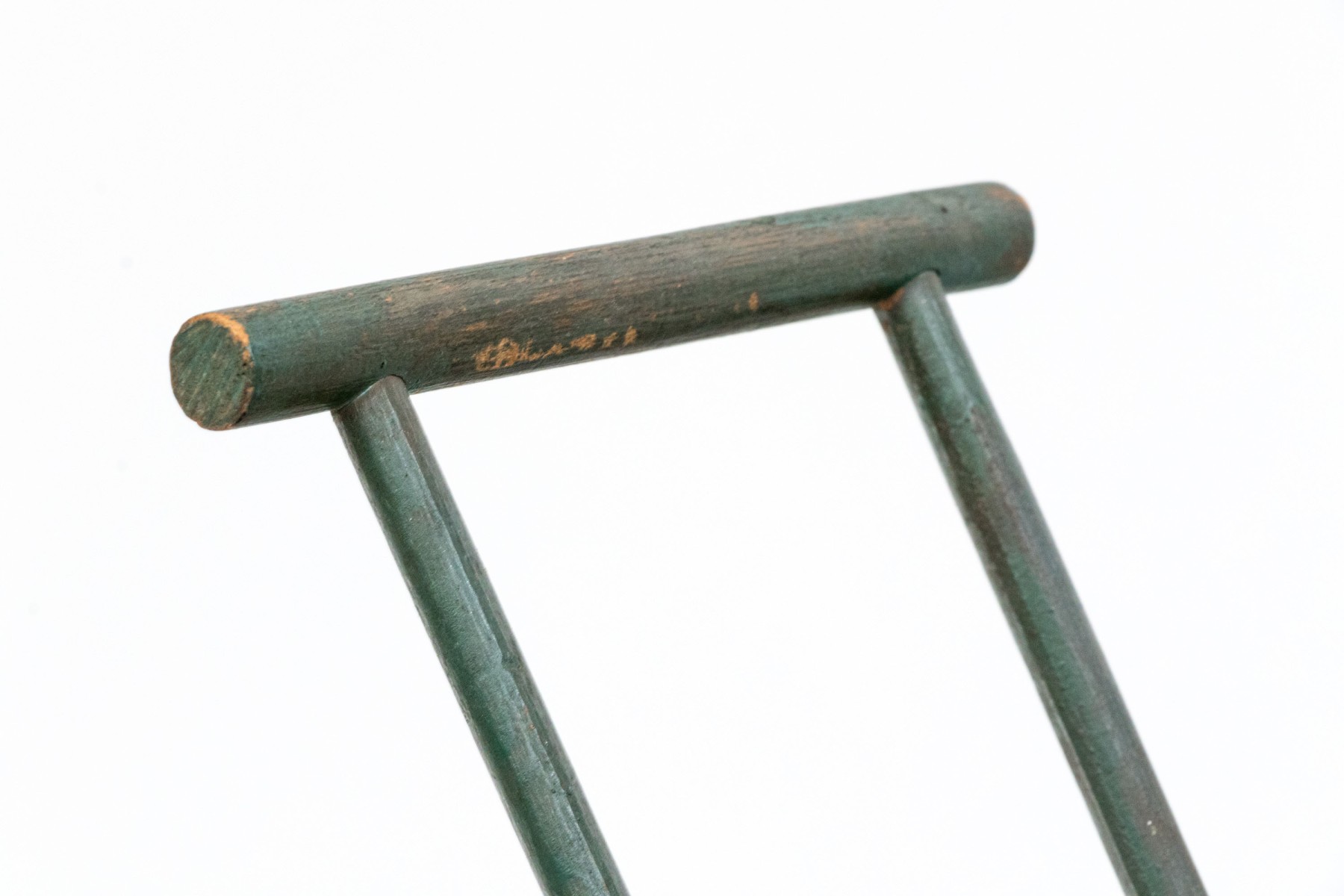 An open carriage In green painted wood with metal wheel rims.