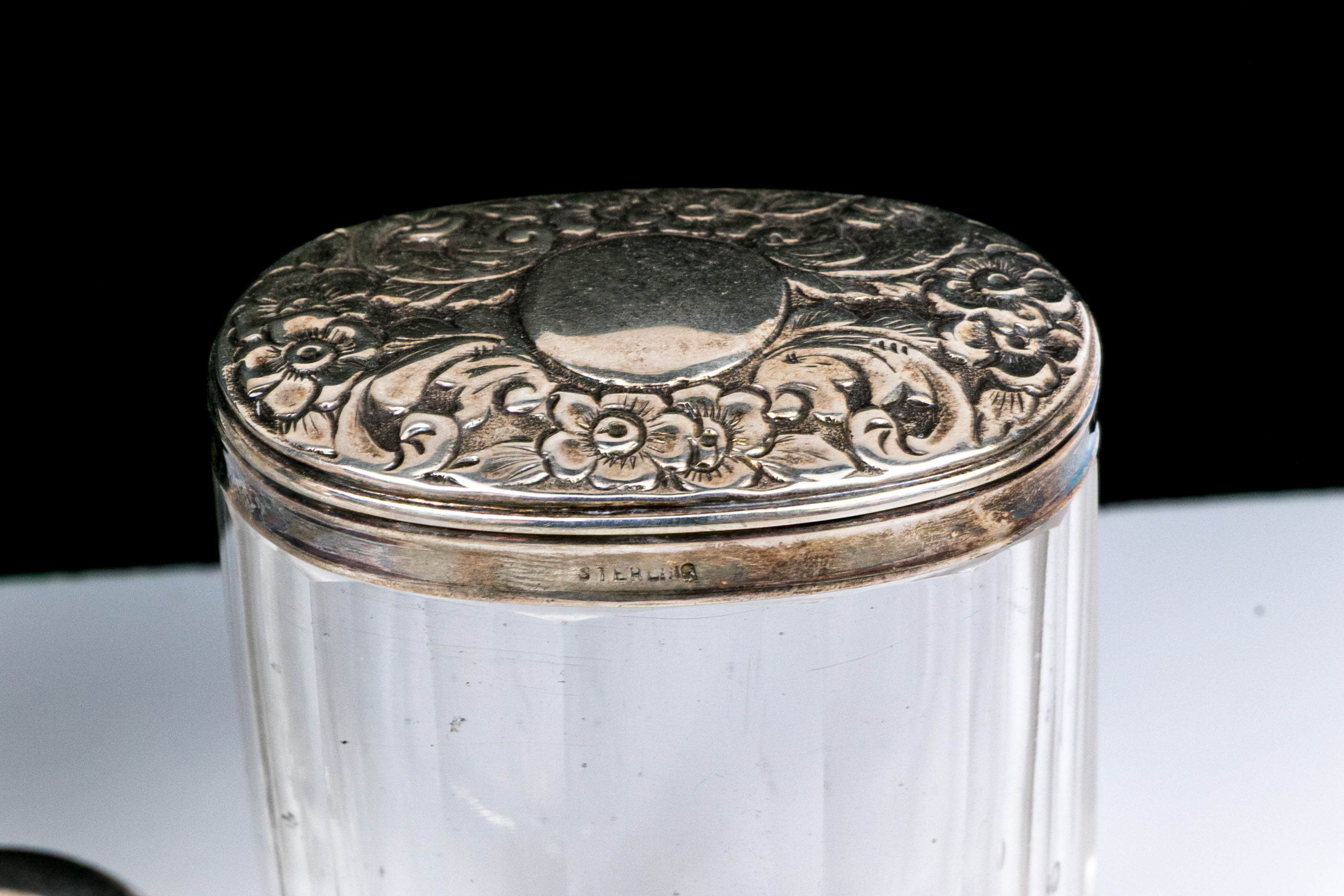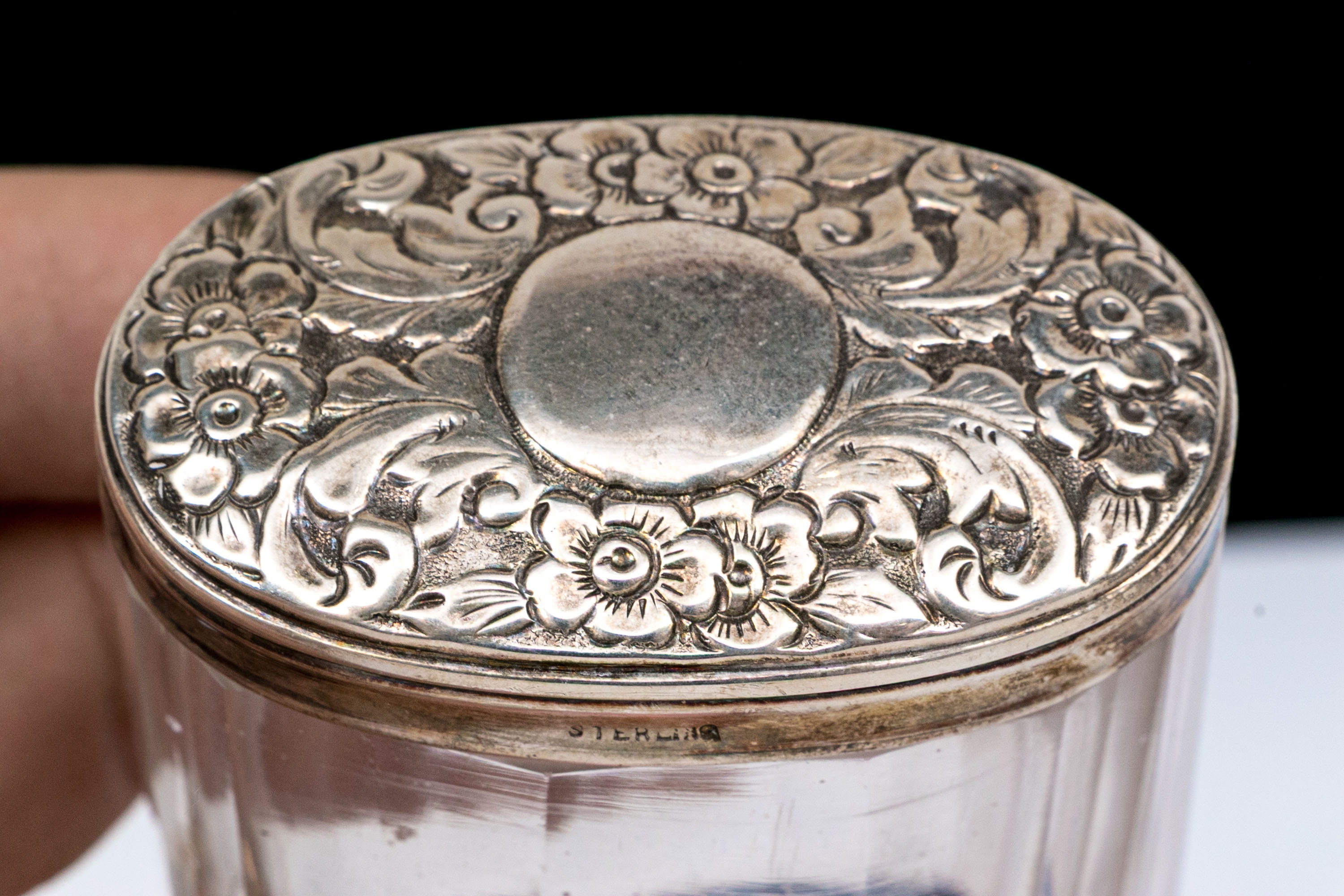 - Sterling lidded oval glass box