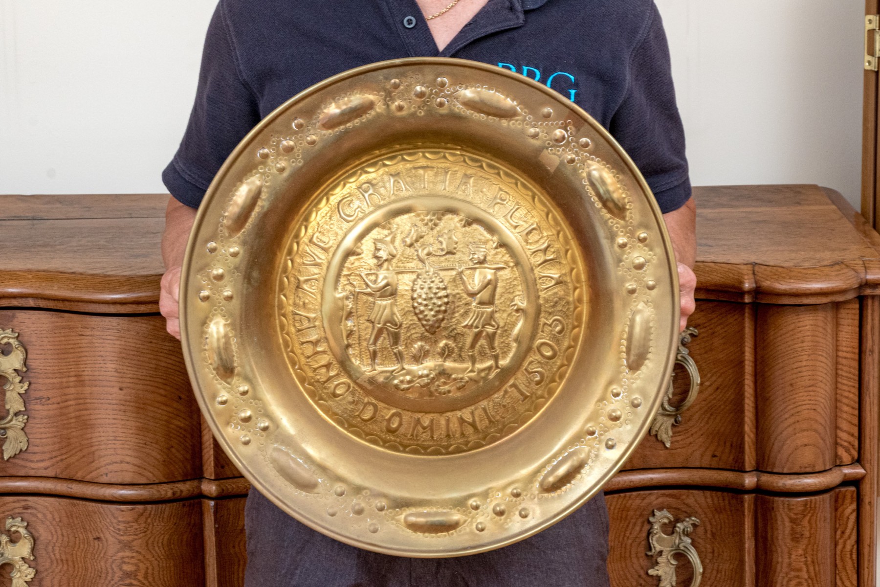 Antique Continental Brass Repose Alms Charger #330509. Black Rock Galleries provides high end estate liquidation services through online estate auctions and a 50,000 sq ft designer showroom. estate liquidator, estate sale, online auction, antiques, fine art, liquidation, clean outs, auction, consignment, interior design, fine jewelry, collectibles, appraisals, estate appraisals, estate services, decor, furniture, furniture consignment, antique center, consignment shop. We offer appraisal services and specialize in fine art, jewelry, antiques and decorative arts. Sell with us. Black Rock Galleries is the tri-state's largest estate liquidator serving New England and the greater New York City area. We are the trusted source for expert appraisals, auction services, estate sales, and consignments. Black Rock Galleries is the east coast's largest and most trusted estate liquidator, with locations in Connecticut, greater Boston, MA and Raleigh, NC, Fairfield, Southport, Apex, TX. We are the best source for expert appraisals, auction services, estate sales and consignments. We have served thousands of families and estates with compassion, professionalism and expertise. BRG works with attorneys, executors, realtors and families to bring the greatest return on personal and estate property in the current market. Our unique combination of services make us the easy choice to get the job done in a timely and stress-free manner. We are with you from the initial consultation to the final clean out. Our house-built online auction software platform offers clients a dynamic approach to liquidating their personal property. This venue is most successful in bringing the best return with the least amount of disruption for our clients. See our services page for a complete description of this offering. Antique Continental Brass Repose Alms Charger #330509