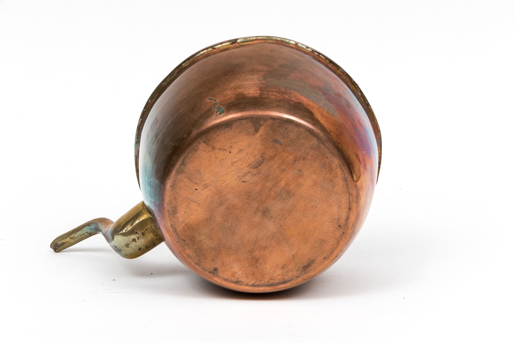 Condition: expected tarnish, worn inside, some spots losses to the outside finish and on the spout, traces of tin along the center band. Please review the photos as they are part of the condition report.