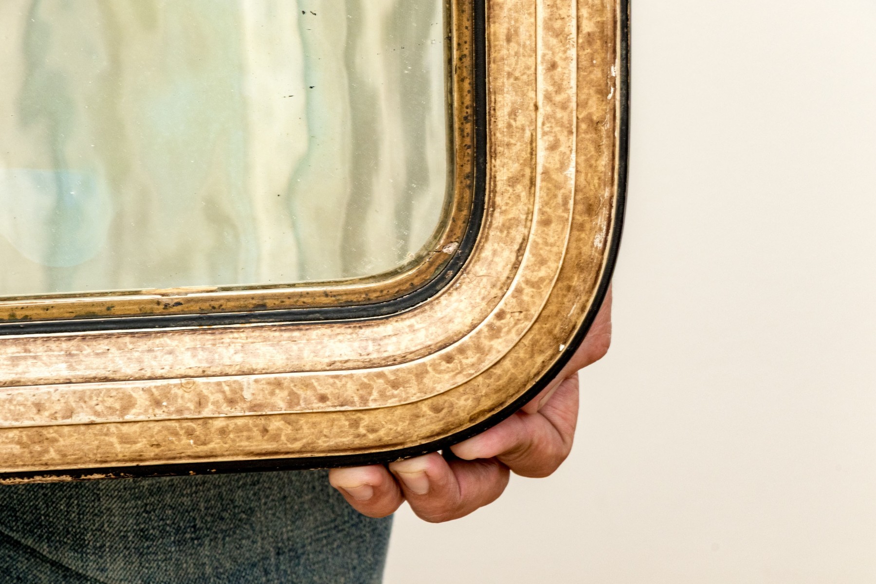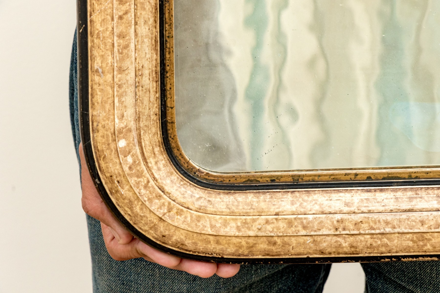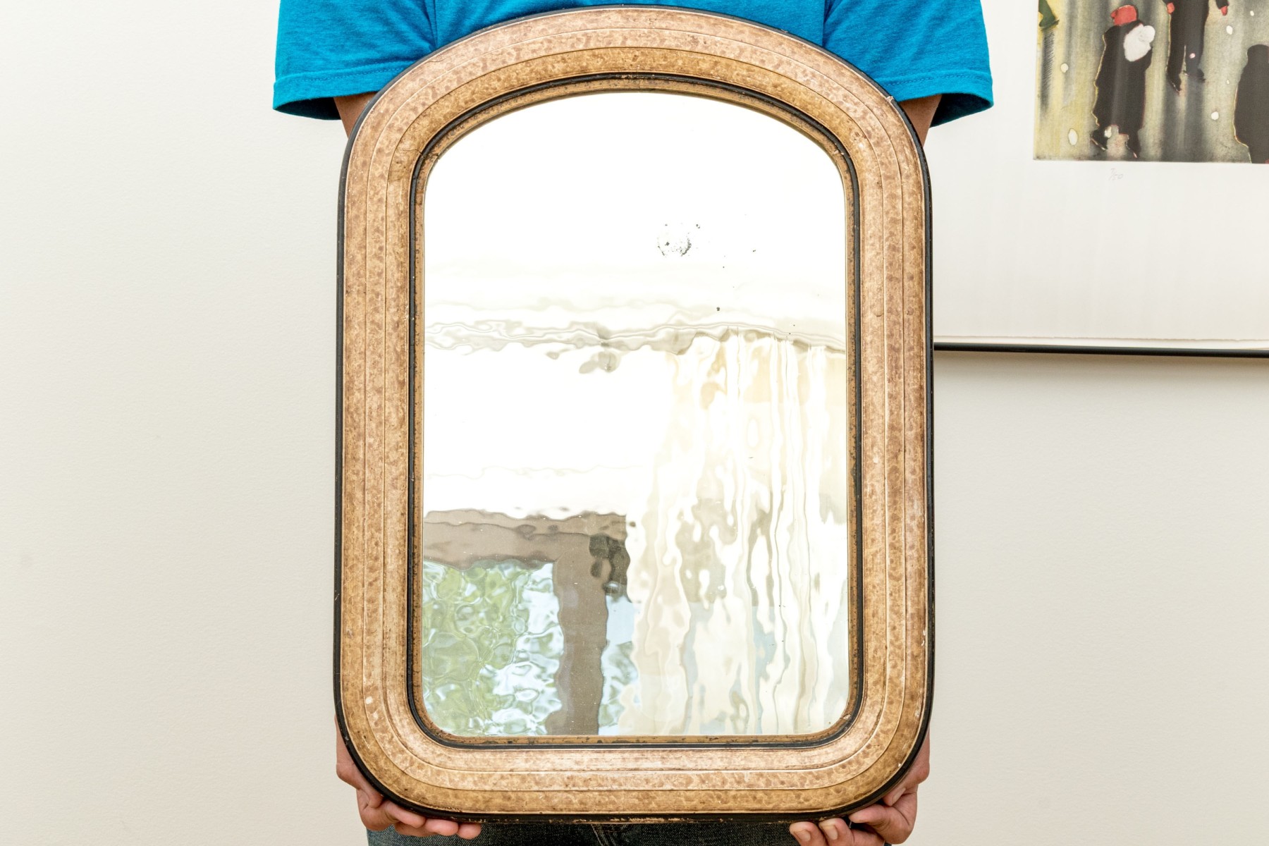 With some desilvering to the mirror and finish wear to the frame commensurate with age and display. The frame is a bit loose and could benefit from additional support.