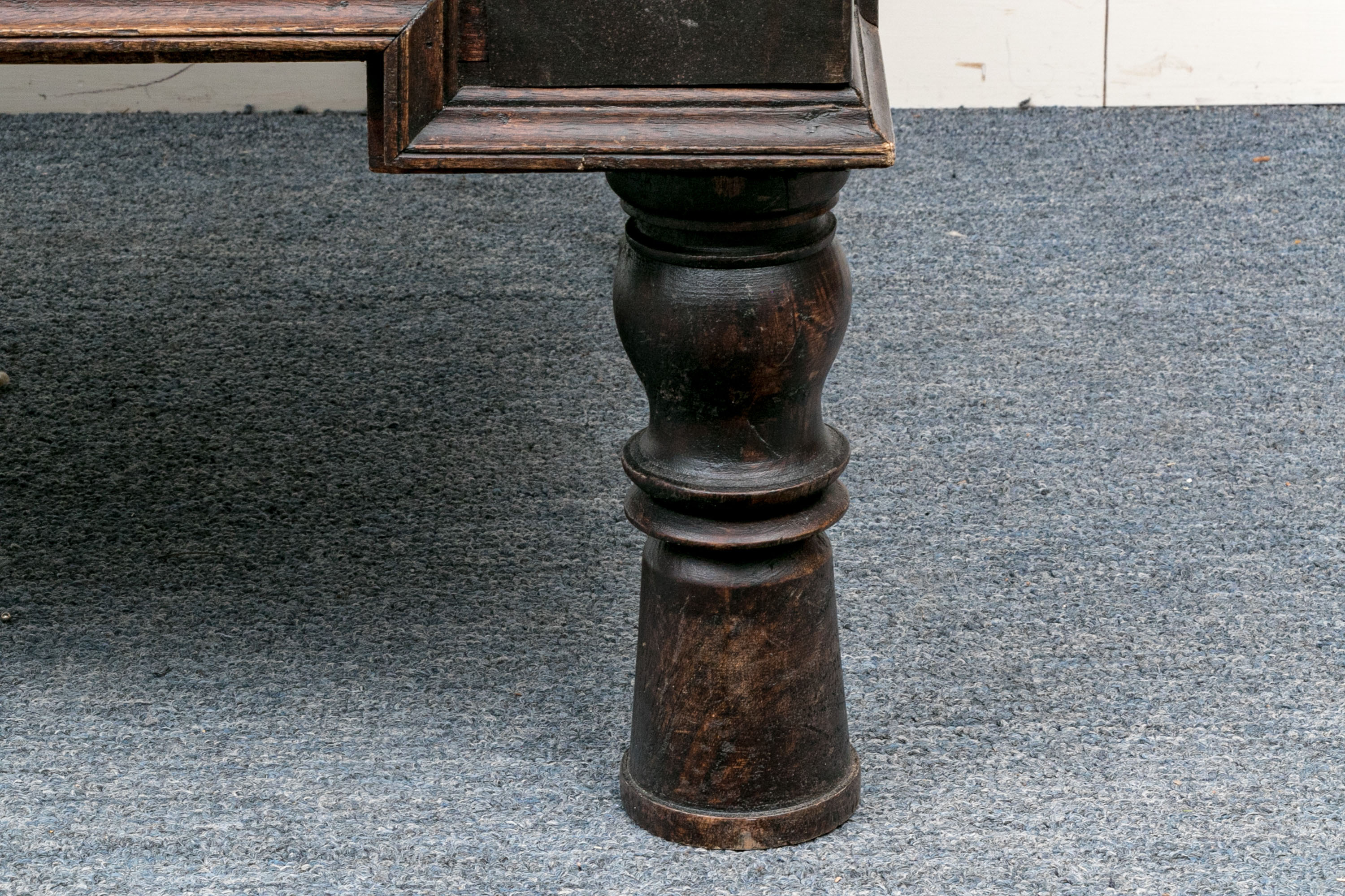 Condition: Both the table frame and inset door have wear including fractures and wear with surface scuffs commensurate with age and usage. Despite wear the table presents very handsomely overall. See lot images for further visual inspection as they are considered part of the lot condition report.