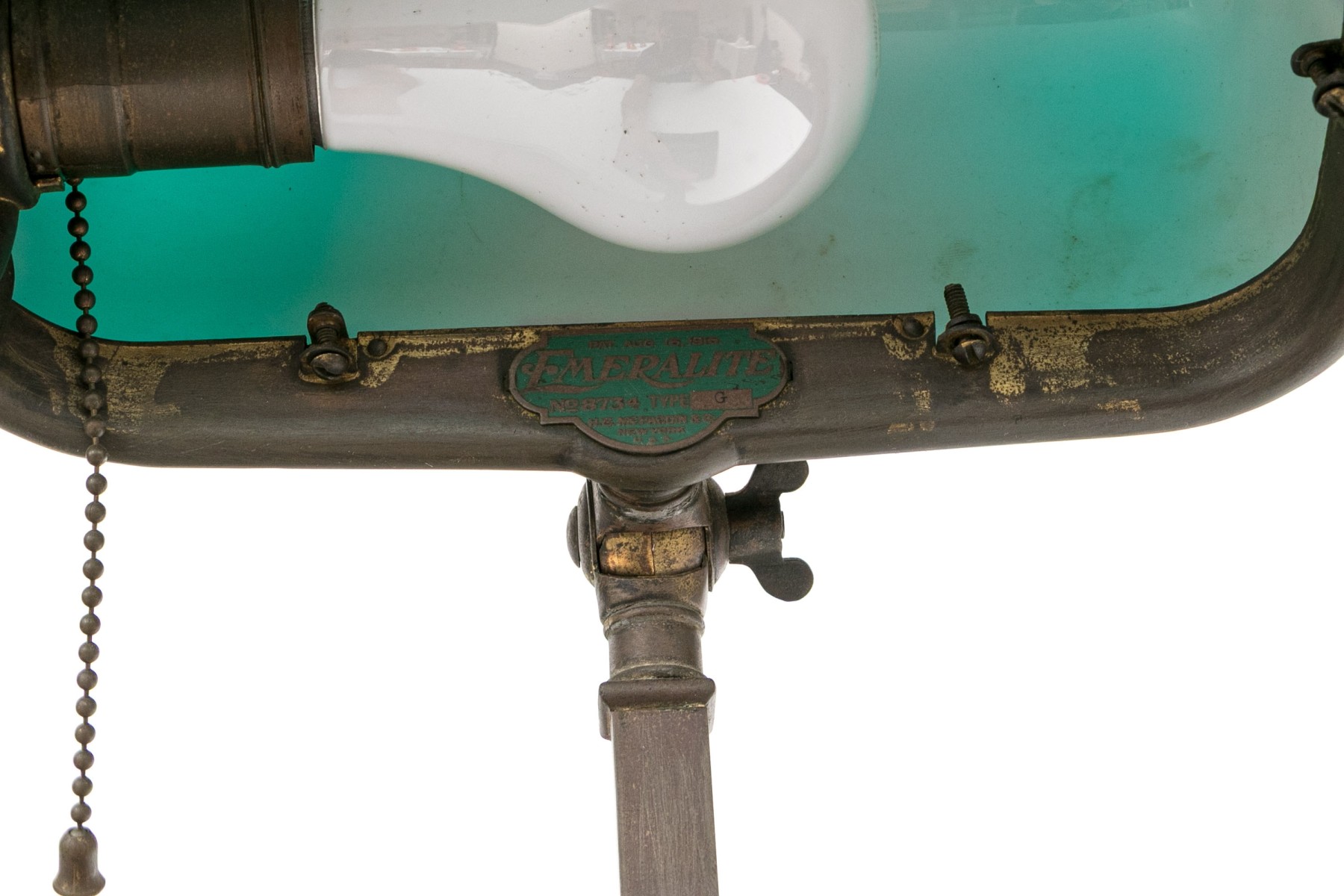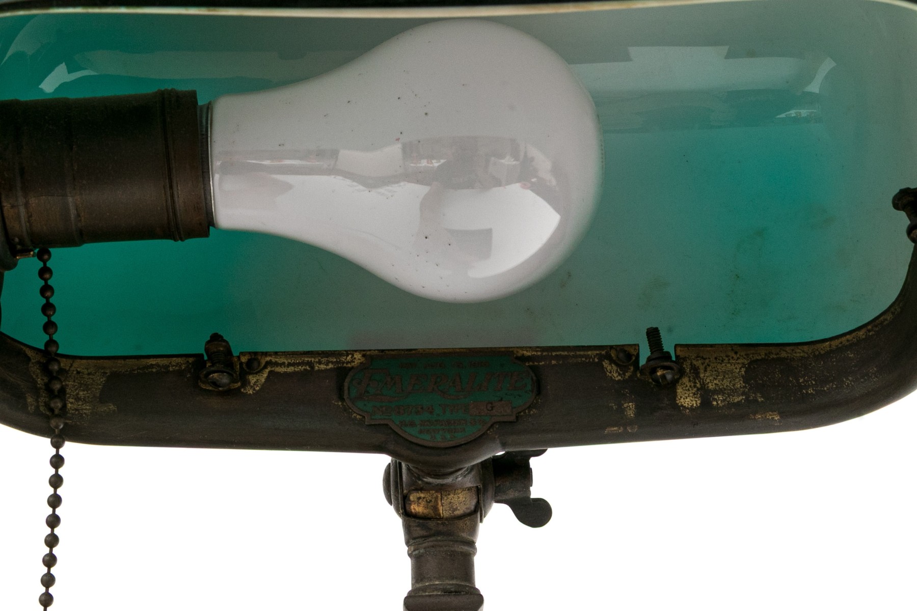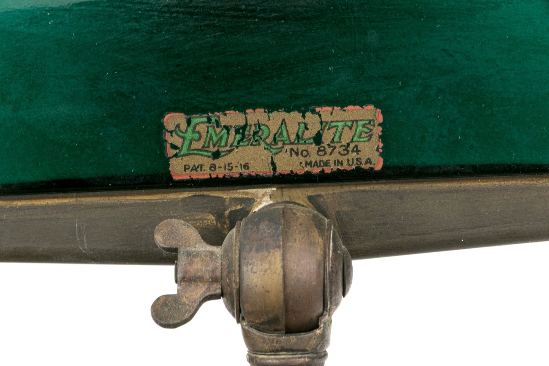 Heavy wear to the finish on brass with tape scuff marks to green shade but presents well.