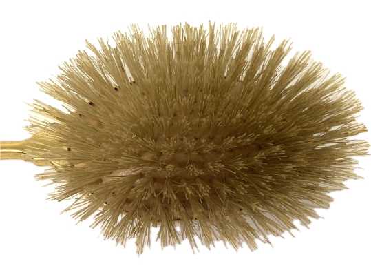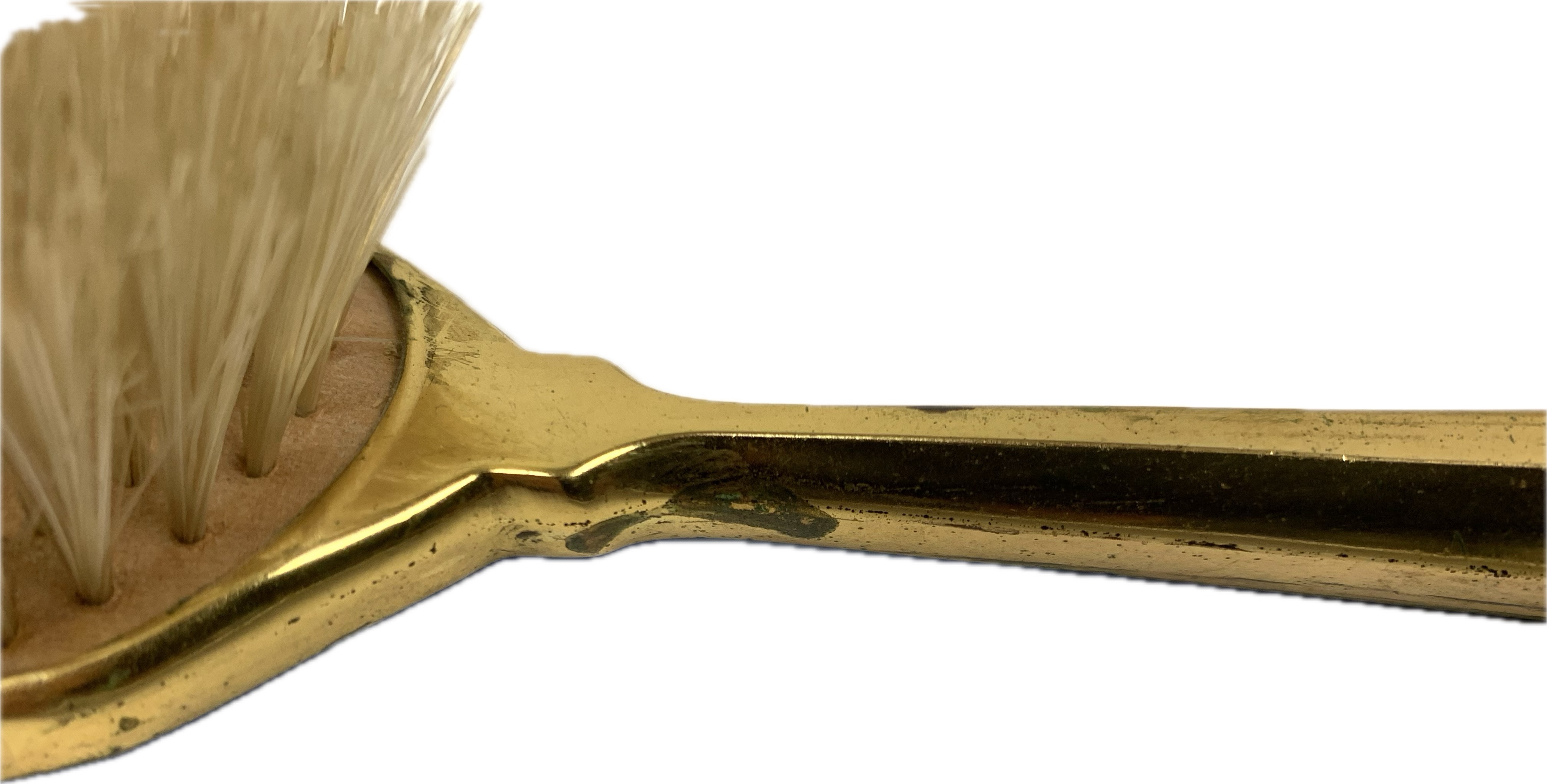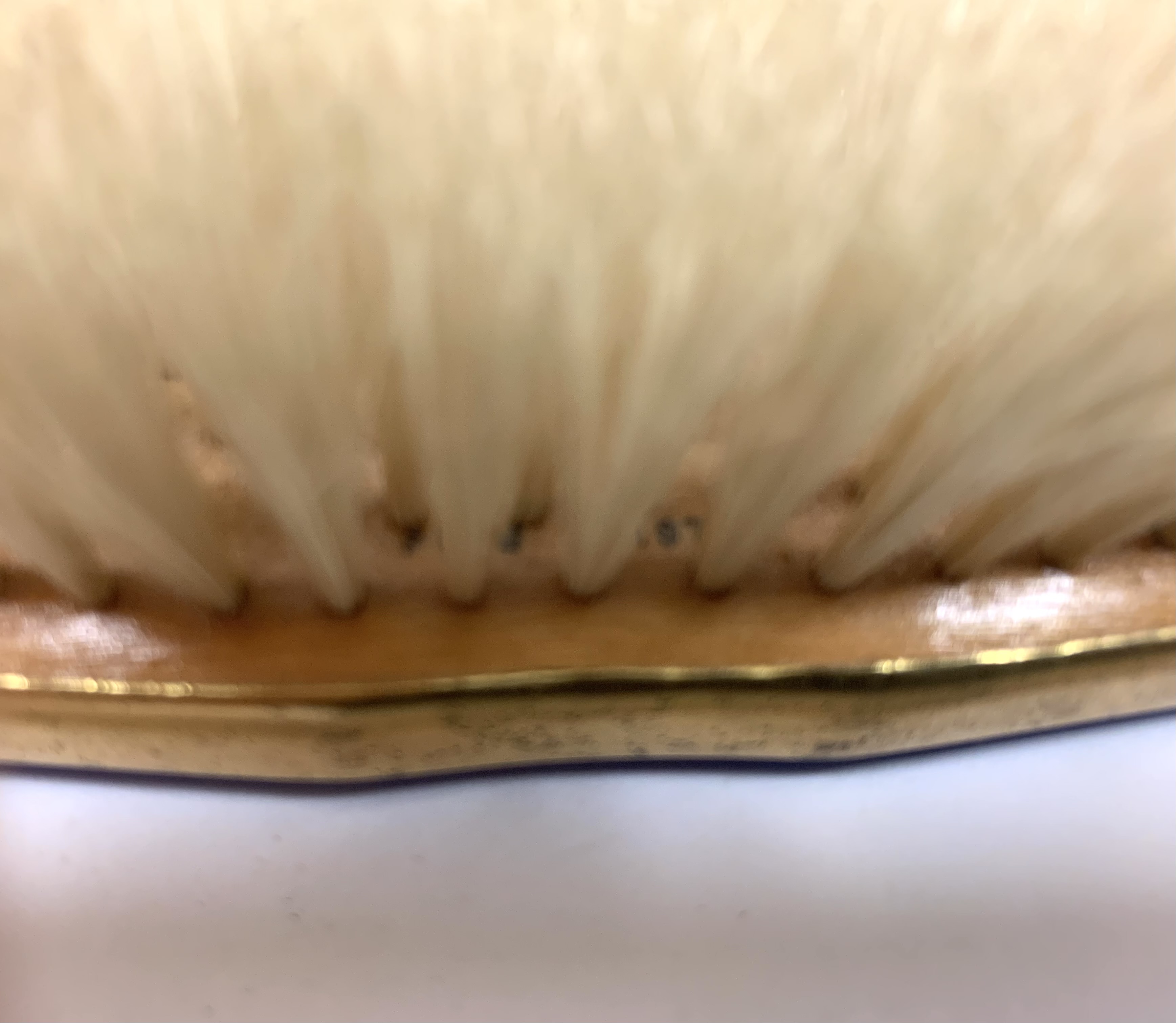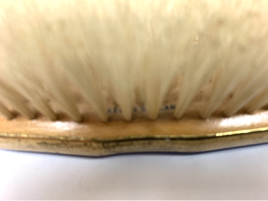 Hairbrush - 9 1/4" L x 3" W (light wear/discoloration to metal) (Marked made in England, Pure Bristle)