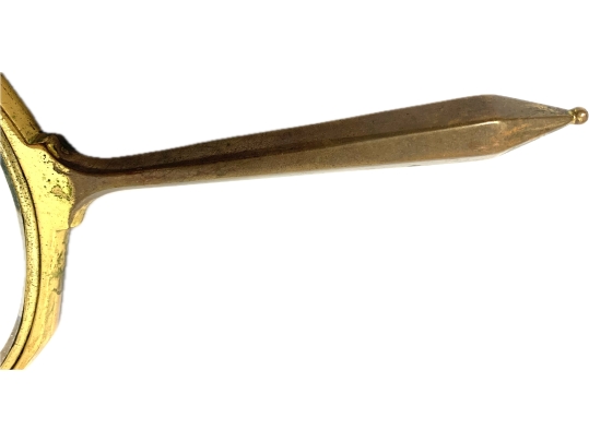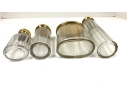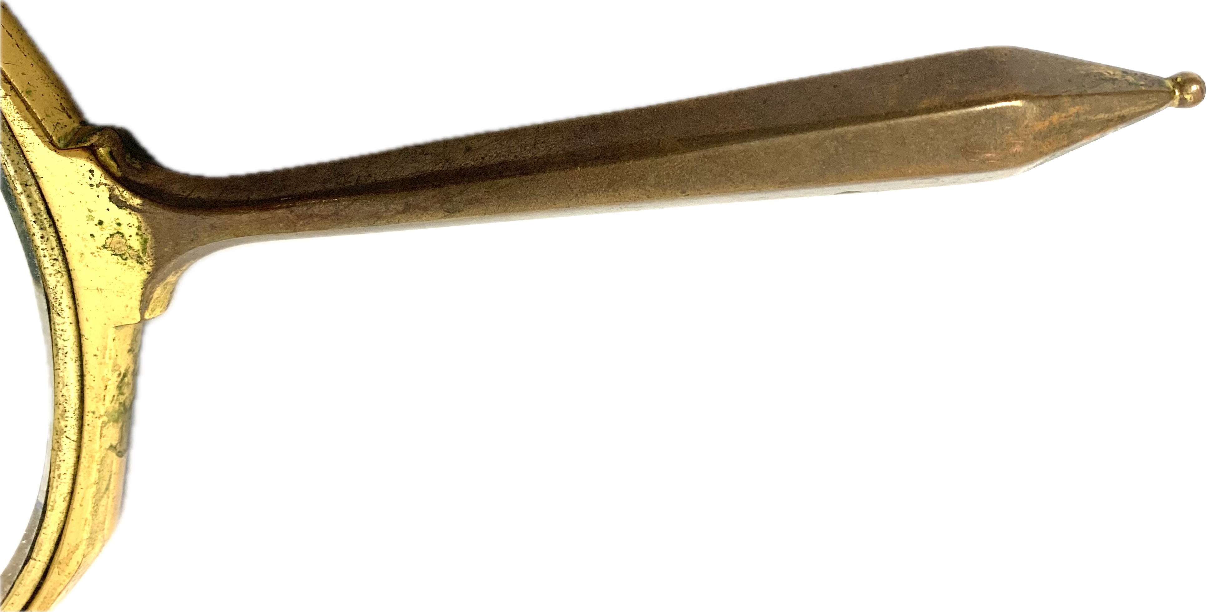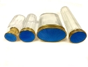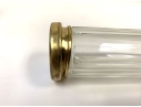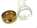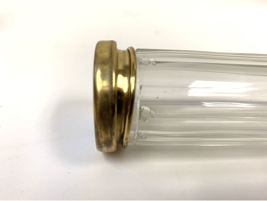Round fluted bottle with pull off lid - 1 1/2" x 3 3/4" H (light wear and verdigris deposit to metal), no chips