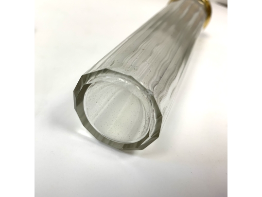 Tall fluted bottle, 6 3/4" H x 1 1/2" W (minor chips to rim, top is stuck on and unable to open)