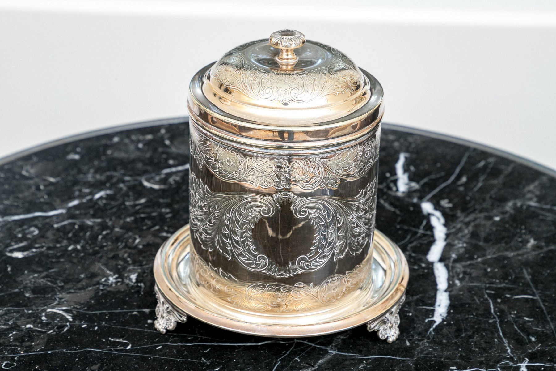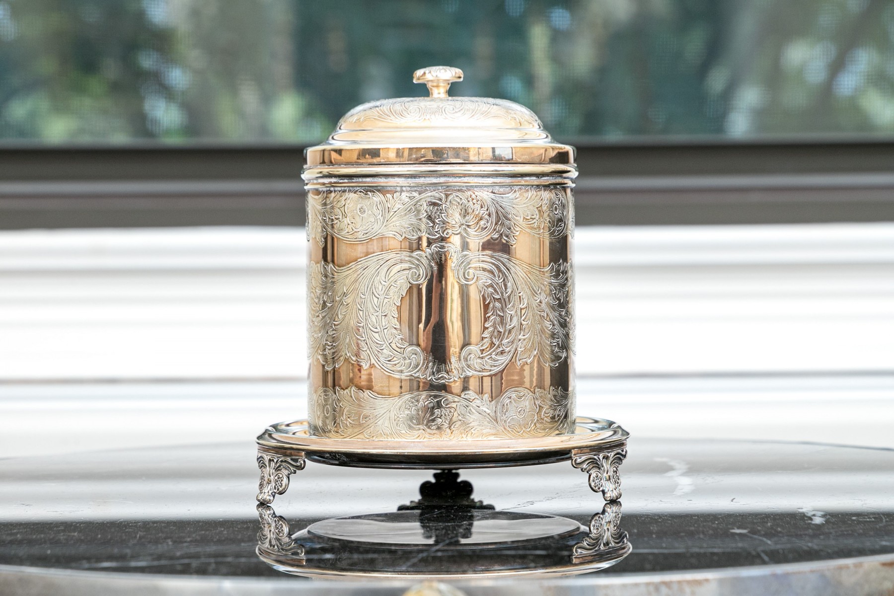 Antique English Silver Plated Biscuit Jar #261916. Black Rock Galleries provides high end estate liquidation services through online estate auctions and a 50,000 sq ft designer showroom. estate liquidator, estate sale, online auction, antiques, fine art, liquidation, clean outs, auction, consignment, interior design, fine jewelry, collectibles, appraisals, estate appraisals, estate services, decor, furniture, furniture consignment, antique center, consignment shop. We offer appraisal services and specialize in fine art, jewelry, antiques and decorative arts. Sell with us. Black Rock Galleries is the tri-state's largest estate liquidator serving New England and the greater New York City area. We are the trusted source for expert appraisals, auction services, estate sales, and consignments. Black Rock Galleries is the east coast's largest and most trusted estate liquidator, with locations in Connecticut, greater Boston, MA and Raleigh, NC, Fairfield, Southport, Apex, TX. We are the best source for expert appraisals, auction services, estate sales and consignments. We have served thousands of families and estates with compassion, professionalism and expertise. BRG works with attorneys, executors, realtors and families to bring the greatest return on personal and estate property in the current market. Our unique combination of services make us the easy choice to get the job done in a timely and stress-free manner. We are with you from the initial consultation to the final clean out. Our house-built online auction software platform offers clients a dynamic approach to liquidating their personal property. This venue is most successful in bringing the best return with the least amount of disruption for our clients. See our services page for a complete description of this offering. Antique English Silver Plated Biscuit Jar #261916