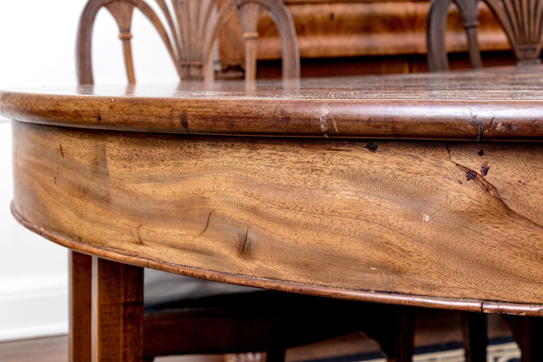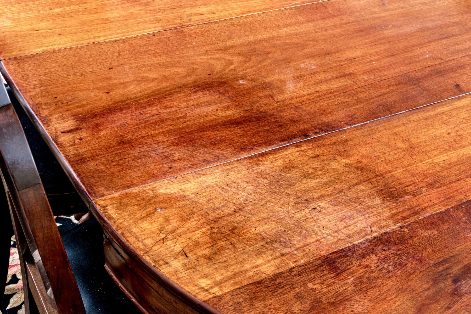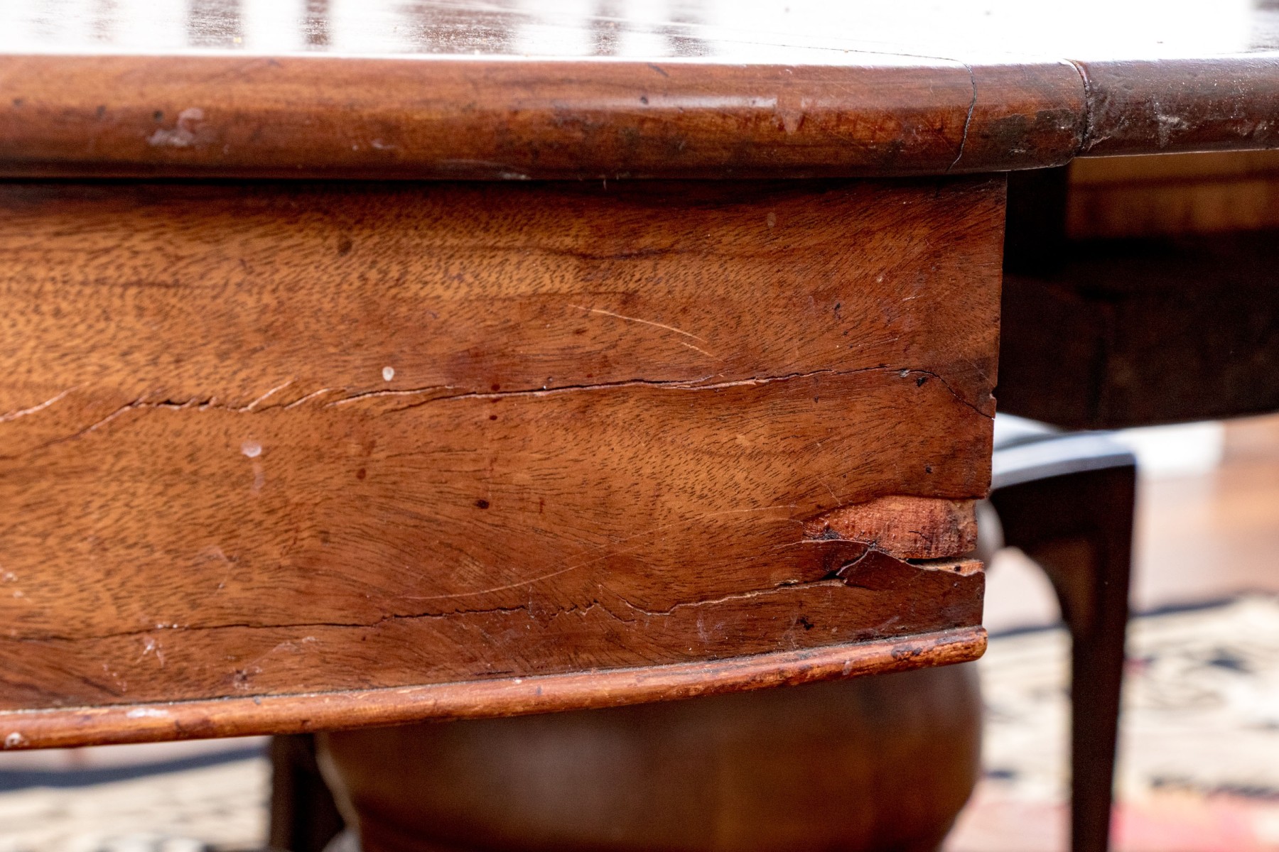 Sunned more to one side of the table. Losses to veneers and some scuffs and scratches and gentle wear.