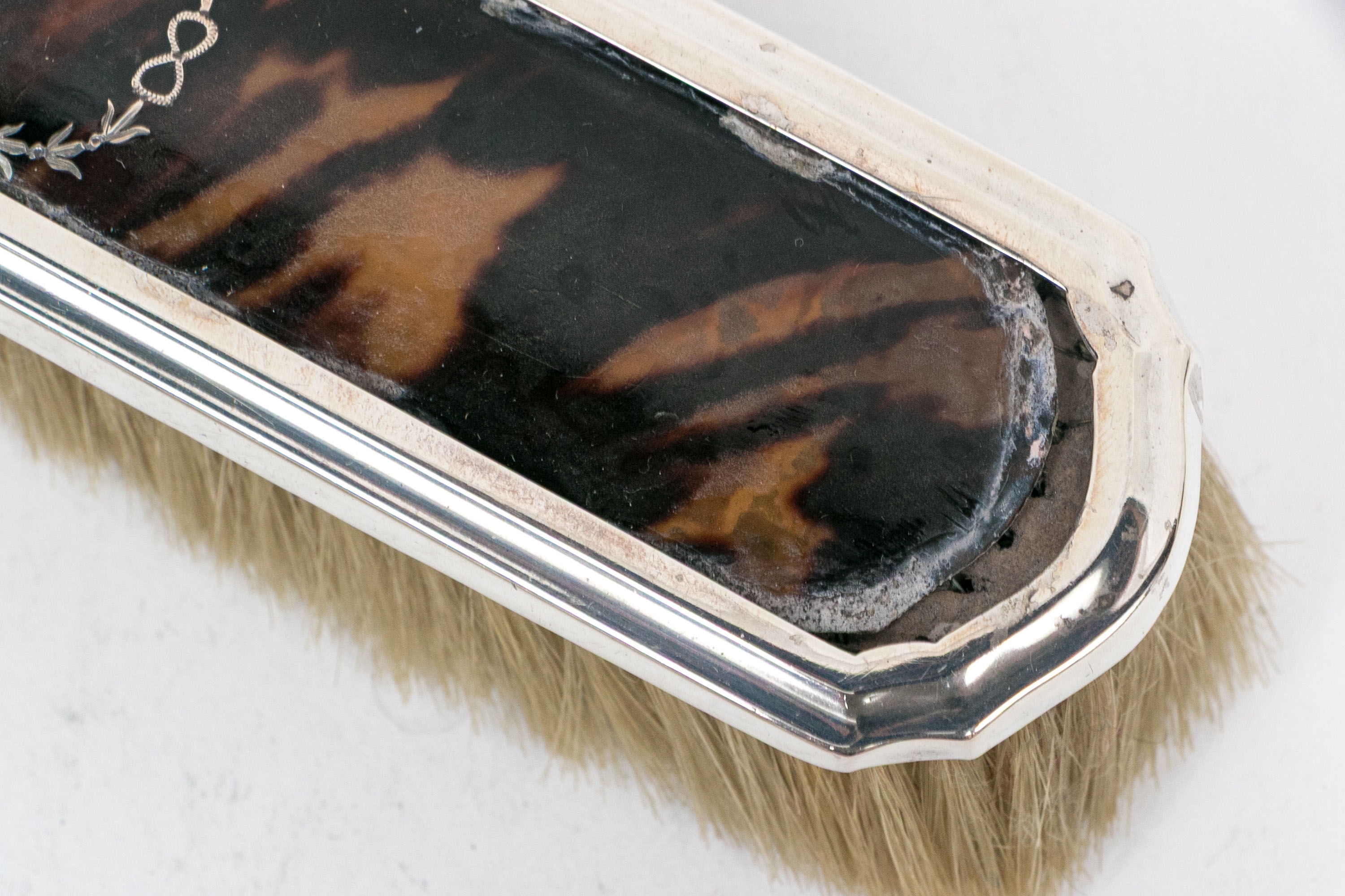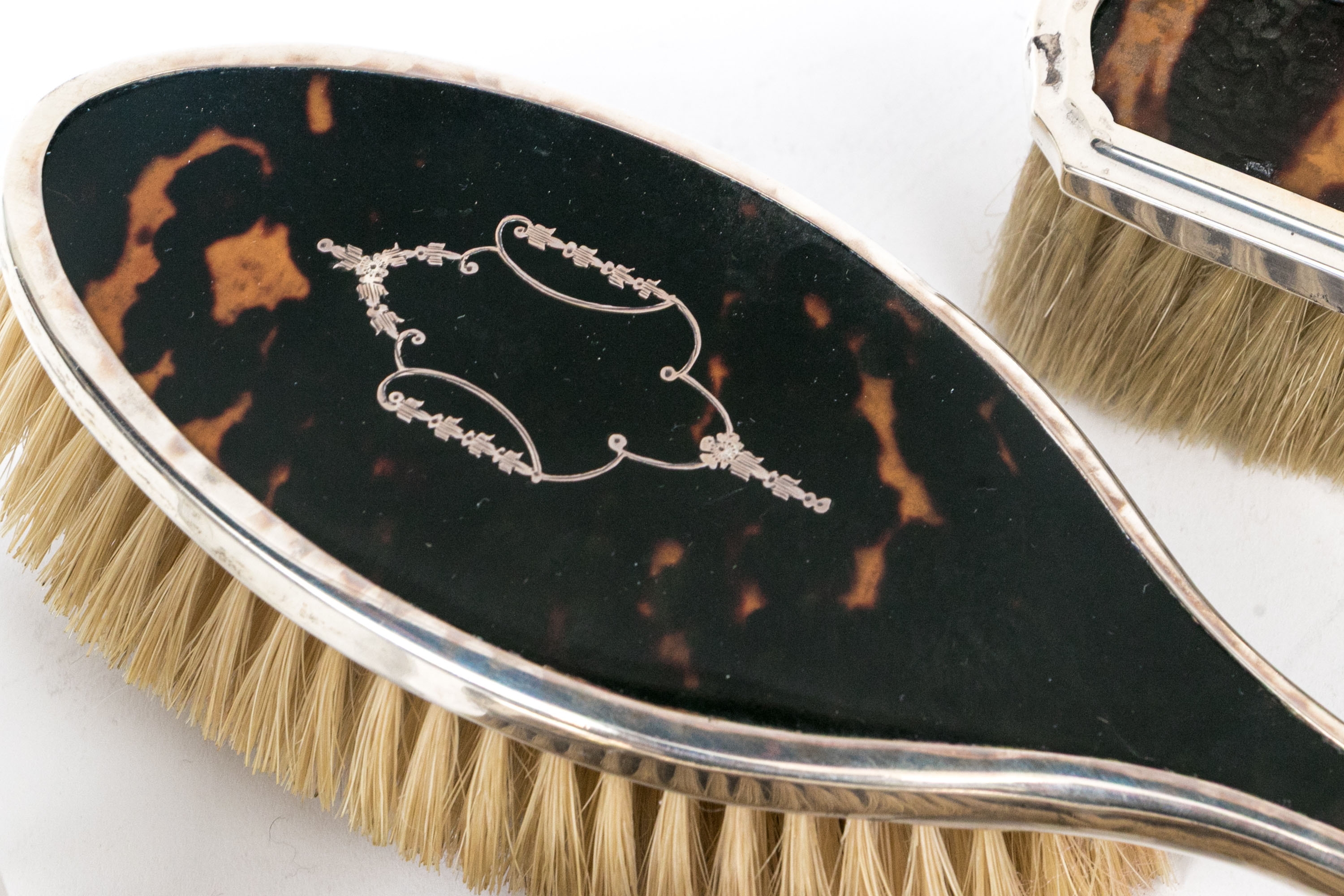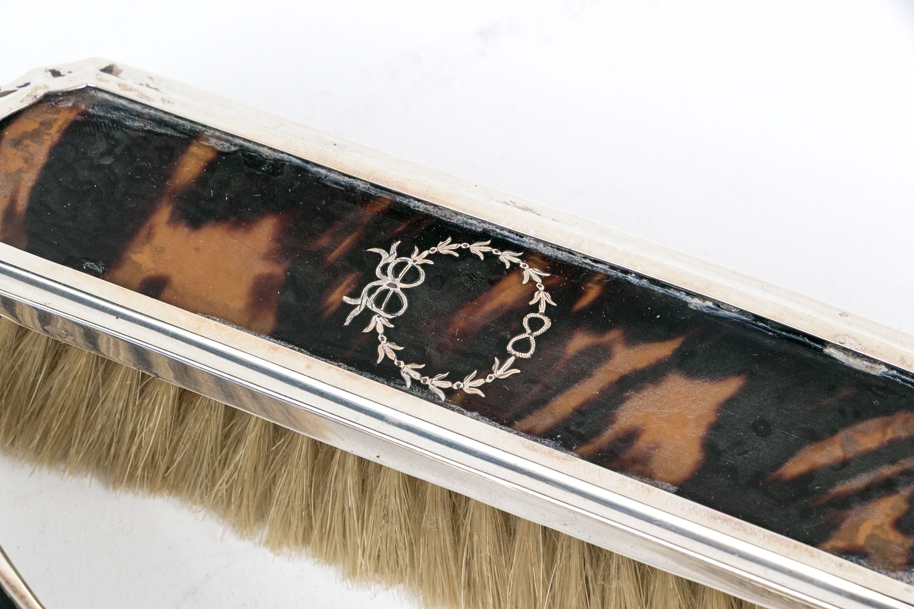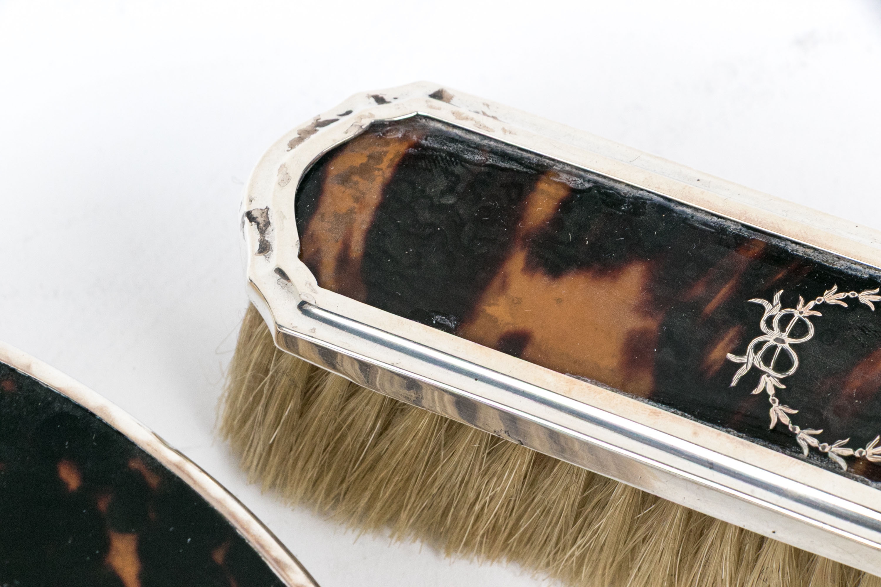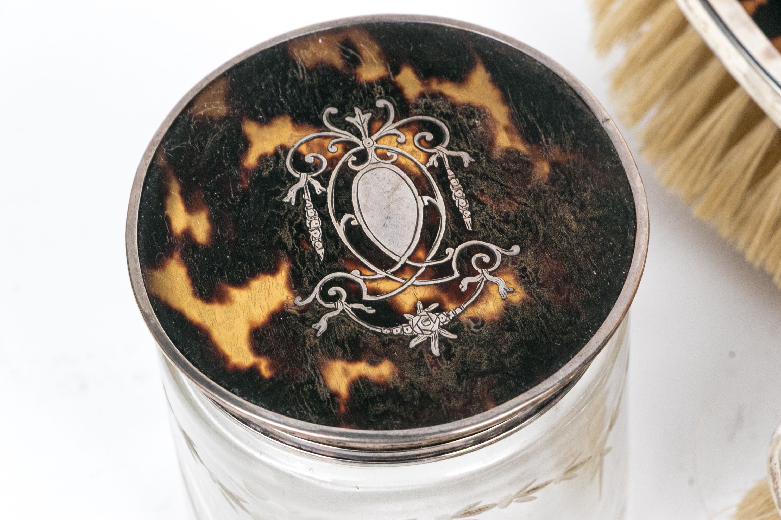 All pieces with inlaid sterling silver decorated tortoise tops and sterling frames. Including: