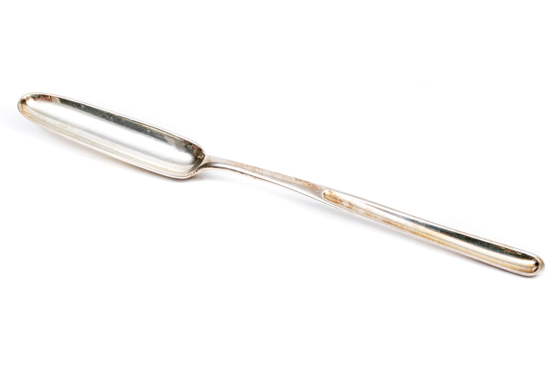 Antique English sterling silver marrow spoon, Richard Crossley, London 1805