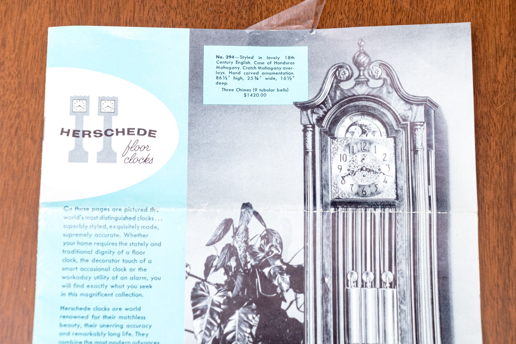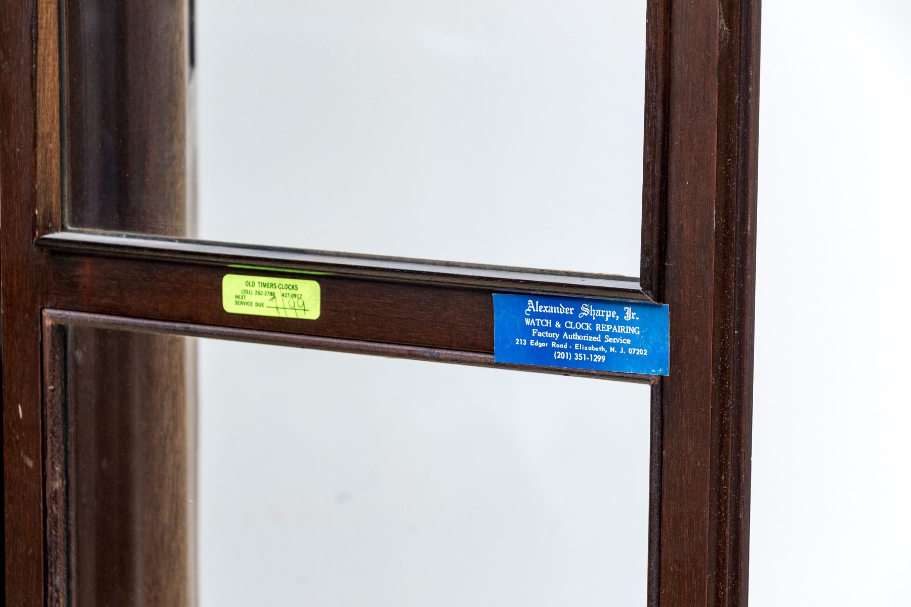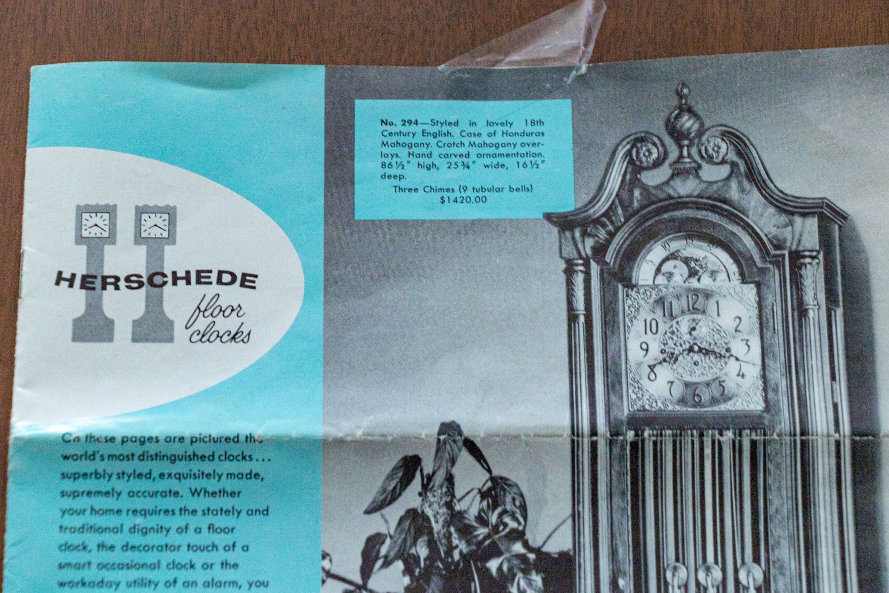 With winding key, five chimes, wight and pendulum. Key to wind and key to open glass door case.