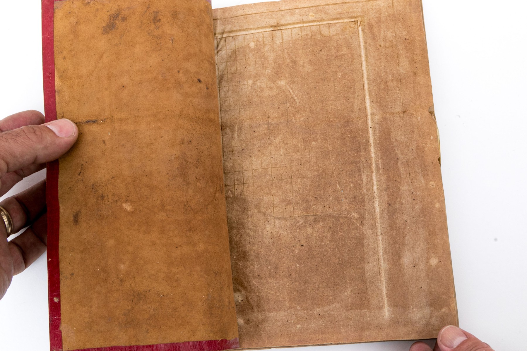 Some tears to the pages with wear to the decorative embellishment with creases and wear to the leather cover.
