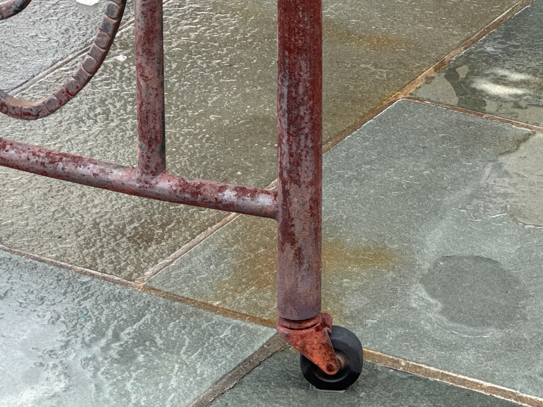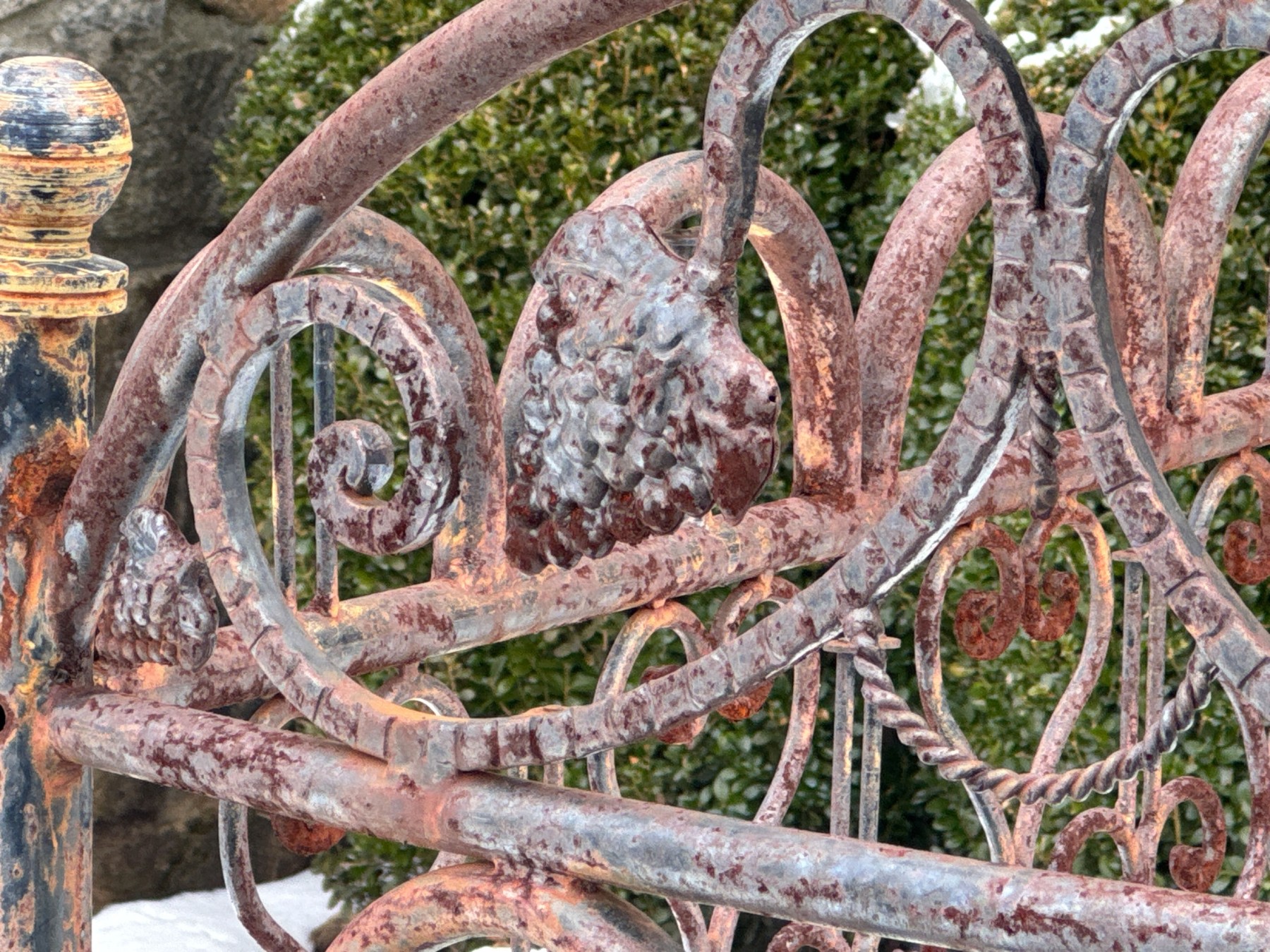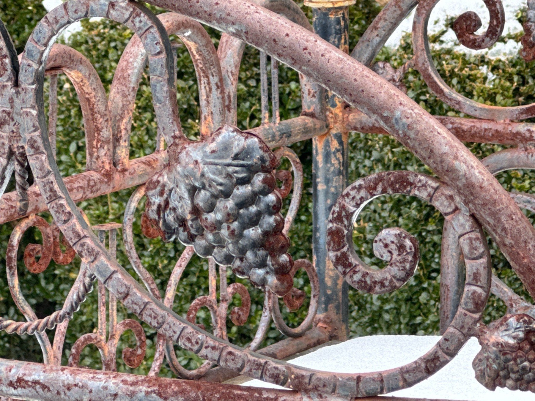 With wonderful form, each leg on caster for movement. The architectural form with scrolls and vines with grape clusters.