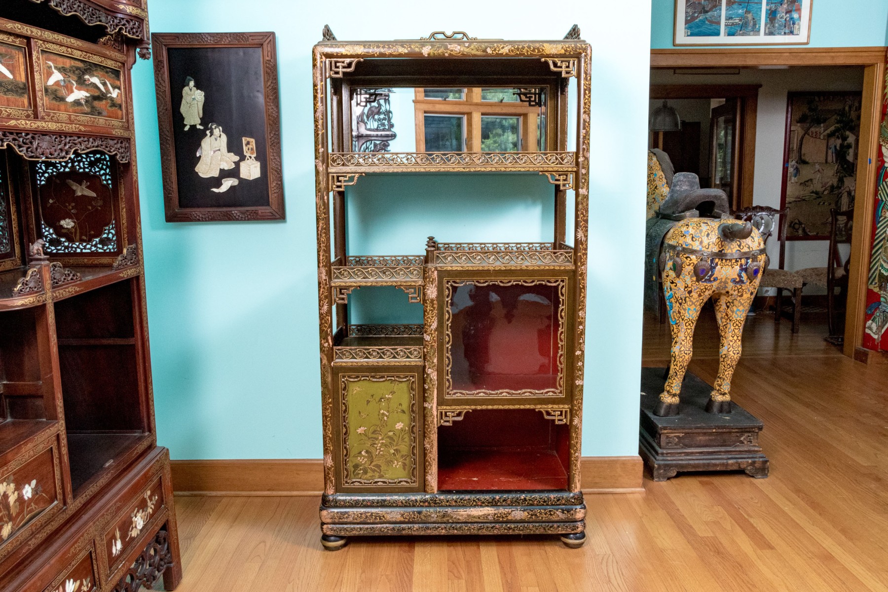 Antique Japanese Lacquered Curio Cabinet #320206. Black Rock Galleries provides high end estate liquidation services through online estate auctions and a 50,000 sq ft designer showroom. estate liquidator, estate sale, online auction, antiques, fine art, liquidation, clean outs, auction, consignment, interior design, fine jewelry, collectibles, appraisals, estate appraisals, estate services, decor, furniture, furniture consignment, antique center, consignment shop. We offer appraisal services and specialize in fine art, jewelry, antiques and decorative arts. Sell with us. Black Rock Galleries is the tri-state's largest estate liquidator serving New England and the greater New York City area. We are the trusted source for expert appraisals, auction services, estate sales, and consignments. Black Rock Galleries is the east coast's largest and most trusted estate liquidator, with locations in Connecticut, greater Boston, MA and Raleigh, NC, Fairfield, Southport, Apex, TX. We are the best source for expert appraisals, auction services, estate sales and consignments. We have served thousands of families and estates with compassion, professionalism and expertise. BRG works with attorneys, executors, realtors and families to bring the greatest return on personal and estate property in the current market. Our unique combination of services make us the easy choice to get the job done in a timely and stress-free manner. We are with you from the initial consultation to the final clean out. Our house-built online auction software platform offers clients a dynamic approach to liquidating their personal property. This venue is most successful in bringing the best return with the least amount of disruption for our clients. See our services page for a complete description of this offering. Antique Japanese Lacquered Curio Cabinet #320206