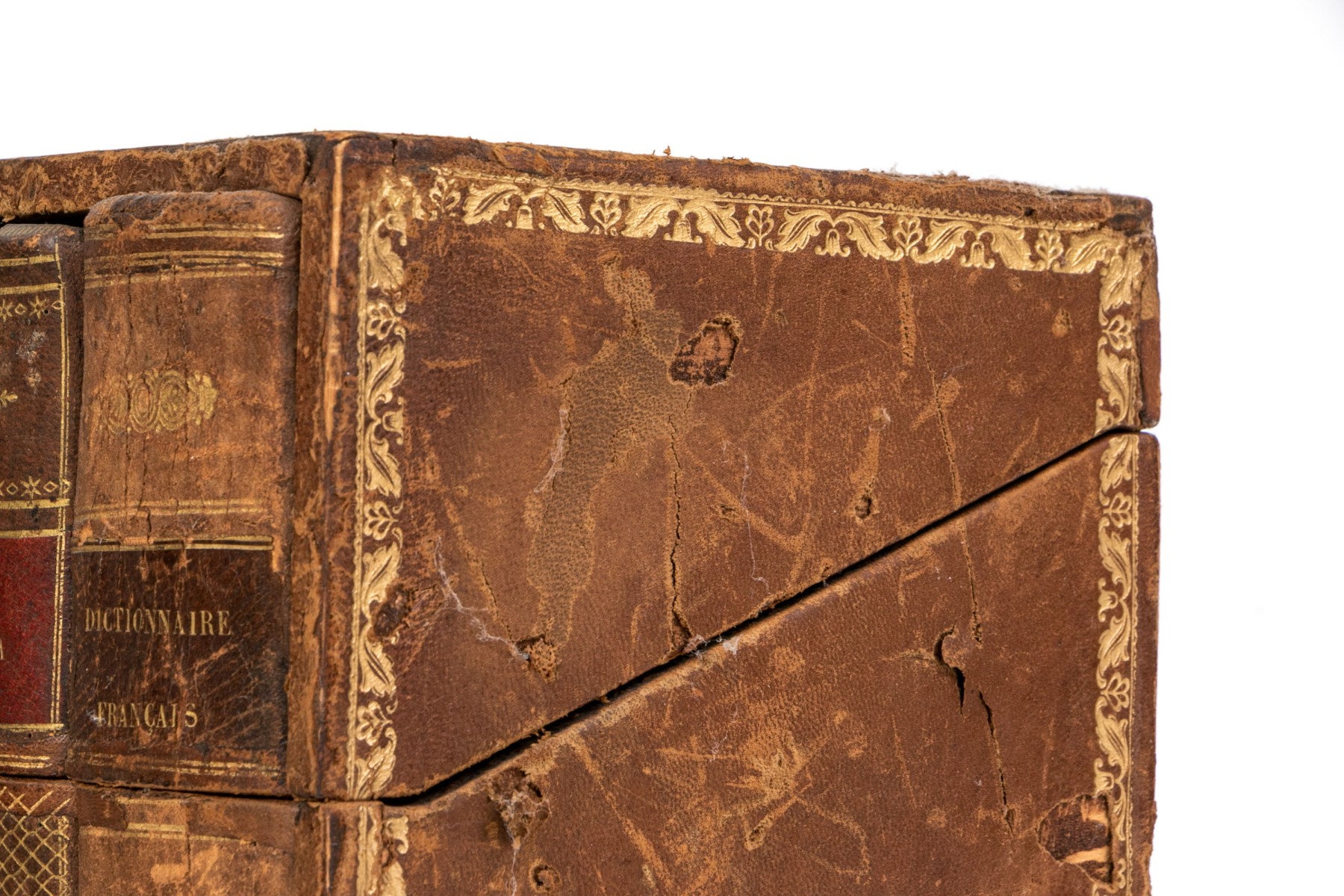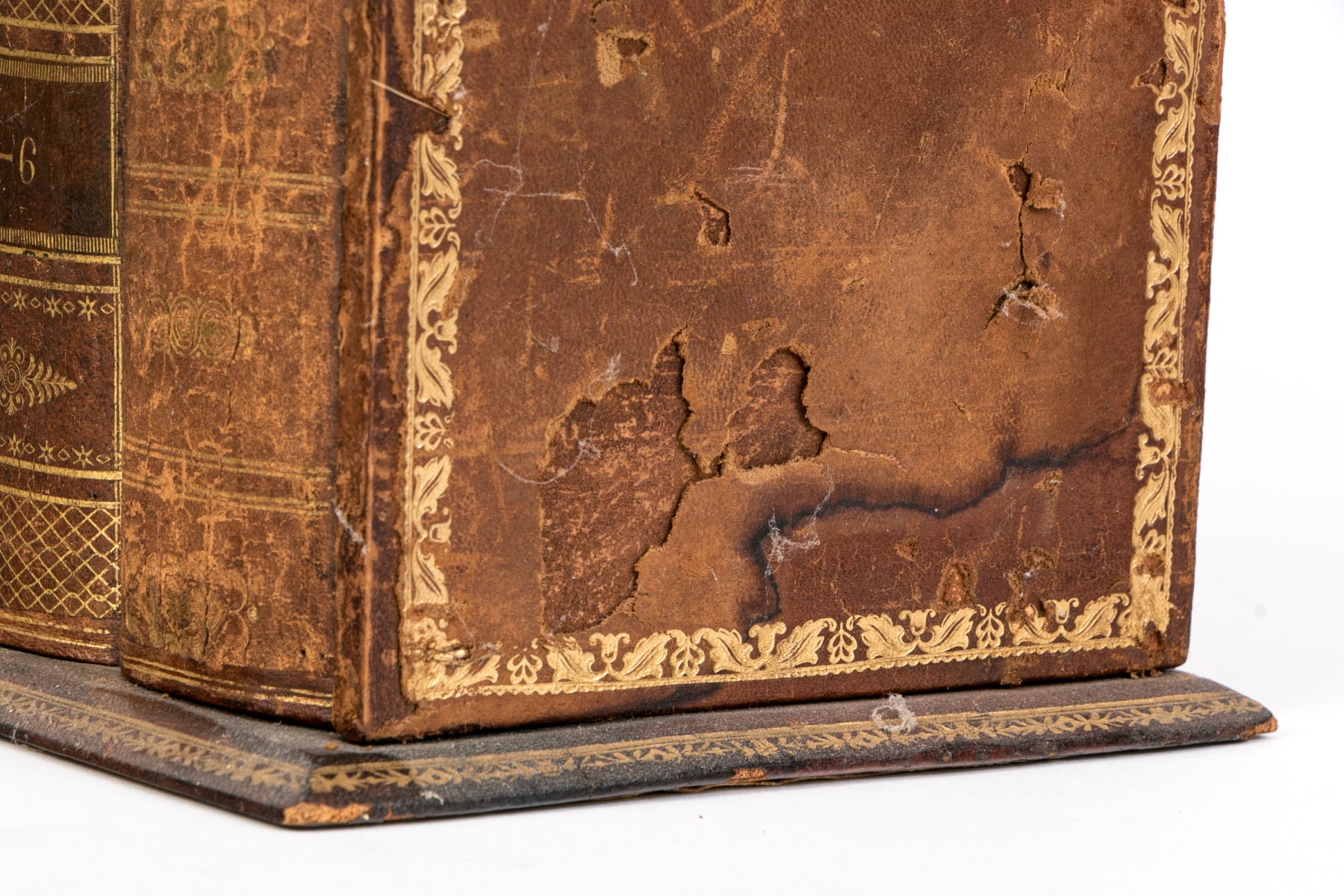 Wear to the leather including tears, losses and wear to the decorative finish.