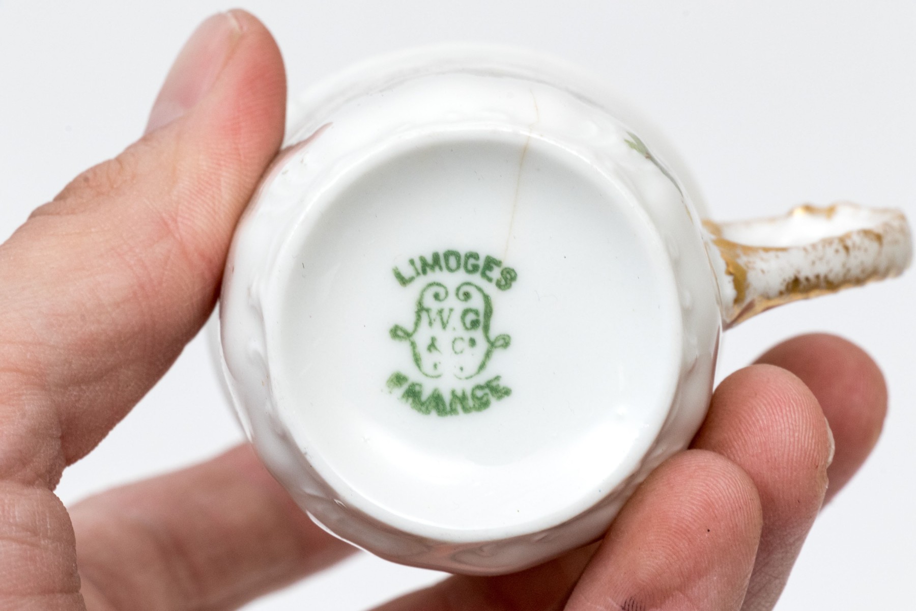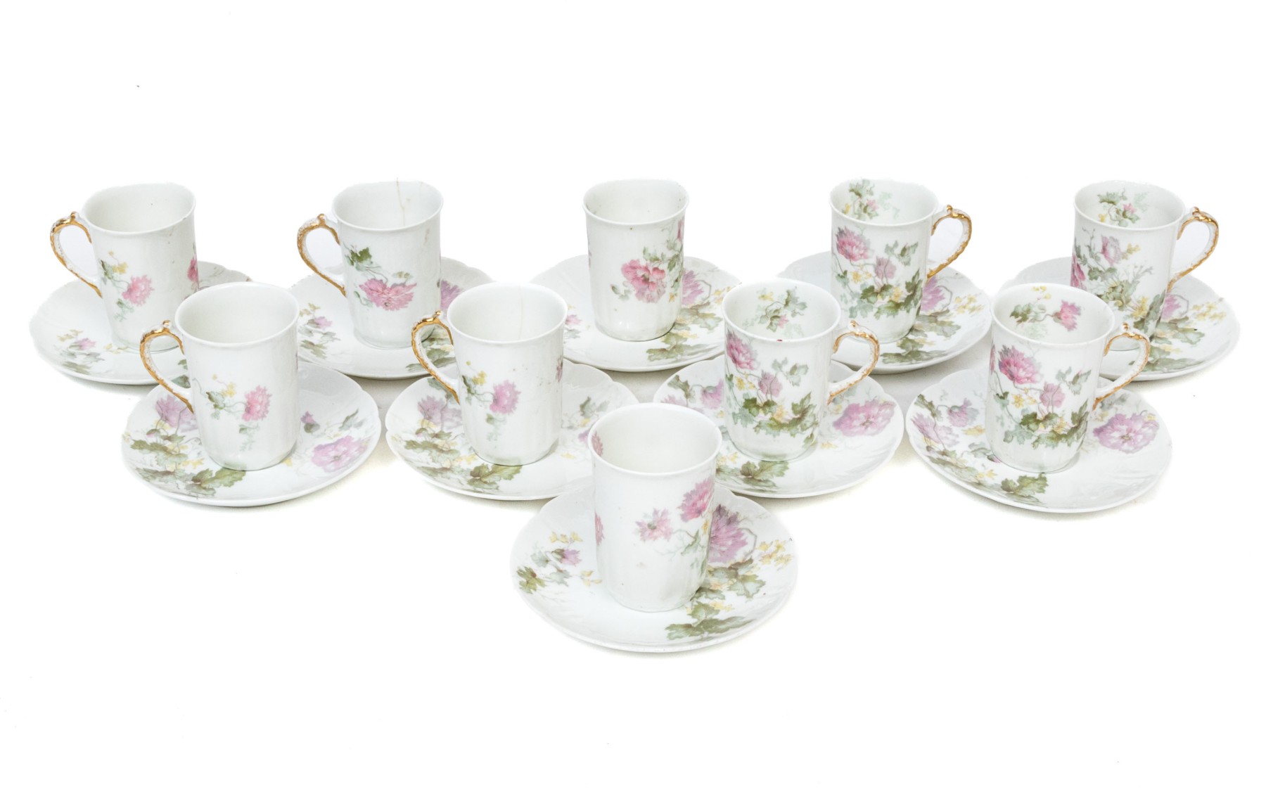 Condition: wear to the gilt, hairline cracks on four cups, chip on one cup rim, stain on one cup rim. Please review the photos as they are part of the condition report.