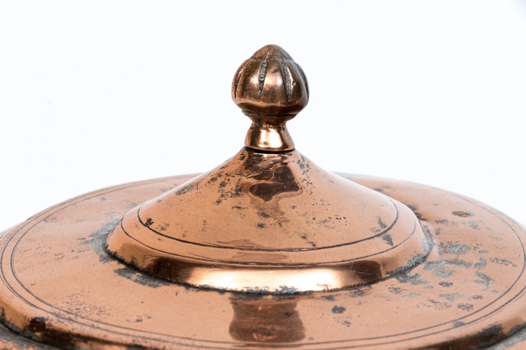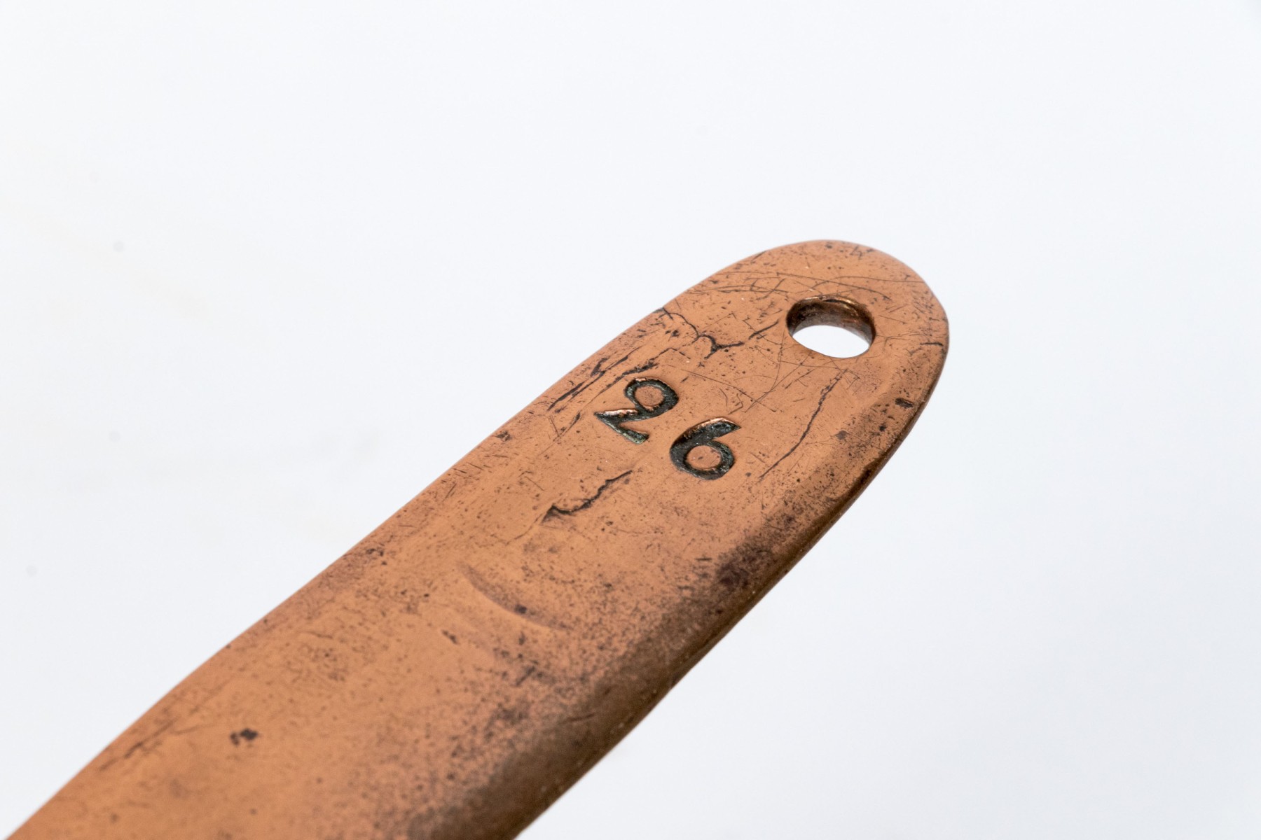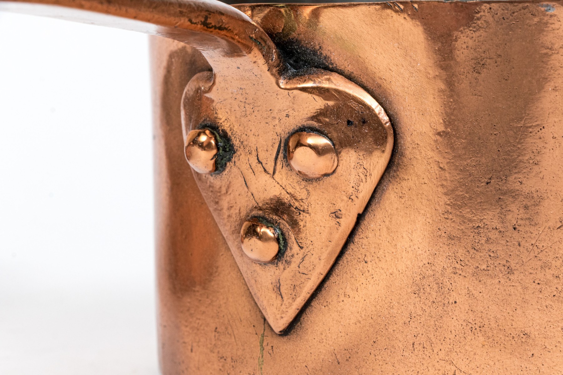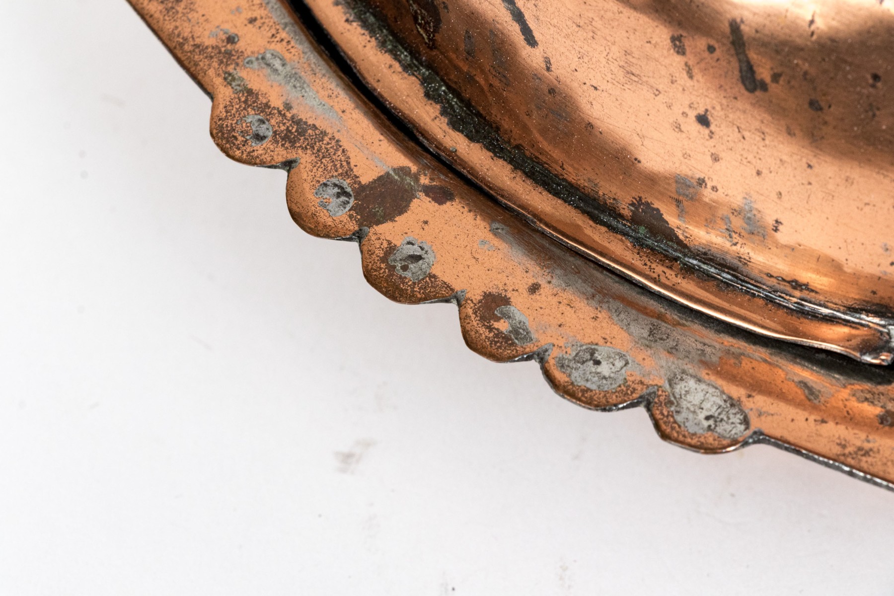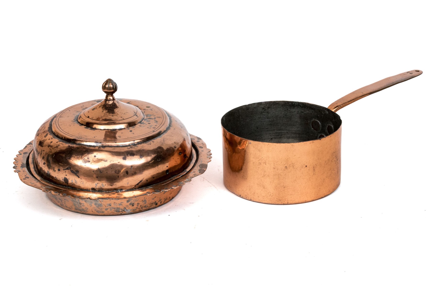 Comprised of a tin lined sauce pan and a tin lined lidded pan with scalloped trim.