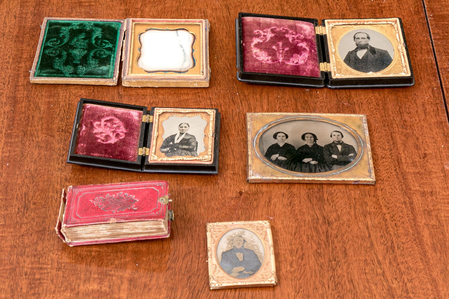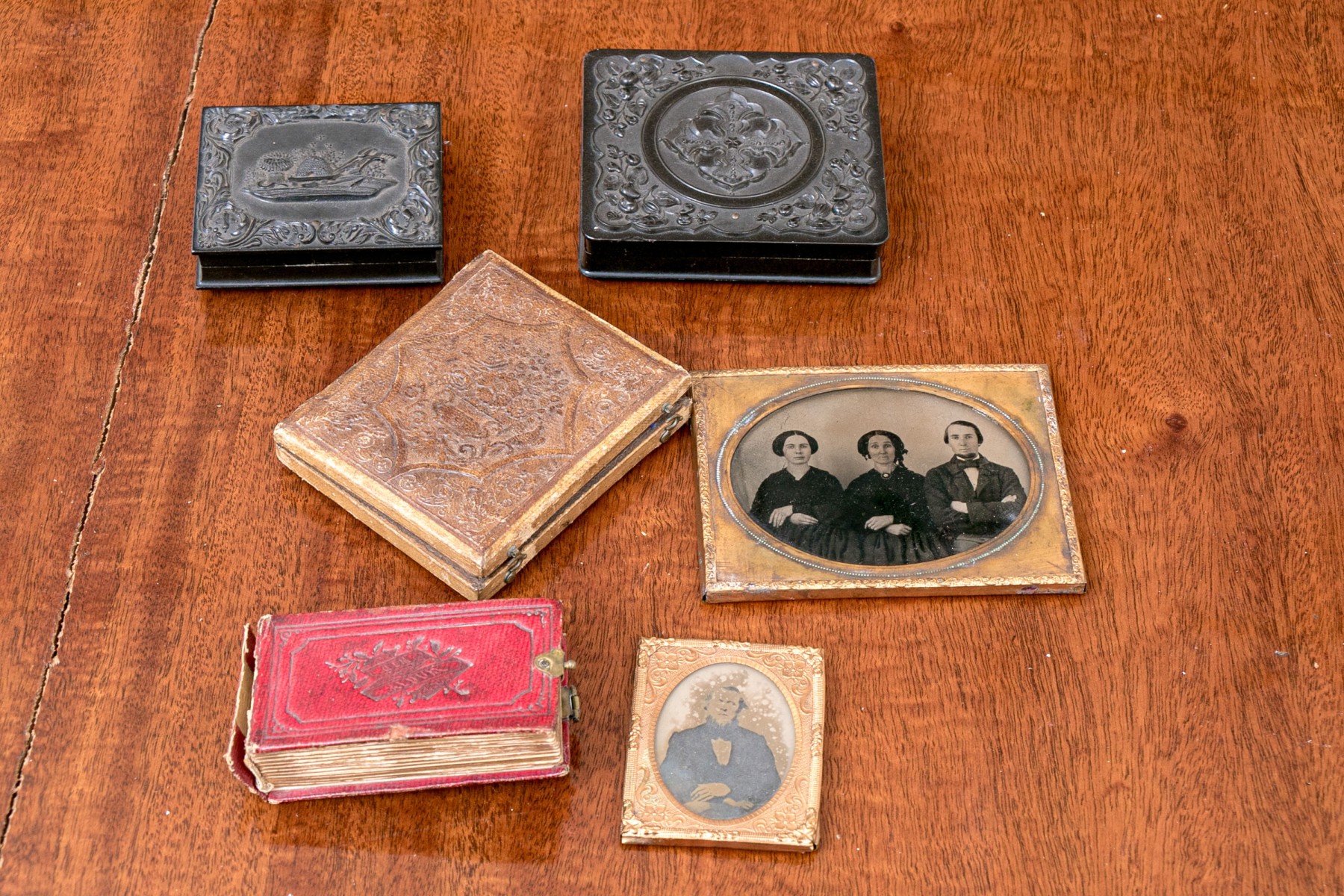 A fabulous lot for the antique photo collector. Comprised of five ambrotypes/daguerreotypes within velvet cases along with a miniature photo album.