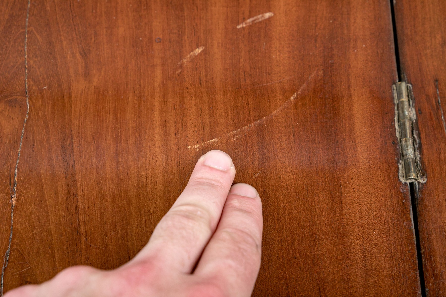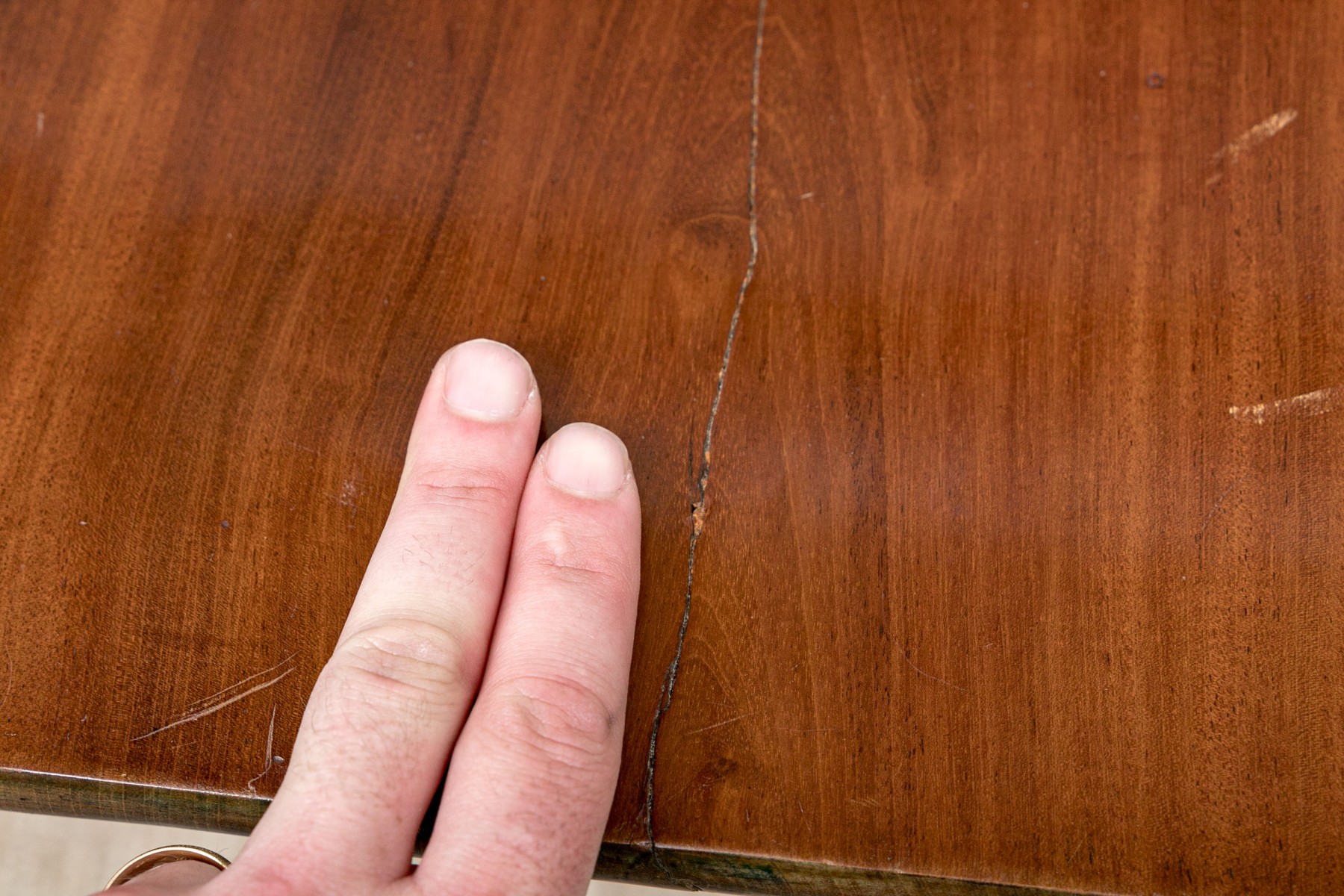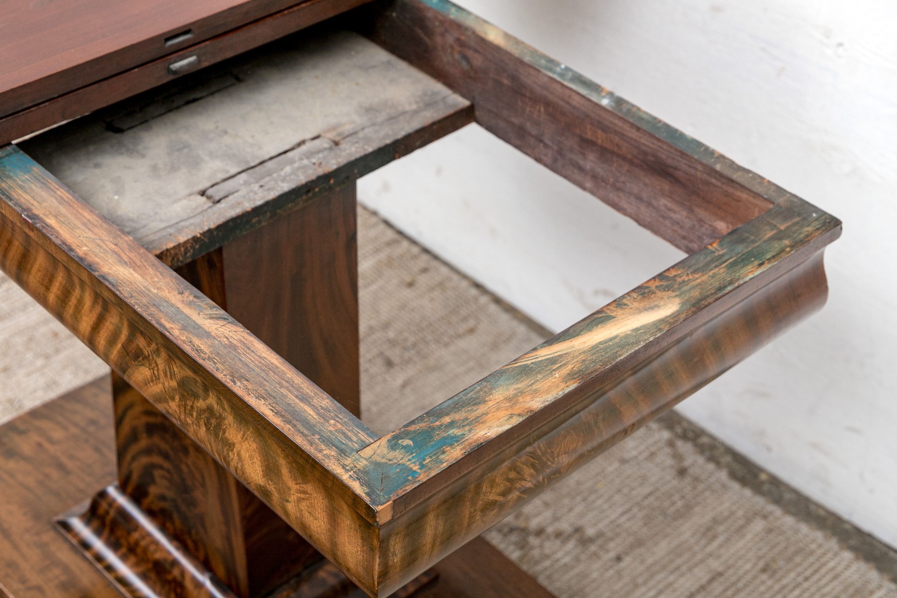 Condition: scratches on the top, chip to the base front edge, but overall good patina and wood grain. Please review the photos as they are part of the condition report.