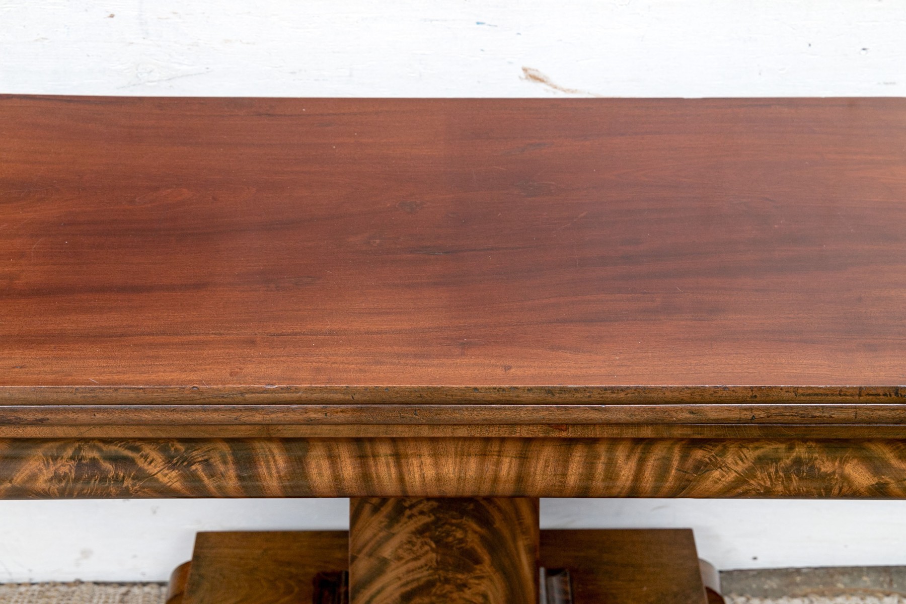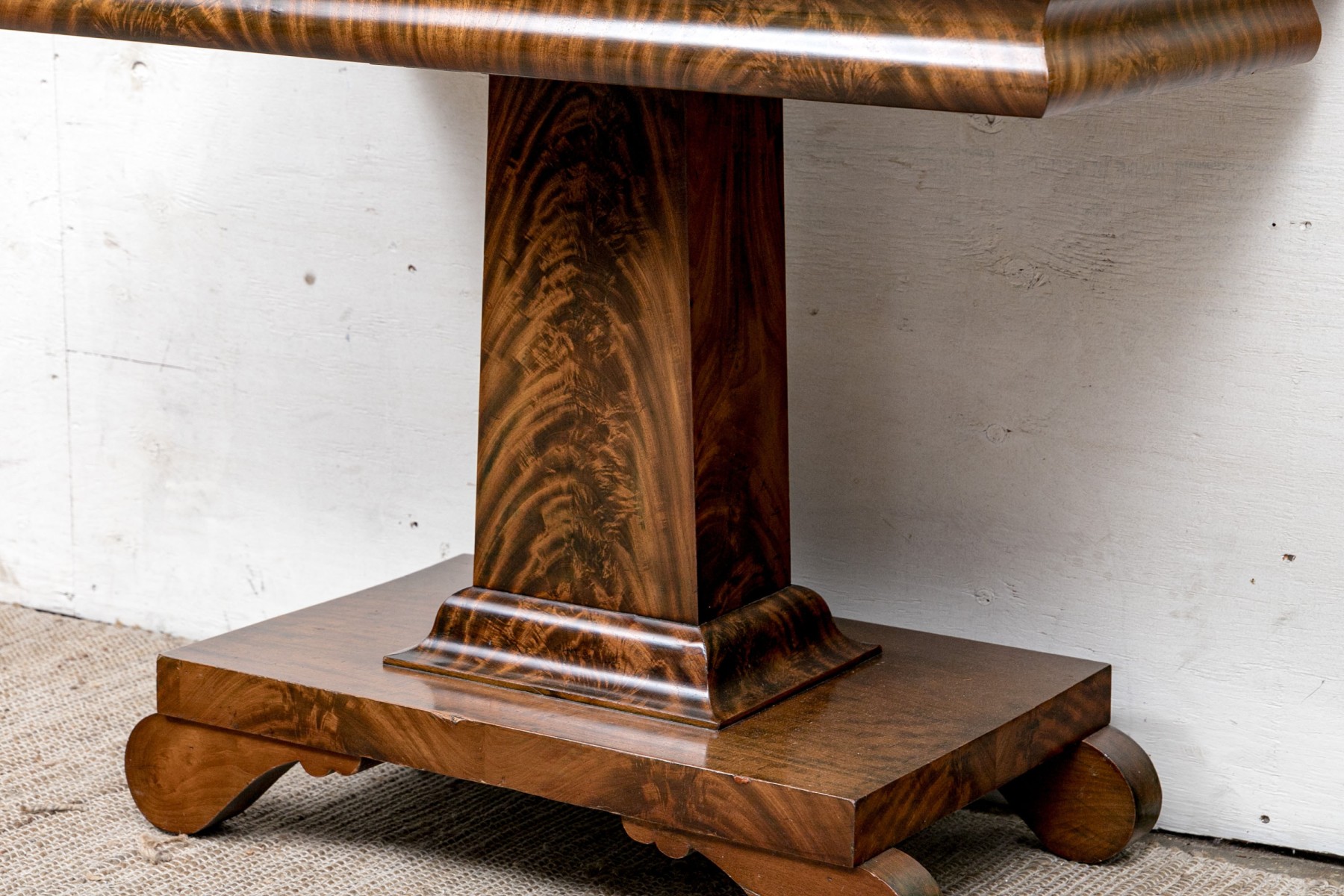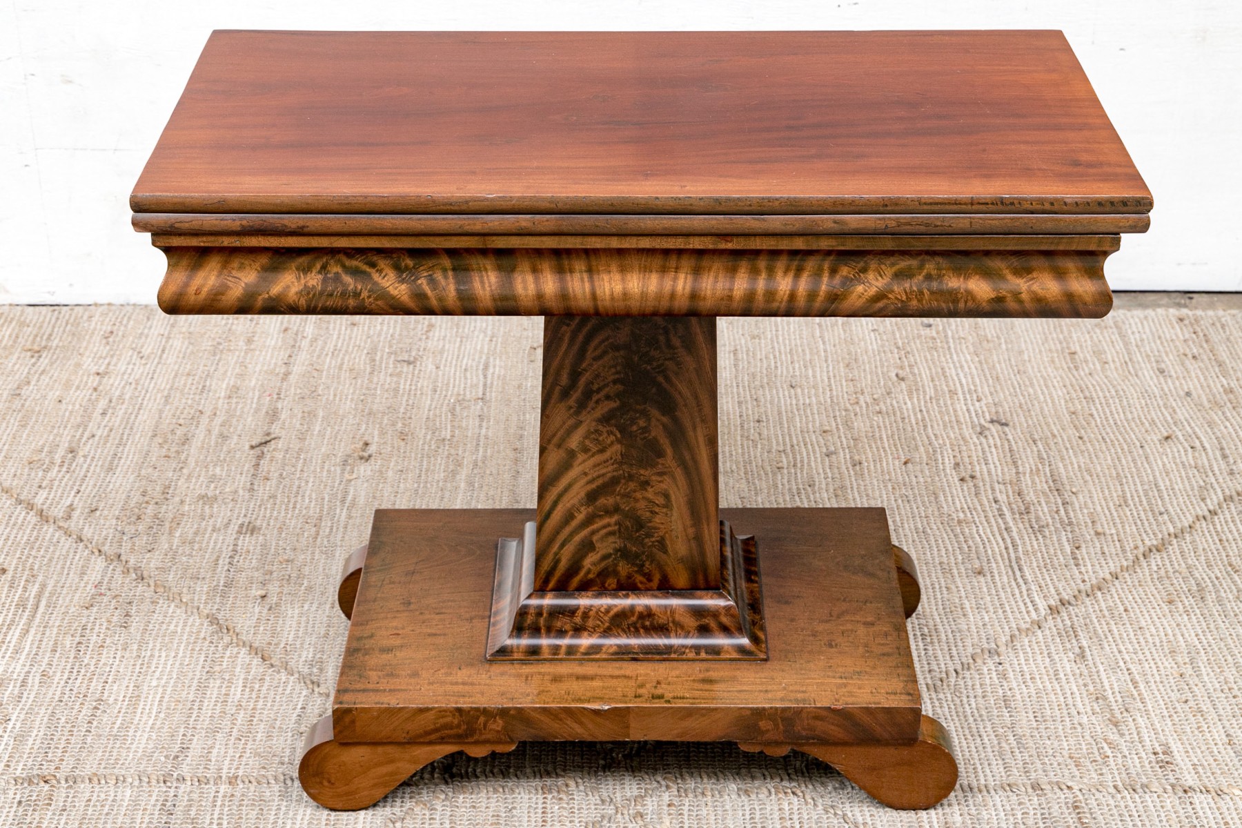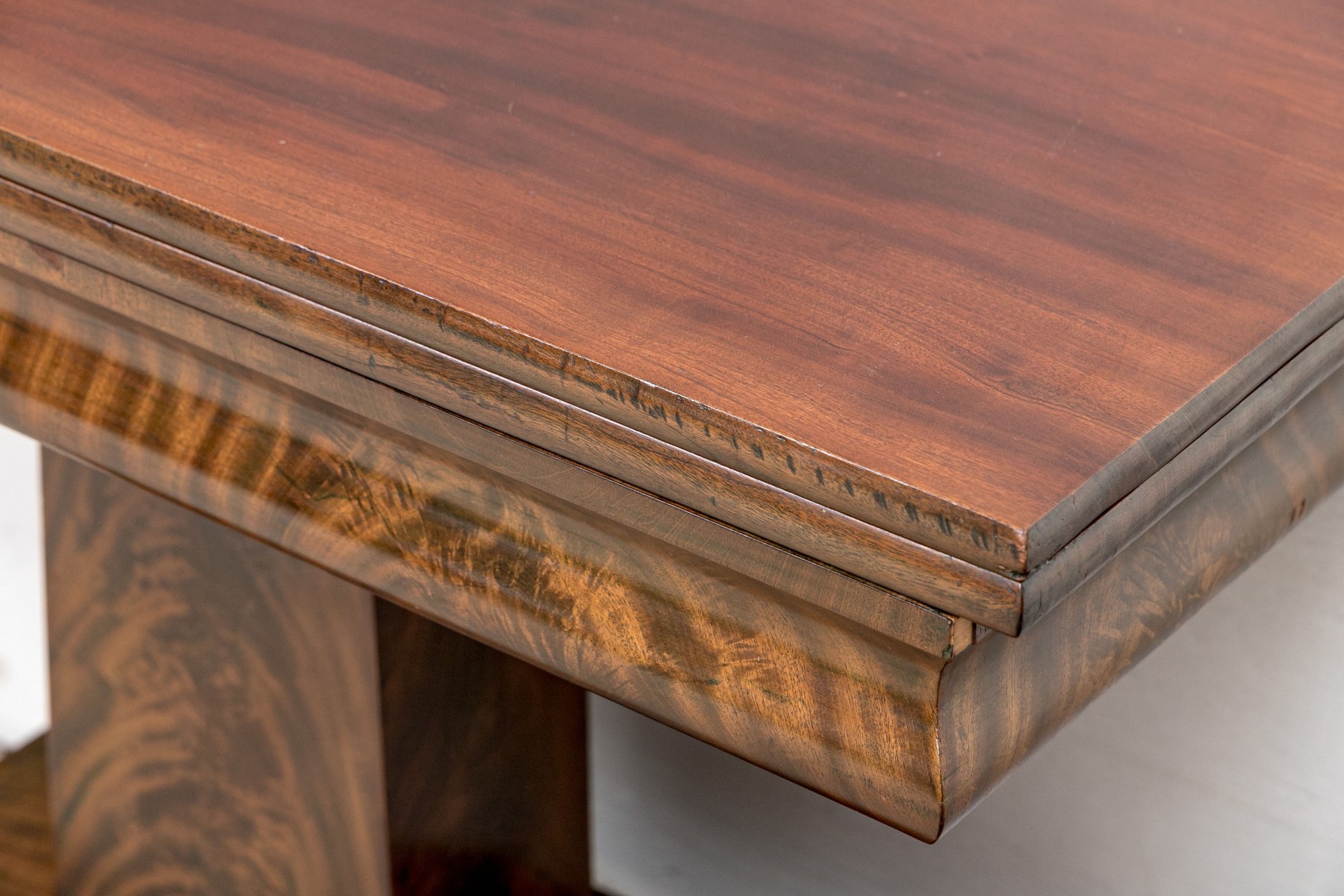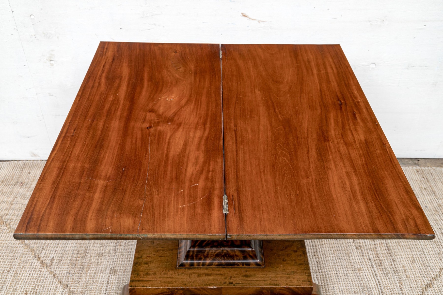 A fine games table in a classic form with a swivel mahogany top on the table. Raised on a figured wood frieze, support and base. With heavy scrolled feet.